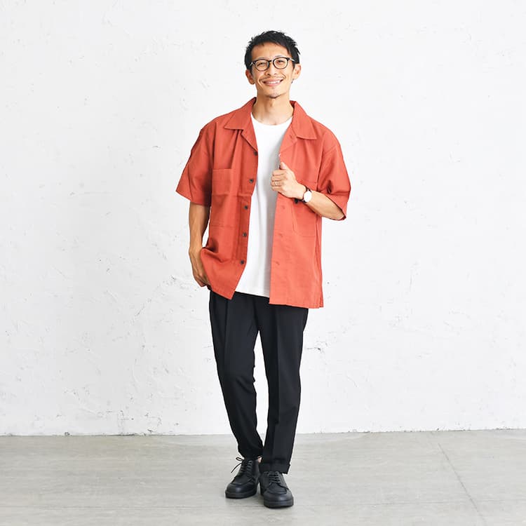 スタイリスト マイチ 顔タイプメンズアドバイザー。 お客さまの顔タイプに合わせて似合うコーデのご提案をいたします。 女性視点から見た好印象コーデが得意です。LINEのオシャレ相談お待ちしています♪ モデルのデータを見る/ 163cm50kg/37歳 モデルのデータ モデルのデータ 肩幅 胸囲 ウエスト 太もも ふくらはぎ 45.5 80.5 71 45.5 35 上半身の特徴肩幅広め 【着こなしポイント!】 お顔立ちが華やかなエレガントさんは、パッと目を引く華やかな色もなんなく着こなせちゃいます^^ 南国のような印象の鮮やかなオレンジカラーのシャツは、リラックス感のある風合いが特徴的なパナマシャツ♪寒色にはない華やかさで、気分も上がりますね♪ 黒のキレイめパンツとシューズで、大人っぽくまとめるとエレガントさんらしい優雅で上品な雰囲気のコーデにできますよ! 半袖パナマシャツ オレンジ/M 無地Tシャツ ホワイト/M テーパードパンツ ブラック/S Uチップシューズ ブラック