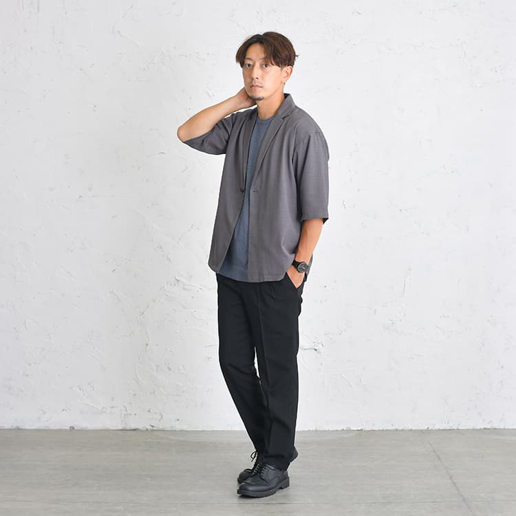 似合わせコンシェルジュ KIYOKA 顔タイプ診断、パーソナルカラー診断、骨格診断の資格を取得し、似合わせコンシェルジュとしてYouTubeとイメージコンサルティングサロンで活動。 あなたが本来持つ魅力を引き出し、似合うコーディネートを導き出します。 モデルのデータを見る/ 168cm61kg/34歳 モデルのデータ モデルのデータ 肩幅 胸囲 ウエスト 太もも ふくらはぎ 42 87 81.5 50 34 上半身の特徴肩まわりに肉付きがある 下半身の特徴お尻が少し大きめ 【着こなしポイント!】 ジャケットを使ったきちんとコーデが得意なエレガントさんですが、真夏はさすがに暑い……。なんてお悩みを解消するアイテムの登場です♪ こちらはクールビズに嬉しい夏用半袖ジャケット。オフィススタイルにもカジュアルにも使える優れものです。個性をアピールできるのも嬉しいですよね。 インナーのTシャツはやわらかなアッシュブルーをチョイス。エレガントさんが寒色系を選ぶときは少々くすみ感のある優しい色味がおすすめです。 お顔立ちが華やかなエレガントさんは派手な服も似合ってしまうので、柄物を合わせるのもgood! ボトムはタイトなシルエットの黒を選べば間違いありません。大人顔タイプの方はゆったりめよりもジャストサイズの方がお似合いですよ。 足元は革靴できちんと感をプラス♪ 半袖ジャケット チャコール/M 鹿の子編み夏ニット アッシュブルー/M テーパードパンツ ブラック/S Uチップシューズ ブラック