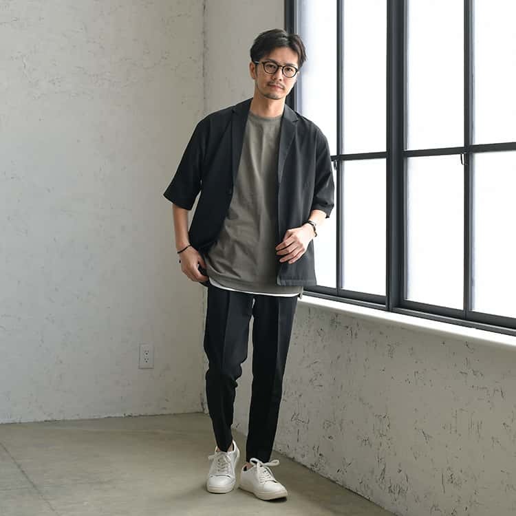 スタイリスト マイチ 顔タイプメンズアドバイザー。 お客さまの顔タイプに合わせて似合うコーデのご提案をいたします。 女性視点から見た好印象コーデが得意です。LINEのオシャレ相談お待ちしています♪ モデルのデータを見る/ 171cm55kg/38歳 モデルのデータ モデルのデータ 肩幅 胸囲 ウエスト 太もも ふくらはぎ 45.5 85 83 46.1 32 特徴肩幅広め/やせ型 【着こなしポイント!】 Tシャツやスニーカーなど、ラフでカジュアルなアイテムが似合うのが骨格ナチュラルさんです♪ インナーに着ているTシャツはシワになりにくいので、大人っぽく清潔感のある着こなしができますよ^^ モカとブラックの配色も、年齢相応の落ち着いた雰囲気にしてくれます。 目線の行きやすい足元のシューズは、コーデの印象に大きく関わるアイテム。爽やかな白スニーカーにすることで、ナチュラルさんのラフさを引き立ててくれます♪ 半端袖シャツジャケット ブラック/M 接触冷感Tシャツ モカ/M ロング丈タンクトップ ホワイト/M テーパードパンツ ブラック/S シンプルスニーカー ホワイト