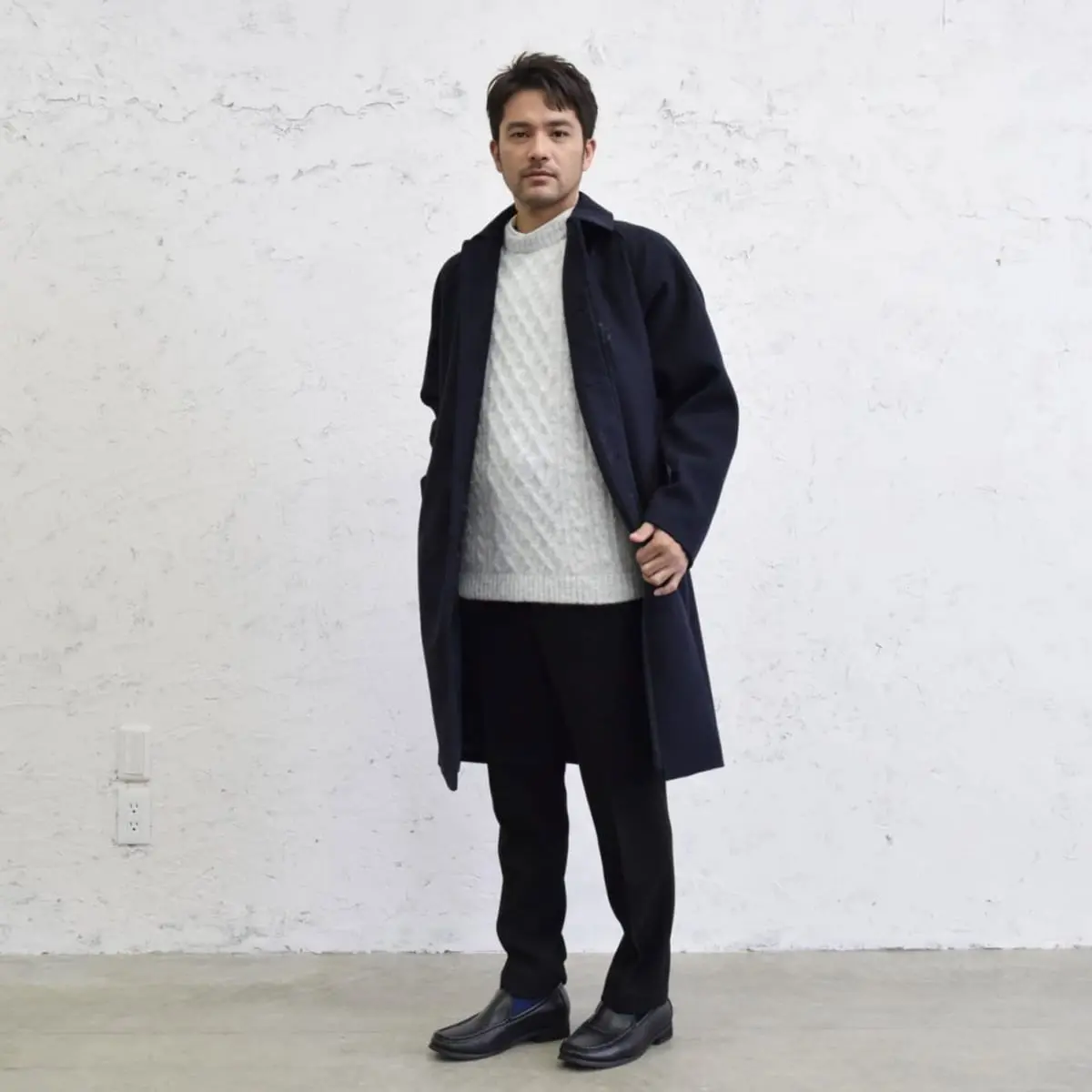 ここからは、黒アウターを使ったスタイリッシュな冬のメンズコーデを9点ご紹介します。