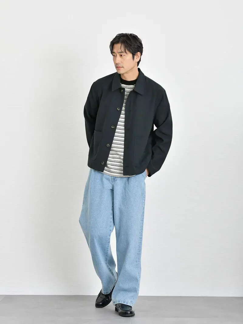 インナーも、デニム素材のルーズシルエットシャツを採用しているためカジュアルな雰囲気を表現できます。