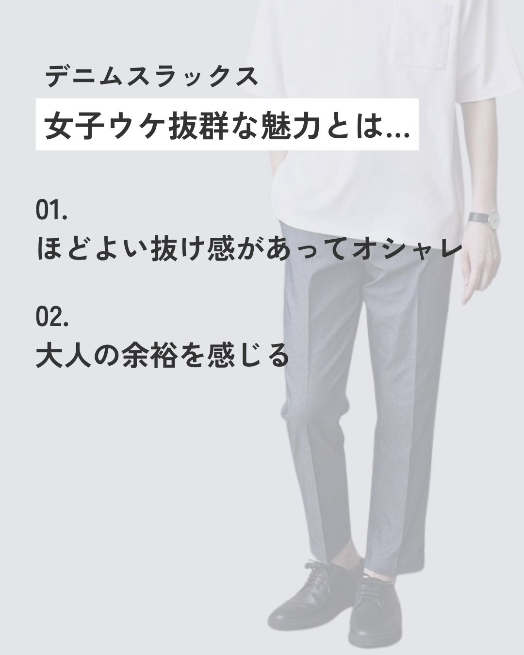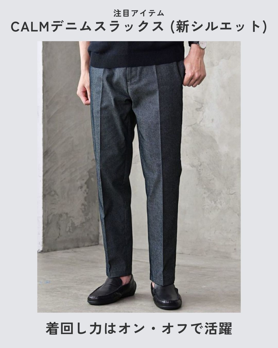 30代40代におすすめデニムスラックスの魅力 デニムスラックスが女子ウケ抜群の理由とは? 魅力とともに、おすすめのコーデもご紹介。ぜひ参考にしてくださいね! 使用アイテム CALMデニムスラックス アイテムを見る