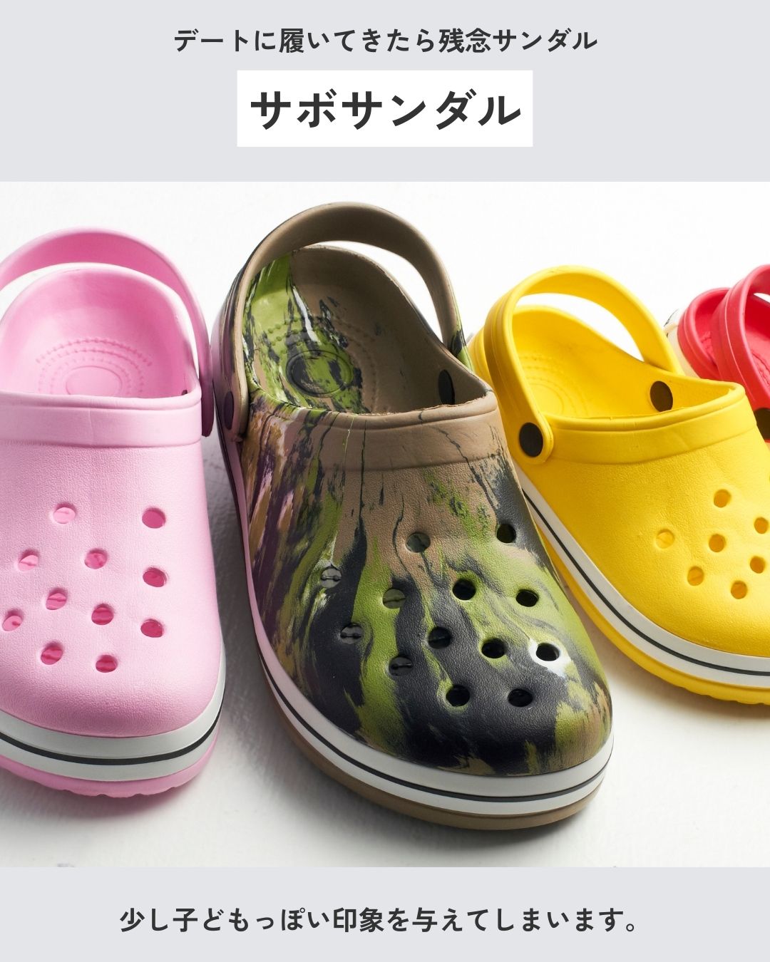 サンダルは女子ウケしない?モテるサンダルの極意 選び方によっては、子供っぽさやだらしない印象にもなりがちなサンダル。大人でもカッコよく着こなせるサンダルの選び方がカギですよ! モテるサンダルって? 女性ウケを狙えるメンズサンダルを選ぶ際には、清潔感や爽やかさ、全体のコーディネートとの調和が重要です。派手な色のサンダルは若者には向いていますが、大人の雰囲気を出すには向いてないと言えます。例えば、こんなアイテムを選んでいませんか? これはやめて!NGサンダル No.1 No.2 No.3 Recommend Itemオススメのサンダル ベルト レザーサンダル 商品を見る クロスベルト レザーサンダル 商品を見る モテる!サンダルコーデ キレイめパンツ! 詳細を見る この夏イチオシ! 詳細を見る 大人の抜け感! 詳細を見る Archive厳選特集 詳細を見る 詳細を見る 詳細を見る 詳細を見る アプリ限定特集をもっと見る