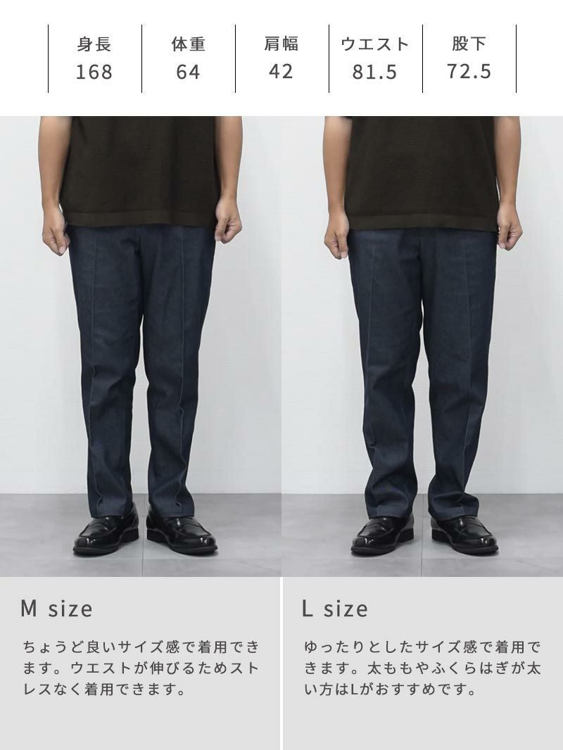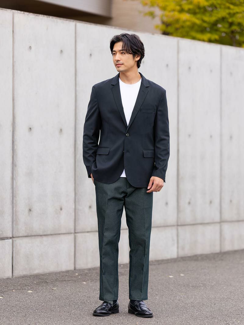 【身長:179cm / 体重:82kg / 購入サイズ:ワンウォッシュ, XL】他の方が指摘しておりますが、本品は股下が少し短か目のため XL を購入しました(CODE テーパードは L )。サイズ感も問題なく、質感・色合いも満足でした。またジャケット、ニット共に相性が良く、春秋の Business/Smart casual に十分使えると思います(真冬は少し寒いかも)。唯一残念だったのは届いた時の複数の深いシワ・・・、スキームアイロンがけが必要でした。パンツのシワについてもう少しご配慮頂けたらと思います。