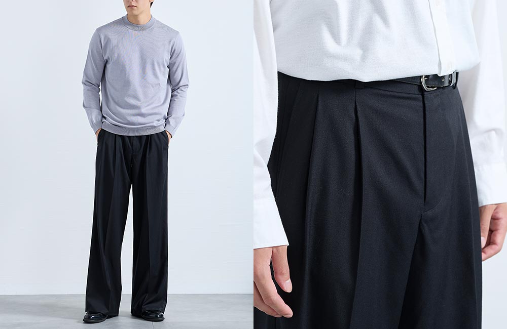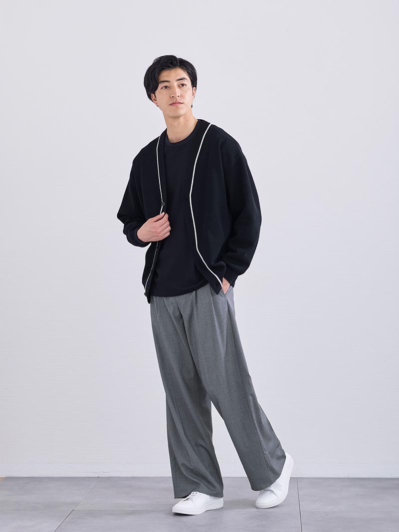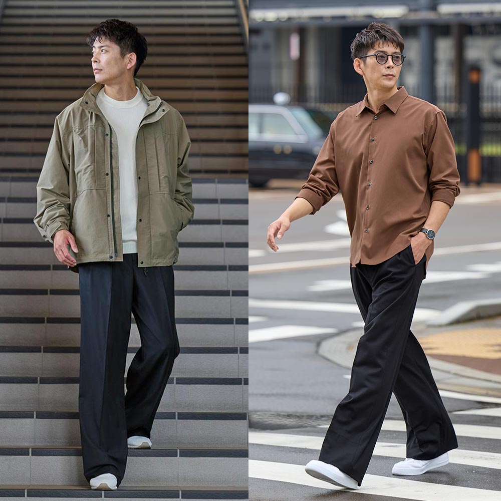 アイテム説明 きちんと見えて、手間はいらないプレミアムワイドパンツ CODEワイド オールシーズンウールの おすすめポイント 01. 見た目で差がつく高級感のある生地を採用 ウール20%配合の上質素材を使用。程よいハリと落ち感があり、自然な立体感を生み出します。 控えめな光沢が、ビジネスにも休日にもなじみ、シーンを選ばず使える一本に仕上がっています。 また、シワになりにくく、ストレッチ性も高いため、お手入れの手間もかかりません。 毎日忙しい男性も、気軽に穿くことができます。 02. 長く愛用できるシンプルかつ上品なデザイン ステッチレス仕様とまつり縫いにより、表面はすっきりと上品な印象に。 無駄を省いたミニマルなデザインだからこそ、長く着ても飽きることなく、着用していただけます。 ワンタック仕様で適度なゆとりを確保しながら、縦のラインを強調してくれるため、脚を長く見せることができます。 03. 一日中ラクが続く快適な着心地を追求 ウエスト内側にはスレキ素材を採用。肌あたりが良く、長時間でも快適な穿き心地を保ちます。 日常使いでも、ストレスを感じにくい設計です。 04. 体型カバーにも効くワイドシルエット ゆとりのあるワイドシルエットが、気になる部分を自然にカバーしながらすっきり見せ。 脚のラインを拾わず、リラックスした穿き心地と美シルエットを両立します。 05. クリーニングなしで大丈夫。自宅で洗えるイージーケア仕様 ネットに入れて洗濯機で洗えるマシンウォッシャブル仕様。 クリーニングに出す必要はなく、日常使いでも清潔感をキープできます。 選べる3つのシルエット同素材パンツラインナップ 裾に向かって細くなっていくキレイめなテーパードシルエット。リラックス感がありながらも、スラックスに近いスマートさをキープできるストレートなど、体型や好みに合わせて選べる3タイプをご用意。 CODEテーパード オールシーズンウール CHECK CODEストレート オールシーズンウール CHECK サイズ・素材 ウエスト 股上 股下 ヒップ もも幅 すそ幅 S 78.5 28 68.5 114 36 28 M 82 29 70.5 117 36.5 28.5 L 86.5 29.5 73 120 37.5 29 XL 90.5 30 75 124 39 29.5 ※表記サイズは実寸であり、個体差により誤差が生じる場合があります。 ※商品によっては洗濯タグにヌード寸法が記載されておりますが、実寸とは異なります。 伸縮性 あり ややあり なし 厚み 厚手 普通 薄手 透け感 あり ややあり なし 洗濯 洗濯OK ネット使用 手洗いのみ 表地 ポリエステル56%ウール25%レーヨン15%ポリウレタン4% 裏地 なし 生産国 中国 禁止事項 漂白剤使用×乾燥機使用× 表示を隠す スタッフ試着レビュー サイズにお悩みですか? AIに適正サイズを聞く 返品・交換は無料で安心 ご自宅でじっくりご試着いただけます。合わなければ送料負担なく返品できます。あなたにぴったりの一着と出会えるよう、お手伝いいたします。 コーディネート Model : 182㎝ / 70㎏ / L / ブラック着用 一枚で決まるロンTの万能スタイル 白のロングTシャツが爽やかな印象をつくるシンプルな組み合わせ。 黒のワイドパンツを合わせることで全体が引き締まり、落ち着いたモノトーン配色にまとまっています。 ゆとりのあるシルエットで堅くなりすぎず、街歩きや買い物など気軽な外出にも取り入れやすいスタイルです。 ルーズロングスリーブTシャツ CHECK メッセンジャーバッグ CHECK Salvatole Marra シンプル腕時計 CHECK スマートスニーカー CHECK Model : 183㎝ / 70㎏ / L / ブラック着用 大人の余裕が漂うシンプルモノトーン 落ち着いたグレーの軽い羽織りが主役のコーディネート。 黒のインナーとワイドパンツを合わせることで、全体が引き締まった大人らしい配色にまとまっています。 程よくゆとりのあるシルエットで力の抜けた雰囲気があり、街歩きやカフェなど普段のお出かけにも取り入れやすいスタイルです。 ワッフルカーディガン CHECK ルーズロングスリーブTシャツ CHECK Healthknit 3足セット CHECK スマートスニーカー CHECK Model : 182㎝ / 70㎏ / L / グレー着用 まずは押さえたい春の定番シャツ やわらかなブルーのシャツが印象的な爽やかなコーディネートです。 白のインナーを重ねることで色の軽さが引き立ち、清潔感のある配色に。 ゆとりのあるシルエットのグレーパンツを合わせて程よく力の抜けた雰囲気に仕上げました。 クラシックボタンダウンシャツ CHECK CODEロングスリーブTシャツ CHECK Healthknit 3足セット CHECK スマートスニーカー CHECK Model : 183㎝ / 70㎏ / L / グレー着用 力を抜いてもきちんと見える上下バランス 黒とグレーでまとめた落ち着いた配色のスタイル。 ゆとりのあるパンツと軽い羽織りで、リラックス感のあるシルエットに仕上がっています。 足元の白スニーカーが程よい抜けをつくり、街歩きにもなじむ大人のカジュアルです。 ダブルジャガードハイゲージカーディガン CHECK ルーズロングスリーブTシャツ CHECK Healthknit 3足セット CHECK スマートスニーカー CHECK Model : 183㎝ / 70㎏ / L / ネイビー着用 シンプル上下を格