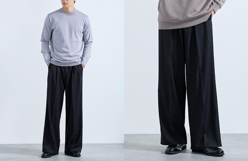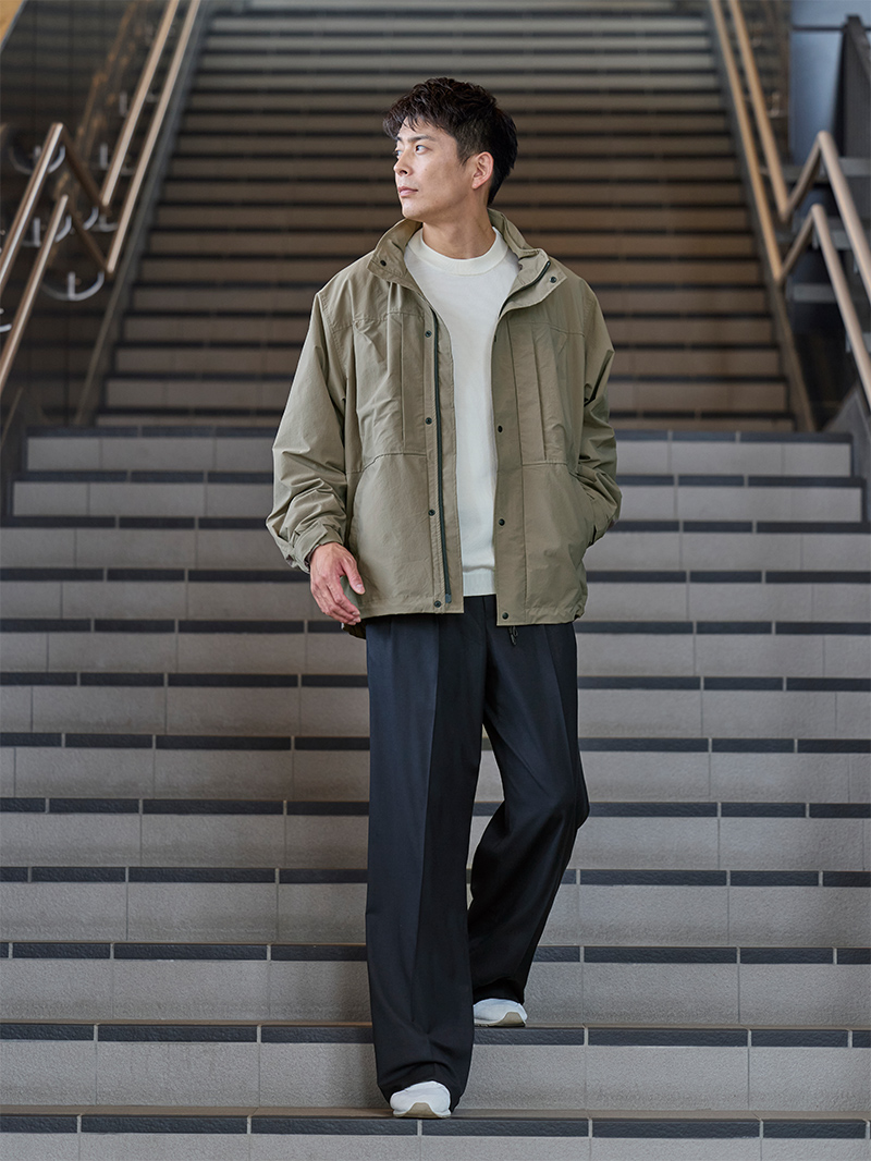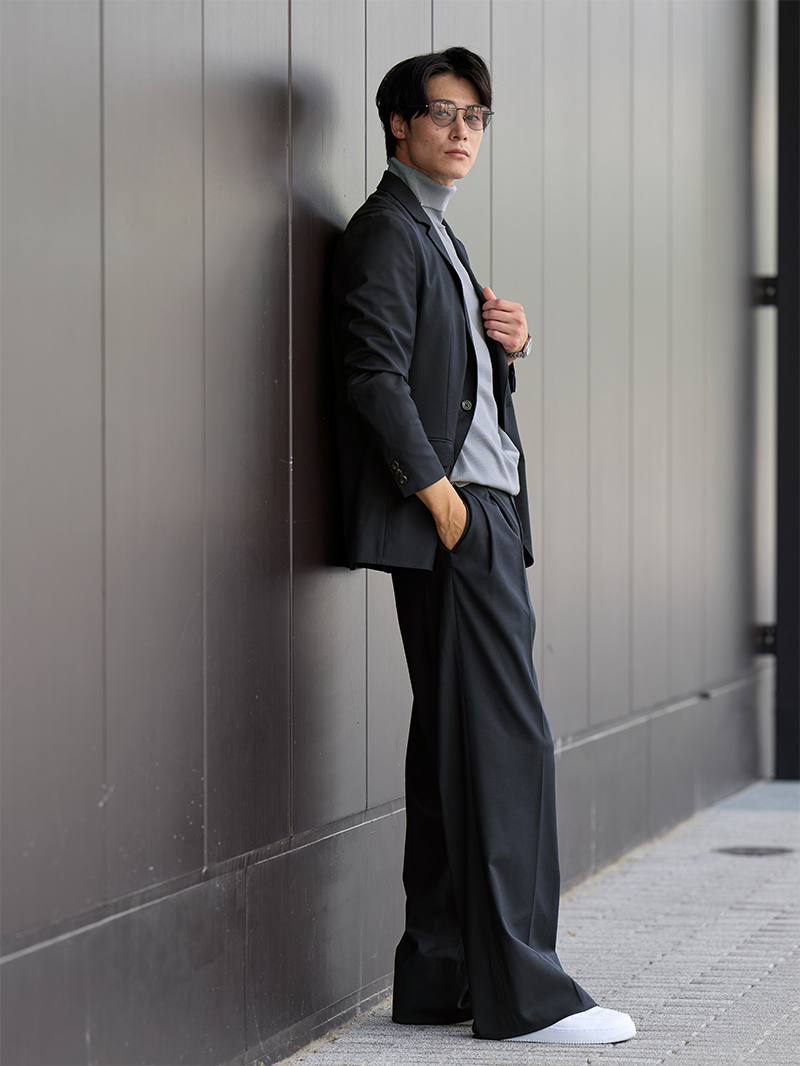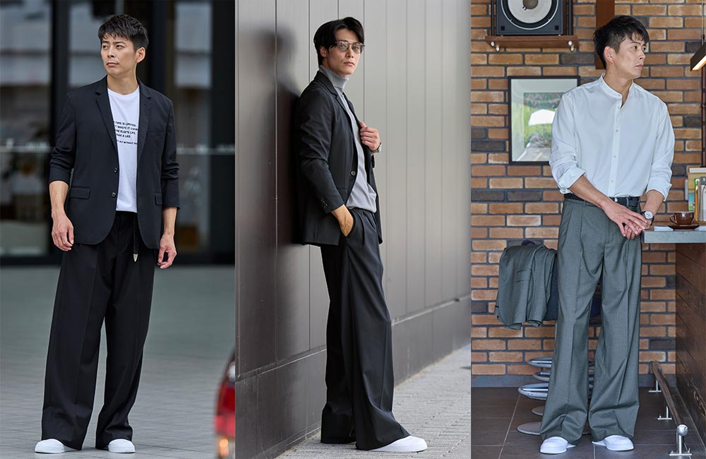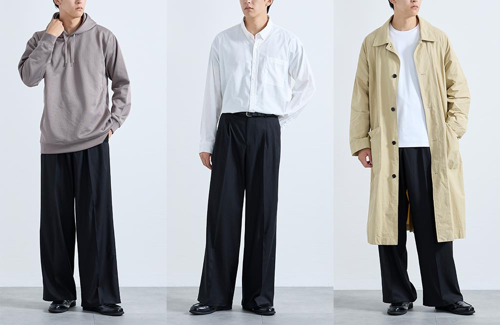ワイドパンツで抜け感を出しつつ、リラックスした雰囲気で街歩きにも馴染むスタイルです。
