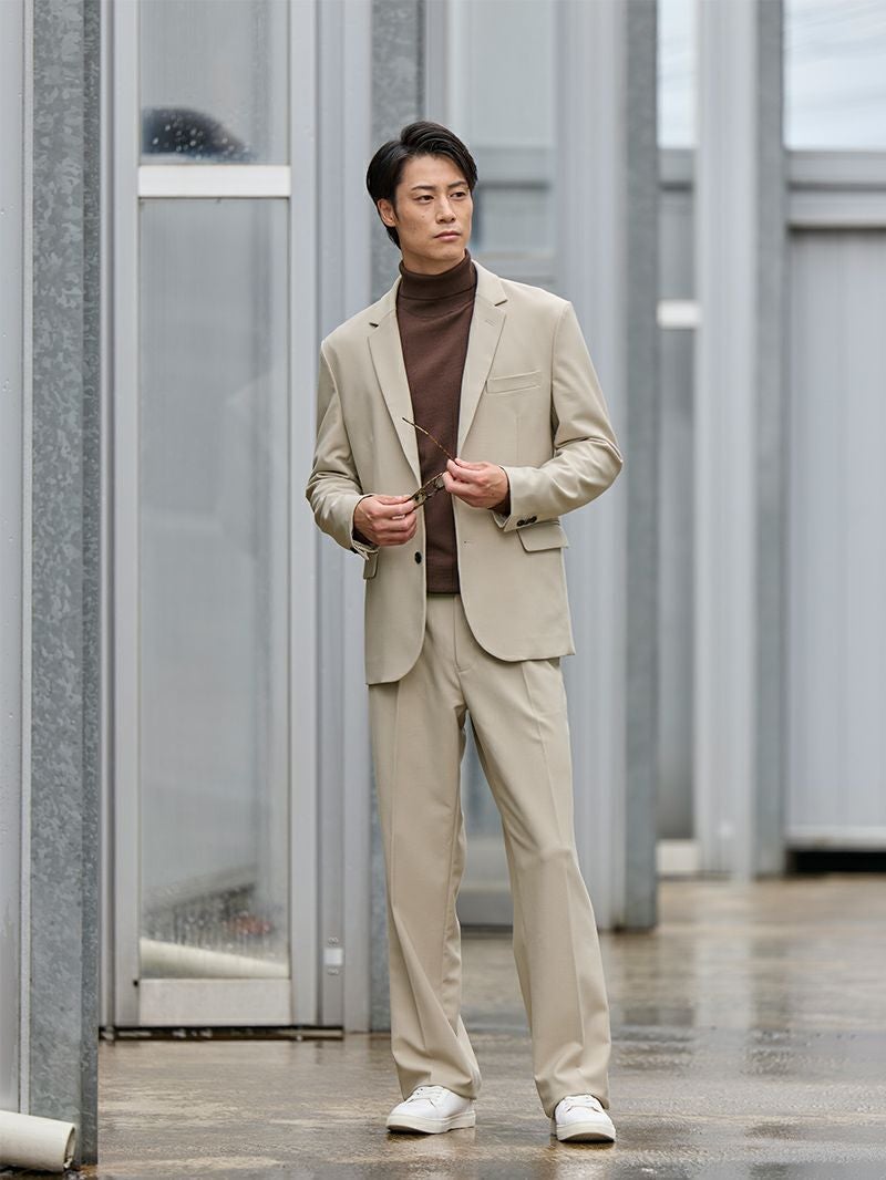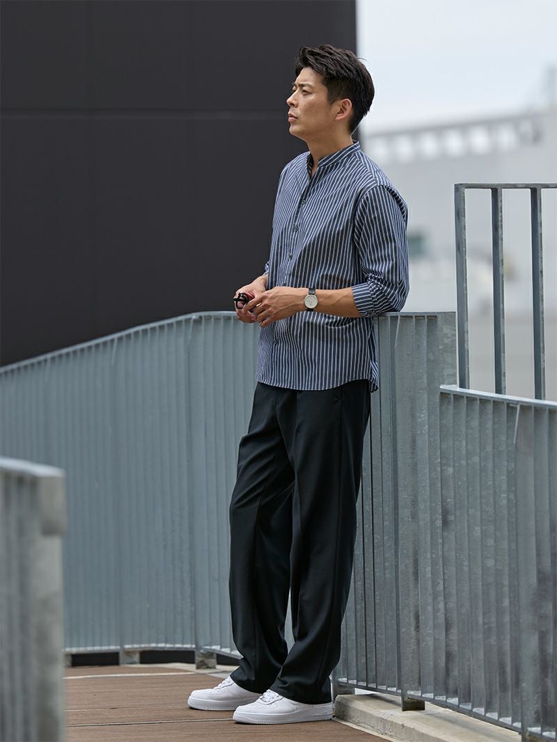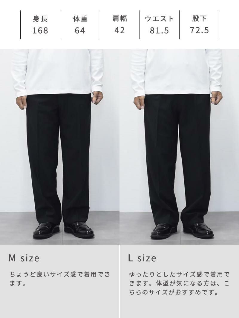 アイテム説明 きれいめとリラックスを一本で叶えるCODE ストレートパンツ テーパードで鍛えたパターン技術を、まっすぐに再構築。 見た目はドレスライクでありながら、アイロンもクリーニングも要らない「自宅ケア完結型」です。 もっと見る 4つの機能性 ①洗濯機洗い可 忙しくてもクリーニング要らず。ネットに入れて普通に洗濯&干すだけでシワにならずお手入れ簡単。 ②防シワ素材 長時間座っても膝や腰にシワが付きにくく、一日中きちんとした印象をキープ。 ③ストレッチ性 伸縮自在な生地で自転車通勤も楽々。膝の動きを妨げないのでアクティブな動きにも。 ④体型フィット設計 ウエスト+5cm。体型の変化にも対応可能。 ゴム部分のシャーリングはサイドに付けることで後ろから見た時のシルエットも美しく仕上げています。 生地 & パターン 糸をしっかり交差させたオックス織りは張り感・厚みがあり、丈夫でオールシーズン対応。 細すぎず太すぎない美しいストレートシルエット。 日本人の体型にフィットするよう改良を重ねたスタイルを良く見せてくれるパターンです。 セットアップで「5秒ドレスアップ」 同素材テーラードを上に羽織るだけ。3 色展開でシゴトとアソビがシームレス。 ジャケットを見る CODEジャケット【2025年モデル】 CHECK CODEコードパンツ シルエット別ラインナップ CODEパンツは3種類のシルエットを ご用意しております。 あなたの好みや、体型にピッタリの CODEパンツを選んでみませんか? テーパード ストレート ワイド カラー ブラック、ネイビー、アーシーベージュ 価格 7,990 サイズ S, M, L, XL シルエット名 テーパード ストレート ワイド キレイめ ◎ ○ △ カジュアル ○ ◎ ◎ ベーシック重視 ◎ ○ △ トレンド重視 ○ ○ ◎ 脚が太い ○ ◎ ◎ 背が低い ◎ ◎ △ 背が高い ○ ◎ ◎ 選べるシルエット CODEテーパード CHECK CODEワイド CHECK サイズ・素材 ウエスト 股上 股下 ヒップ もも幅 すそ幅 S 78~86.5 27.5 67.5 104 31.5 22 M 81~90 28 70 108 33 22.5 L 85~93 28.5 71.5 111 34.5 23 XL 88.5~95 29.5 74 114 35 23.5 ※表記サイズは実寸であり、個体差により誤差が生じる場合があります。 ※商品によっては洗濯タグにヌード寸法が記載されておりますが、実寸とは異なります。 伸縮性 あり ややあり なし 厚み 厚手 普通 薄手 透け感 あり ややあり なし 洗濯 洗濯OK ネット使用 手洗いのみ 表地 ポリエステル72%レーヨン23%ポリウレタン5% 裏地 なし 生産国 中国 禁止事項 漂白剤使用×乾燥機使用×ドライクリーニング× 表示を隠す スタッフ試着レビュー サイズにお悩みですか? AIに適正サイズを聞く 返品・交換は無料で安心 ご自宅でじっくりご試着いただけます。合わなければ送料負担なく返品できます。あなたにぴったりの一着と出会えるよう、お手伝いいたします。 コーディネート ブラック着用 大人が着るパーカーの秋スタイル カジュアルなパーカーは、キレイめ感のあるセットアップで合わせることで、リラックス感ときちんと感を両立した、ラフでありながらも大人っぽい印象に。 仕事終わりのデートや休日におすすめです。 CODEジャケット【2025年モデル】 CHECK ポリコットンドレスプルパーカー CHECK ブラック着用 大人の知的さを感じる親しみやすいコーデ チャコールカラーのニットポロに、ブラックのパンツを合わせたシンプルコーデ。 伊達メガネと白スニーカーで知的で親しみやすい雰囲気に仕上げました。オフィスカジュアルや休日にもピッタリな着こなしですよ。 スキッパー長袖ポロシャツ CHECK ウェリントンサングラス 調光レンズ CHECK ネイビー着用 ネイビーセットアップの王道スタイル ネイビーのセットアップに白シャツを合わせた王道スタイルです。 インナーのシャツとポケットチーフがきちんと感を演出。 足元は白スニーカーを合わせると程よくラフになるので、仕事終わりの食事にもおすすめです。 CODEジャケット【2025年モデル】 CHECK 比翼仕立てタイプライターシャツ CHECK ネイビー着用 爽やかさ抜群のシャツコーデ 爽やかなネイビーのストライプシャツが主役のコーデ。 ボトムスもネイビーで統一感を出し、足元は白スニーカーでクリーンな印象を演出するのがポイントです。 オフィスからデートシーンまでおすすめな着こなしですよ。 バンドカラースキッパーストライプシャツ CHECK アーシーベージュ着用 特別な日の大人コーデ ベージュのセットアップにコーヒーカラーのニットを合わせ、秋らしい季節感を取り入れたスタイル。 足元は白スニーカーにすることで、軽やかな印象を与えてくれます。 特別なデートにもピッタリですよ。 CODEジャケット【2025年モデル】 CHECK シンプルスニーカー CHECK アーシーベージュ着用 上品さと色気を両立したベージュスタイル 黒×ベージュの配色は、上品な雰囲気を演出してくれます。 トップスのシャツは、腕まくりをして大人の色気をプラスしましょう。 足元はあえてスニーカーにすることで、キメすぎ感のない大人コーデに。 スキッパードレスシャツ