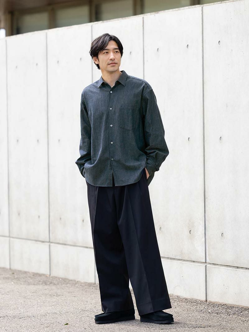 股下は個人的にはもう少し長くてもいいかなという感じですが、シルエットは今流行りのAラインですね。