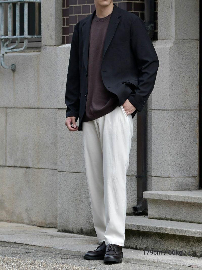 アイテム説明 CODEは「多様なドレスコードに対応する」がコンセプトのAUENでも人気No.1のシリーズです。セットアップになる専用のボトムと合わせると、シーンに合わせてインナーを変えるだけで大人のコーディネートが楽しめます。 もっと見る CODE3テーラードジャケットは、高品質で快適な毎日を提供してくれます。スマートに日常に溶け込み、CODEテーパードパンツ3と組み合わせれば、セットアップスタイルが完成します。 生地のアップデート 前回のジャケットを元に生地をゼロから再開発し、滑らかな肌触りと適度なハリ感を兼ね備えた理想的な生地を実現しました。この生地は、表面が滑らかで美しい光沢と落ち感があります。ストレッチ性もあり、シワになりにくく、洗濯機で簡単に洗える優れた特徴を持っています。 これにより、エレガンスと高い機能性を両立させました。どんなシーズンでも快適に着用でき、通年を通して最高の着心地を提供します。オールシーズン活躍する一着として、多くの方にご満足いただける自信作です。 洗濯機で簡単お手入れ 面倒なお手入れは不要。高品質素材を使用し、洗濯機で簡単にお手入れ可能。シワになりにくい加工が施されており、アイロンがけの手間も省けます。日々のケアが簡単で、いつでも清潔で美しい装いを保てます。(洗濯ネットを推奨しております) 速乾性でいつでも快適 短時間で乾きやすい生地なので、常に爽やかな着心地を提供します。忙しい日常でも、つかの間の休日でも毎日快適に着用していただけます。 高品質を手頃な価格で提供 私たちのCODE3テーラードジャケットは、厳選された高品質素材と厳格な品質管理により、他にはない特別な一着です。「高品質を手頃な価格で提供」という理念のもとに開発されたCODE3は、最高のパフォーマンスとスタイルをお約束します。 CODE3専用テーパードパンツ CODE3シリーズのテーパードパンツと組み合わせることで、簡単にスタイリッシュなセットアップスタイルを実現。ビジネスもカジュアルもこれ一つで完璧。スマートなシルエットで自信を持って日常を過ごせます。 CODE3テーパードパンツ CODE3 テーパードスラックス CHECK サイズ・素材 肩幅 身幅 袖丈 着丈 S 42 45 60 67 M 44 45.5 60.5 69 L 45 48 61 71 ※表記サイズは実寸であり、個体差により誤差が生じる場合があります。 ※商品によっては洗濯タグにヌード寸法が記載されておりますが、実寸とは異なります。 伸縮性 あり ややあり なし 厚み 厚手 普通 薄手 透け感 あり ややあり なし 洗濯 洗濯OK ネット使用 手洗いのみ 表地 ミャンマー 裏地 ポリエステル100% 生産国 ポリエステル100% 禁止事項 表示を隠す サイズにお悩みですか? AIに適正サイズを聞く 返品・交換は無料で安心 ご自宅でじっくりご試着いただけます。合わなければ送料負担なく返品できます。あなたにぴったりの一着と出会えるよう、お手伝いいたします。 コーディネート ブラック着用 ニットポロシャツ CHECK CODE3 テーパードスラックス CHECK Salvatole Marra シンプル腕時計 CHECK ブラック着用 ハイゲージサマーニット CHECK コーデュロイ ストレートパンツ CHECK オールブラックレザーベルト CHECK コートスプリットレザーUチップシューズ CHECK ネイビー着用 ヘビーウェイト半袖Tシャツ SLIM CHECK CODE3 テーパードスラックス CHECK Salvatole Marra シンプル腕時計 CHECK PUレザースニーカー CHECK ネイビー着用 ヘビーウェイト半袖Tシャツ SLIM CHECK CODE PREMIUM ワイドスラックス CHECK キャンパスシューズ CHECK スタッフコーディネート もっと見る