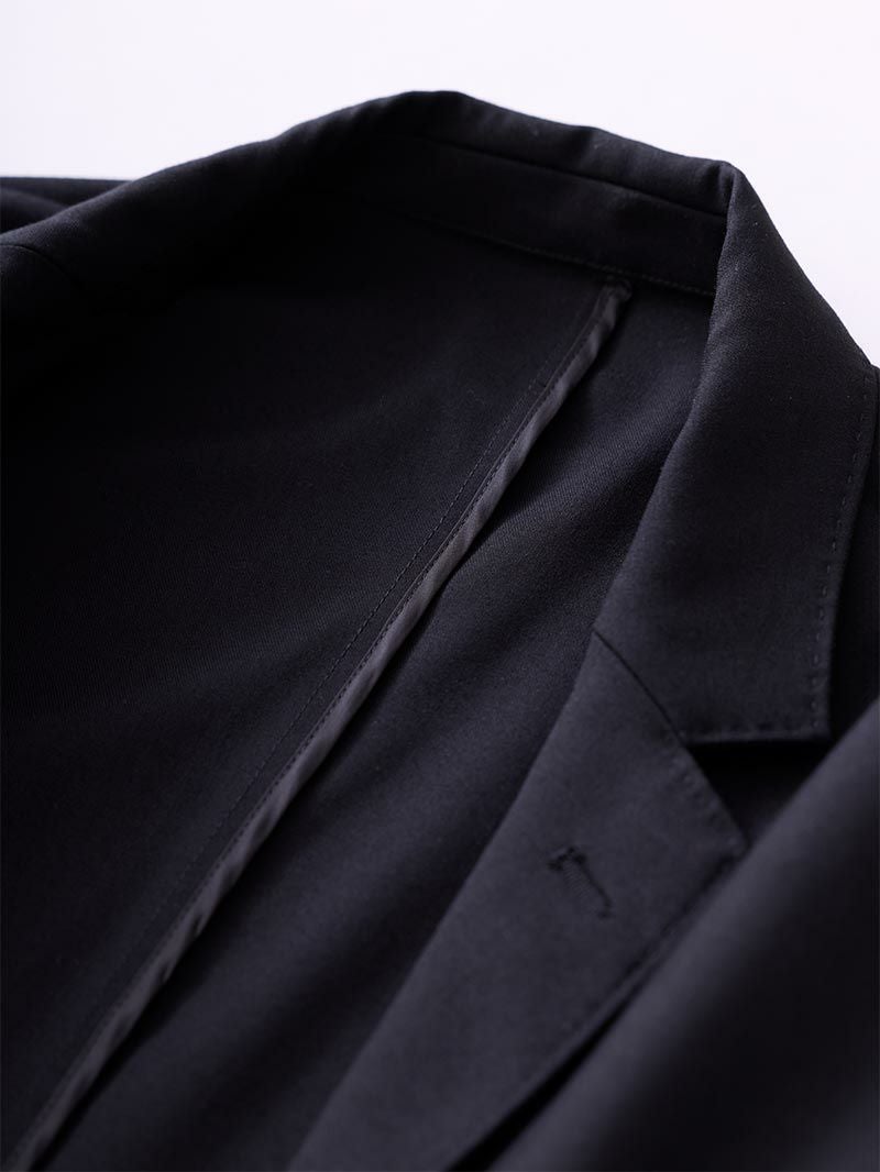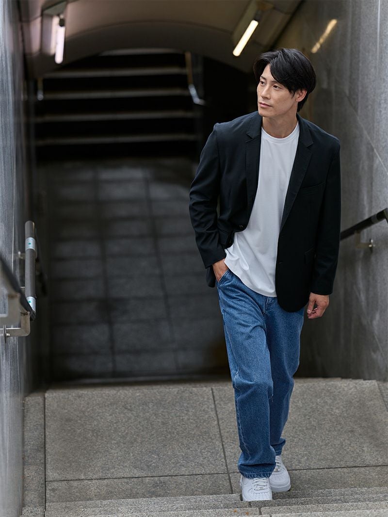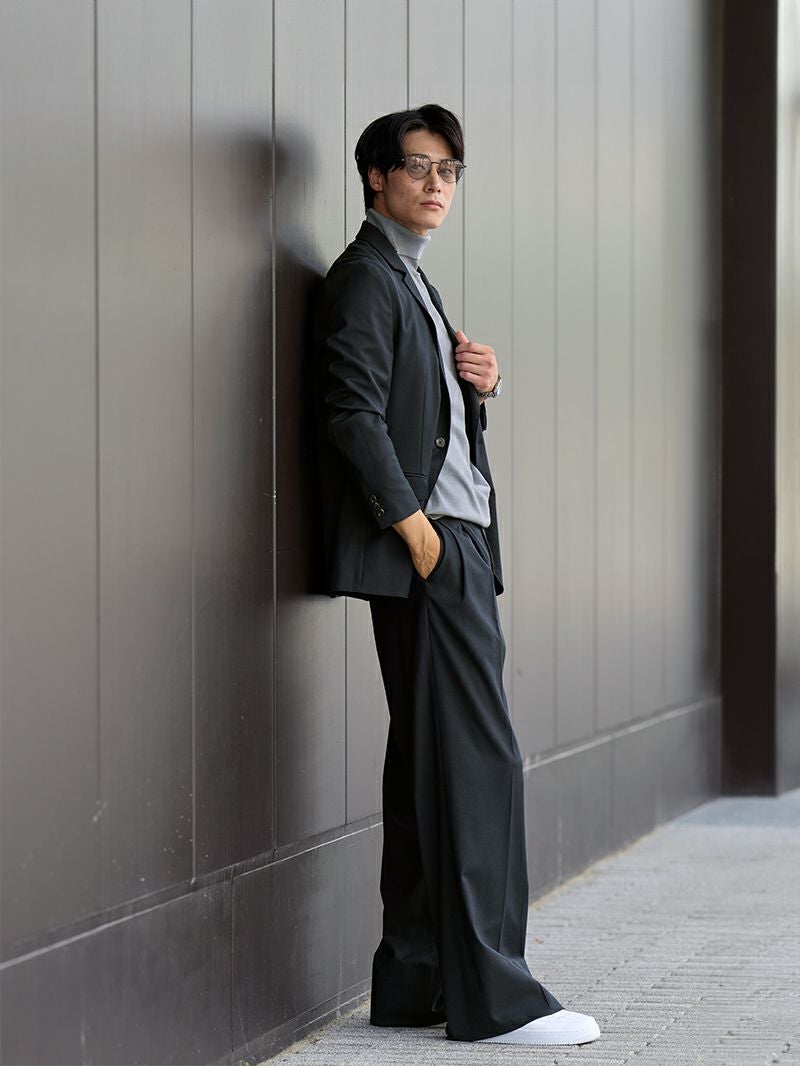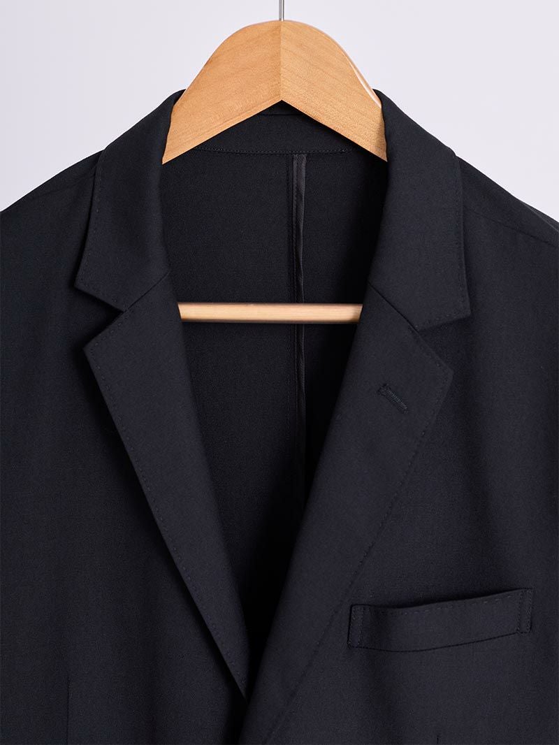 アイテム説明 羽織るだけで、艶と品格。 CODEパンツWOOLとセットアップで着られるように設計された、テーラードジャケット。 パンツに合わせるだけで、ビジネスも週末もインナーを選ぶだけでコーデが完成します。 もっと見る CODE WOOLの特徴 ウール20%配合による自然な光沢と高級感。 ステッチレス&まつり縫いで無駄を削ぎ落としたミニマルな佇まいを演出。 袖口は本開き風のデザインを採用し、上品に整えるディテールに。 高級スーツに用いられるAMFステッチを採用。 AMFステッチとは、ラペルのフチなどに入るハンド風ステッチのこと。 ジャケットの襟に求められる立体感の演出と、型崩れ防止の役割があります。 AUENのロゴ入りボタン。 セットアップなら朝5秒で決まる 上下同素材だから パンツの色ブレ”がゼロ。朝はインナーだけ選べば OK。 3つの機能性 ①洗濯機洗い可 忙しくてもクリーニング要らず。ネットに入れて普通に洗濯&干すだけでシワにならずお手入れ簡単。 ➁防シワ素材 シワが付きにくく、一日中きちんとした印象をキープ。 ③ストレッチ性 肩まわりや腕の可動域にゆとりを持たせたパターン設計と伸縮自在な生地が肩回りの動きを妨げない。 お客様が感じるCODEシリーズの良さ ✔ オフィスでもカジュアルでも使える ✔ 楽に着られるのに、きちんと感が出る ✔ 毎日使いたくなるケアのラクさと安心感 同素材パンツ 選べる3シルエット CODEテーパードパンツ ウールブレンド 通年用 CHECK CODEストレートパンツ ウールブレンド 通年用 CHECK CODEワイドパンツ ウールブレンド 通年用 CHECK サイズ・素材 肩幅 身幅 袖丈 着丈 S 43.5 49 60 69.5 M 45 51 61 71.5 L 47 53.5 62 73.5 XL 49.5 56.5 62.5 75 ※表記サイズは実寸であり、個体差により誤差が生じる場合があります。 ※商品によっては洗濯タグにヌード寸法が記載されておりますが、実寸とは異なります。 伸縮性 あり ややあり なし 厚み 厚手 普通 薄手 透け感 あり ややあり なし 洗濯 洗濯OK ネット使用 手洗いのみ 表地 ポリエステル56%ウール25%レーヨン15%ポリウレタン4% 裏地 キュプラ100% 生産国 中国 禁止事項 乾燥機使用×漂白剤使用× 表示を隠す スタッフ試着レビュー サイズにお悩みですか? AIに適正サイズを聞く 返品・交換は無料で安心 ご自宅でじっくりご試着いただけます。合わなければ送料負担なく返品できます。あなたにぴったりの一着と出会えるよう、お手伝いいたします。 コーディネート ブラック着用 全身ブラックで統一したセットアップコーデ シャツをタックインしてシルエットにメリハリをつけると、シンプルながらも大人っぽい印象に仕上がります。 仕事の合間や仕事後の寄り道ではベルトを垂らし遊び心を加えると、堅くなりすぎず抜け感のあるコーデに。 CODEテーパード ウールブレンド 通年用 CHECK 比翼仕立てタイプライターシャツ CHECK ナローメッシュベルト CHECK ブラック着用 オンオフ両方におすすめな万能キレカジ ブルー系で統一したコーデは黒のジャケットを羽織ることで、グッと引き締まった印象に。 ジャケット×デニムの組み合わせは、きちんと感とカジュアルさを両立した鉄板のキレカジコーデです。 ハイゲージシルクニット CHECK ストレートジーンズ CHECK グレー着用 信頼感を演出する大人のセットアップコーデ グレーのセットアップに黒のインナーを合わせた、信頼感のあるコーデ。 黒をインナーに入れると全体が引き締まり、落ち着いた雰囲気に仕上がります。 足元はスニーカーで軽快さを出し、堅くなりすぎないのがポイント。 ハイゲージシルクニット CHECK CODEストレート ウールブレンド 通年用 CHECK グレー着用 軽やかにキマるグレージャケットコーデ 黒をベースにグレーのジャケットを羽織った、オフィスコーデ。 ジャケットプラスすることで、きちんと感のある雰囲気を演出できます。 足元は白を合わせることで、軽やかな印象に。 ハイゲージシルクニット CHECK CODEセミワイドパンツ ルーズ CHECK スマートスニーカー CHECK ネイビー着用 ブルーで魅せる爽やか大人セットアップ ブルー系で統一したセットアップコーデは、清潔感・爽やかさ・大人っぽさがある好印象スタイル。 シンプルでも色味の統一感が洗練された雰囲気を演出してくれます。 オフィスやデート、家族の行事などにおすすめです。 ハイゲージシルクタートルニット CHECK CODEワイド ウールブレンド 通年用 CHECK ネイビー着用 白T×デニムで着こなすジャケパンコーデ テーラードジャケットに白Tシャツとデニムパンツを合わせ、ドレスとカジュアルを程よくミックスしたスタイル。 足元は白スニーカーで軽さと清潔感をプラスしました。 オンオフ問わず活躍するおすすめのコーデです。 CODEロングスリーブTシャツ CHECK ストレートジーンズ CHECK スタッフコーディネート もっと見る
