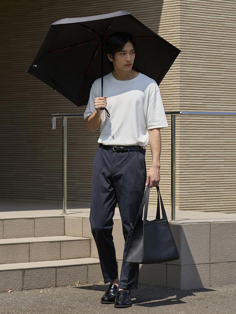 アイテム説明 UVカット率&遮光率99.9% UPF50+、UVカット率・遮光率ともに99.9%でしっかり日差しをブロック。 紫外線による疲労や日焼けを防ぎ、見た目もコンディションも整えます。 UPF:衣類の紫外線防止指数(紫外線(UV)から肌をどれだけ保護できるかを示す指数です) もっと見る 遮熱効果30%で快適に。 日差しによる体感温度を約30%カット。強風にも耐える安心設計。 炎天下や風の強い日も快適に過ごせる、頼れる一本です。 天気が読めない日も、心強い相棒 ボタンひとつでスムーズに開閉。急な雨や日差しにも、片手でスマートに対応。 ビジネスバッグを持った移動時や休日のお出かけにも重宝します。 カラー骨×大判サイズで差をつける傘 風に強いグラスファイバー骨&広範囲を覆うビッグサイズ。 スーツにも私服にも馴染む洗練デザインで、シーンを選ばず活躍します。 サイズ・素材 親骨サイズ 直径 折りたたみ時 F 60 102 31 ※表記サイズは実寸であり、個体差により誤差が生じる場合があります。 ※商品によっては洗濯タグにヌード寸法が記載されておりますが、実寸とは異なります。 表地 ポリエステル100% 裏地 なし 生産国 中国 表示を隠す サイズにお悩みですか? LINEでサイズ相談する 返品・交換は無料で安心 ご自宅でじっくりご試着いただけます。合わなければ送料負担なく返品できます。あなたにぴったりの一着と出会えるよう、お手伝いいたします。 コーディネート Model : 179㎝ / 66㎏ / F / ブラック着用 好印象をつくる、王道シンプルコーデ ホワイトTシャツで清潔感、ネイビーパンツで誠実感を演出。 センタープレス入りのパンツを合わせれば、きちんと感と脚長効果も得られ、スタイルアップが叶います。オフィカジにおすすめのコーデです。 クールタッチスムースTシャツ CHECK クールタッチリラックステーパード CHECK whoop'-de-doo' ドライビングローファー CHECK 2wayマルチトートバッグ CHECK Model : 179㎝ / 66㎏ / F / ブラック着用 涼しげに魅せる、Iラインシルエットコーデ 風通しの良いサマーニットは、見た目から涼しく柔らかな印象に。 ルーズなトップスには、ややワイドなパンツを合わせるとバランスが整い、キレイなIラインシルエットに仕上がってスタイルアップが叶います。 テクスチャーサマーニット CHECK CODEセミワイドパンツ ルーズ CHECK スマートスニーカー CHECK REGiSTA撥水加工ショルダーバッグ CHECK スタッフコーディネート もっと見る