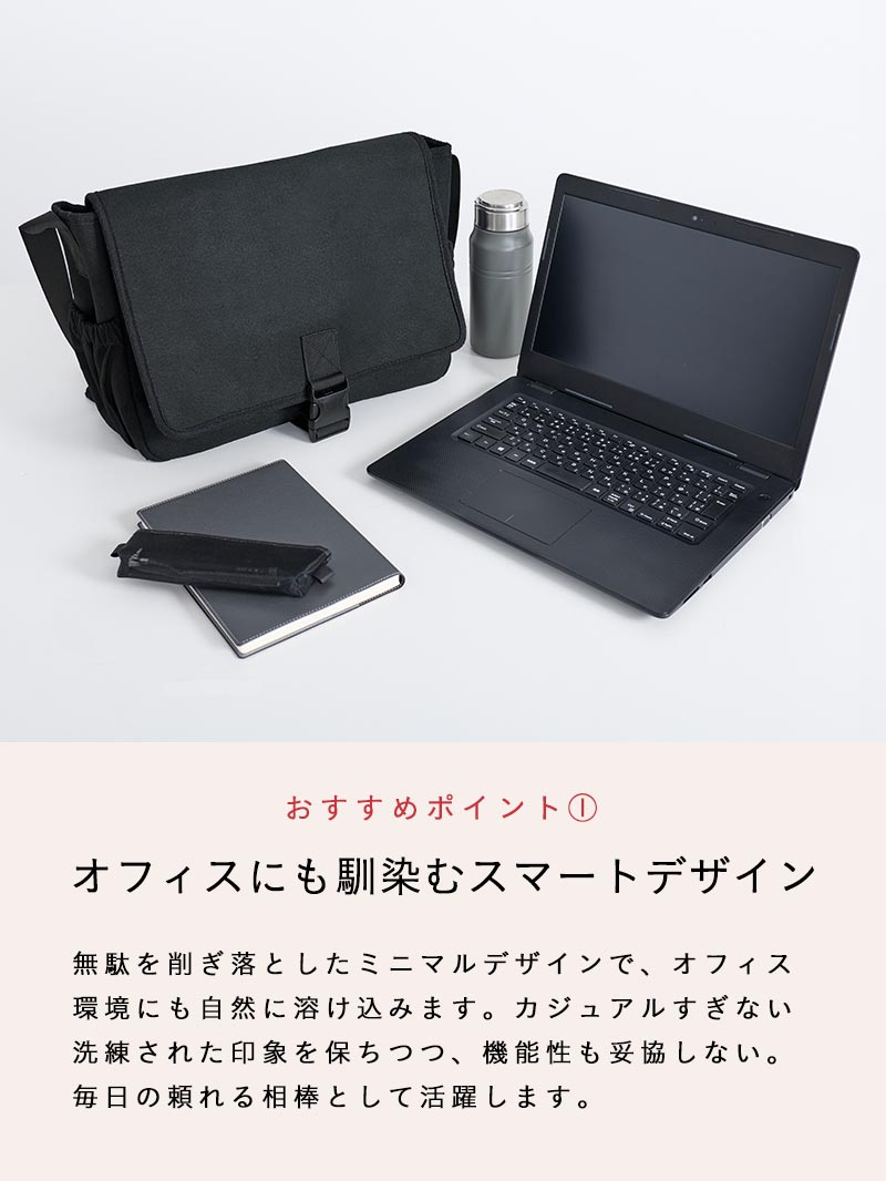 アイテム説明 毎日をストレスフリーに過ごせるメッセンジャーバッグ メッセンジャーバッグの おすすめポイント 01. オフィスにも馴染むスマートデザイン 無駄を削ぎ落としたミニマルデザインで、オフィス環境にも自然に溶け込みます。 カジュアルすぎない洗練された印象を保ちつつ、機能性も妥協しない。 毎日の頼れる相棒として活躍します。 02. 毎日の移動を快適にする絶妙サイズ 電車でも自転車でも邪魔にならず、斜めがけスタイルで両手が自由に。 移動中もスマホ操作や改札タッチがスムーズで、日々の通勤時間がストレスフリーに。 いつもの移動がより軽やかになります。 03. 一つで完結、大容量設計 PC・ノート・小物まで、たっぷり収納できる大容量設計。 必要なものを全部入れられるから、「あれ持ってくるの忘れた」がなくなり、安心して外出できます。 一つのバッグで完結する快適さが魅力です。 04. 使いやすさにこだわったディテール ドリンクホルダーや小物が入るポケットなど、毎日使うからこそ嬉しい工夫が満載。 必要なものにすぐ手が届く心地よさで、一日の動きがスムーズに。毎日をもっと快適に過ごせます。 サイズ・素材 横幅 高さ マチ 肩ひも F 35 28 12 40~127 ※表記サイズは実寸であり、個体差により誤差が生じる場合があります。 ※商品によっては洗濯タグにヌード寸法が記載されておりますが、実寸とは異なります。 洗濯 洗濯機不可 ネット使用 手洗いのみ 表地 綿100% 裏地 なし 生産国 中国 禁止事項 乾燥機使用×日向干し×漂白剤使用× 表示を隠す サイズにお悩みですか? AIに適正サイズを聞く 返品・交換は無料で安心 ご自宅でじっくりご試着いただけます。合わなければ送料負担なく返品できます。あなたにぴったりの一着と出会えるよう、お手伝いいたします。 コーディネート Model : 183㎝ / 64㎏ / F / ブラック着用 実用性を備えた、軽快なオフィススタイル マウンテンパーカーを羽織ったオフィススタイル。 キレイめなスラックスを合わせることで、ラフになりすぎない大人のバランスに仕上げました。 メッセンジャーバッグは実用性もあり通勤にぴったりです。 タウンユースマウンテンパーカー CHECK ダブルジャガードハイゲージカーディガン CHECK CODEロングスリーブTシャツ CHECK CODEイージーパンツ CHECK Model : 183㎝ / 64㎏ / F / ブラック着用 身軽に動ける、休日パパスタイル 家族で過ごす休日は、両手が空いて使い勝手の良いバッグがおすすめです。 シンプルなデザインで、カーディガン×スラックスのキレイめスタイルにもぴったり。 きちんと感を保ちながら、肩の力を抜いた頼れるパパコーデです。 畔編みニットカーディガン CHECK CODEロングスリーブTシャツ CHECK CODEテーパード ウールブレンド 通年用 CHECK スマートスニーカー CHECK スタッフコーディネート もっと見る