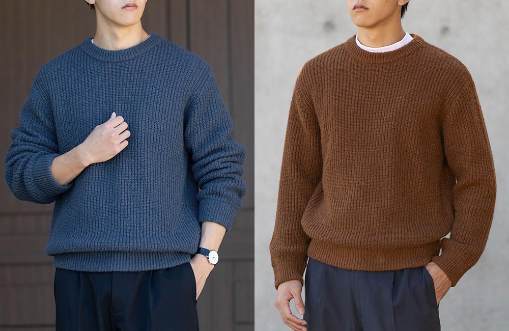 まずサイズで迷いました。LINE で相談したところ XL を提案されましたが、写真を見る限り、ゆったりしすぎている様に感じました。結局写真と自分の判断を信じて M をチョイス、正解でした(私自身、ニットとは言え、少しタイト目が好みなので、ゆったり着たい方は L or XL でも良いと思います)。予想していたより少し厚手でしたが、ニットらしくて良い質感です。またブラウン色も今年のトレンドカラーに合った感じで、良い買い物ができたと思っています。CODE パンツやデニムと合わせて楽しみたいです。