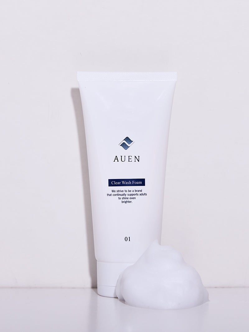 パッケージリニューアルのお知らせ DCOLLECTIONからAUEN[オーエン]へのブランド名変更に伴い、スキンケア商品のパッケージをリニューアルいたします。 ※内容量・品質・価格はこれまでと変わりません。現行パッケージの在庫がなくなり次第、順次切り替えとなります。 ※セット商品をご注文の場合、現行パッケージと新パッケージが混在する場合がございます。あらかじめご了承ください。 お客さまの声が続々と届いてます 洗顔難民だった私が… 洗顔料難民として多くの商品を試してきましたが、肌がつっぱったり乾燥したり、自分に合うものを見つけるのに苦労していました。 そんなときに出会ったのが「クリアウォッシュフォーム」。 洗顔後も肌がつっぱりにくく、しっとりとした仕上がりなのがとてもいい感じです! ※個人の感想であり、使用感には個人差があります 乾燥肌で洗顔後は頬がガサガサ… 乾燥肌で洗顔後は頬がガサガサして痛くなるのにずっと悩んでいました。 そんなとき、友人から「クリアウォッシュフォーム」をプレゼントしてもらい使い始めてからは洗顔後もつっぱらずにしっとりとした質感に! 洗顔ネットで泡立てると、細かい泡で優しく洗えるのでとても好きです! 妻に進められて使い始めました 今まで洗顔料は使わず水でしか顔を洗ってきませんでした。 しかし年齢と共におでこや鼻のテカリが気になるように...。 元々アトピー肌なので洗顔料を使うのが好きではなかったのですが、妻の勧めで「クリアウォッシュフォーム」を使い始めてからは洗顔をしないと落ち着かないくらい、肌の調子が良くなりました! ※個人の感想であり、使用感には個人差があります どうしてクリアウォッシュフォームは大人の男性に選ばれるのか 実は男性は皮脂分泌量が女性の2~3倍 皮脂分泌量が多いためニキビが出来やすくなったり、毛穴に古くなった皮脂が詰まったままになることで毛穴が開いた状態になってしまうのです。 女性 男性 約3倍 洗顔料選びはむずかしい 毛穴の皮脂や汚れを落とす洗浄力の強い洗顔は肌がつっぱったり乾燥しやすい。 元々水分蒸発量が多い男性の肌は、よりダメージに弱い状態となり、肌トラブルにつながる可能性があるのです。 でも男性のための洗顔料なら 独自の技術で、毛穴の皮脂や汚れまでスッキリさっぱり。 吸着型ヒアルロン酸で洗い上がりもしっとり潤いつづく。 クリアウォッシュフォーム point01 洗顔テクノロジー 独自技術で皮脂の多い毛穴もしっかり洗浄 肌の汚れが残ったままだと、ニキビや毛穴開き、テカリなどの原因に。 洗顔テクノロジーを搭載したことで、洗浄成分が皮脂の多い毛穴に浸透し、余分な皮脂や汚れを洗浄しつつ、清潔な肌の土台を作ります。 point02 つっぱらない「吸着型ヒアルロン酸」配合 洗顔後のつっぱりや乾燥を防ぐため吸着型ヒアルロン酸を配合。 洗っても落ちにくいヒアルロン酸ヴェールで潤いつづく洗い上がりに。 point03 9つの無添加を実現敏感肌にも嬉しいエイジングケア* 低刺激なので、敏感肌でお悩みの方でも毎日ご使用いただけます。 *年齢に応じたお手入れ 他にもたくさんの喜びの声をいただいています ※個人の感想であり、使用感には個人差があります 洗い上がりもつっぱらずにしっとり仕上がるのでとても良かったです! 洗顔ネットもついているので、とても便利でした! 30代/男性 泡立てると細かくもっちりとした泡になり、顔を洗うのがとても気持ちいいです。 朝晩使っているのですが、大体2か月くらい持つので価格面でも続けやすいです。 50代/男性 父が使っていて気になっていたので、こっそり拝借...。 使い続けるにつれて、どんどん肌の調子が良くなってきたように感じます! 今では母も愛用中です。 20代/男性 洗顔後に肌が突っ張って乾燥するのでとても重宝します。 洗顔も泡立ちが良くて心地良いです。毎回リピートしています。 50代/男性 安心して使っていただけるように製造の全工程を日本で完結 お客さまに安心して使っていただけるように、AUEN(旧DCOLLECTION)の化粧品は、製造の全工程を日本国内で完結。 商品の生産では異物混入がないか、パッケージや包装に汚れや破損がないかなど、徹底した品質管理のもと製造した商品をお客さまにお届けしています。 よりスキンケアの効果を感じるならオールインワンローションとの併用がおすすめです スキンケアをなかなか継続できなかった本人が開発した「オールインワンローション」。 敏感肌にも使えて肌が潤う保湿液は角質活性で輝く肌の基礎をつくります。 商品をみる Q&Aよくある質問 使用するタイミングはいつがベストですか? 朝晩、1日2回の使用がおすすめです。 朝の洗顔は就寝中に出た皮脂や汗、ホコリを洗い流したり、夜のスキンケアをリセットする目的があります。 また夜の洗顔は、日中に出た皮脂や汗、汚れを落とす目的があります。 使用量の目安は? 洗顔料は2cm程度がおすすめの使用量です。 どれくらい使えますか? およそ2か月