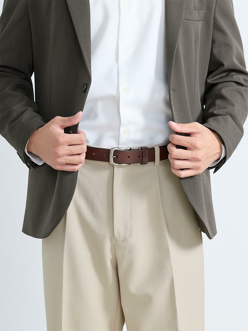 アイテム説明 腰で育てる、レザーベルト リアルレザーは使うほどに馴染み、表面に艶が増す。 バックルはシャープに絞って“ビジネス感出しすぎ”を回避。 普段も仕事も、さりげなく格上げしてくれる。 普段も仕事も、さりげなく格上げしてくれる 一本を日々育てる楽しさを、ウエストに。 長さは自分でカット調整OK ※天然皮革のため、風合い・色合いには個体差があります。 ※色移りにご注意ください。特に濡れた状態や淡色の着こなし時は配慮ください。 サイズ・素材 全長 幅 最小穴 最大穴 F 118.5 3 98 108 ※表記サイズは実寸であり、個体差により誤差が生じる場合があります。 ※商品によっては洗濯タグにヌード寸法が記載されておりますが、実寸とは異なります。 表地 皮革 生産国 日本 表示を隠す サイズにお悩みですか? AIに適正サイズを聞く 返品・交換は無料で安心 ご自宅でじっくりご試着いただけます。合わなければ送料負担なく返品できます。あなたにぴったりの一着と出会えるよう、お手伝いいたします。 コーディネート Model : 179㎝ / 66㎏ / F/ ブラック着用 清潔感はキープオフィカジコーデ オフィスの王道、ジャケパンスタイルは、清潔感を意識して着こなしたいものです。 センタープレスのピシッと入ったパンツは、オフィススタイルのマストハブ、好相性のブラックベルトも忘れずに。 CODEジャケット【2025年モデル】 CHECK レギュラーカラーシャツ CHECK CODEストレートパンツ ウールブレンド 通年用 CHECK Model : 179㎝ / 66㎏ / F/ ブラウン着用 秋カラーでまとめたジャケパンスタイル オフホワイト〜ブラウンの秋冬らしい着こなしは、上品さと優しさのある着こなし。 ベルトやシューズなどの小物もブラウン系を選び統一感のある着こなしを完成させましょう。 CODEジャケット ウィンター CHECK レギュラーカラーシャツ CHECK CODEストレートパンツ CHECK スタッフコーディネート もっと見る