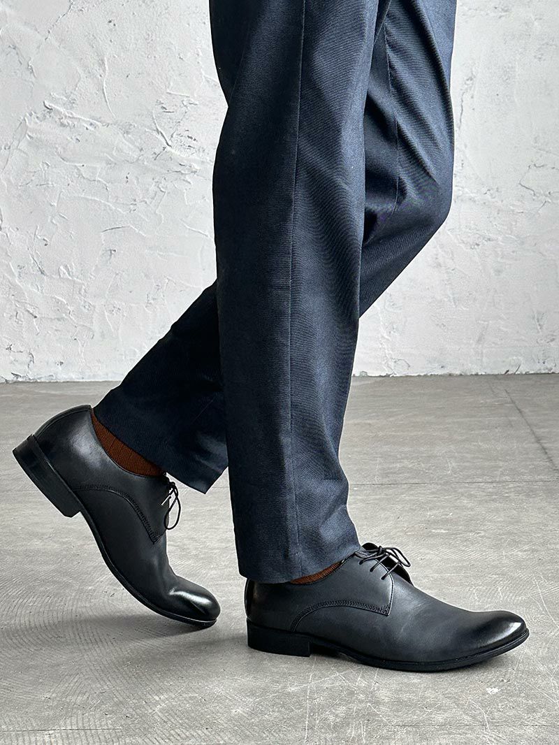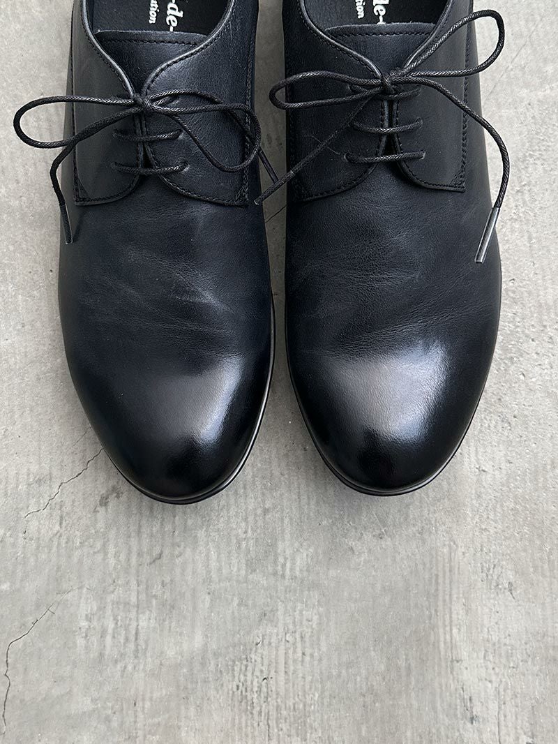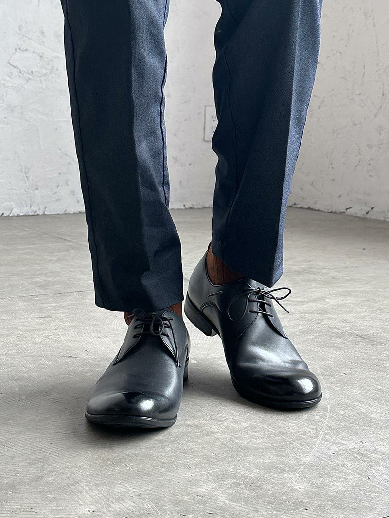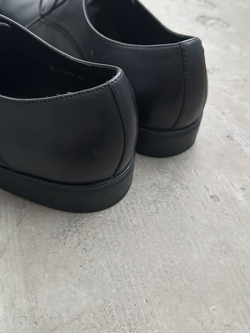 商品画像はライトの反射でつや消しの様に見えたのですが、実物はしっかりとした艶がありました。デザインについても画像ではつま先の幅が広めに見えましたが、実物は限りなくプレーンでした。商品自体は質が高いと思うので、履き込んでみます。