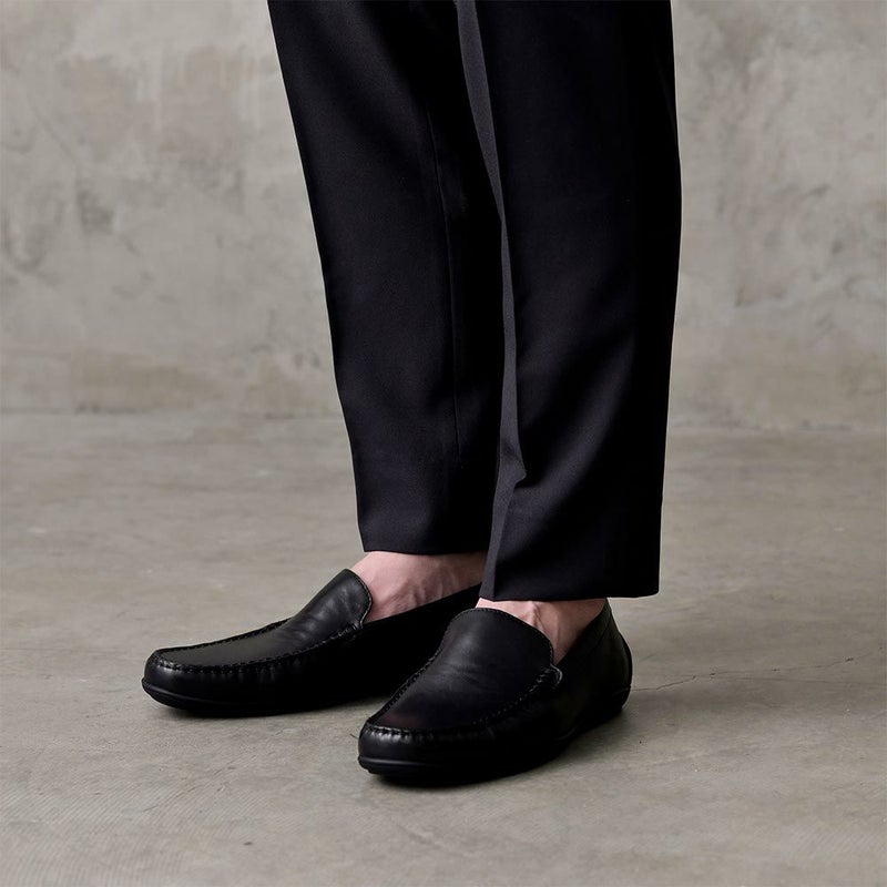 とても柔らかく上質な牛革で足馴染みの良さと上品な艶があります。脱ぎ履きしやすいスリップオンタイプで紐靴にはないカジュアルさと気軽さで、こなれたスタイリングが楽しめます。