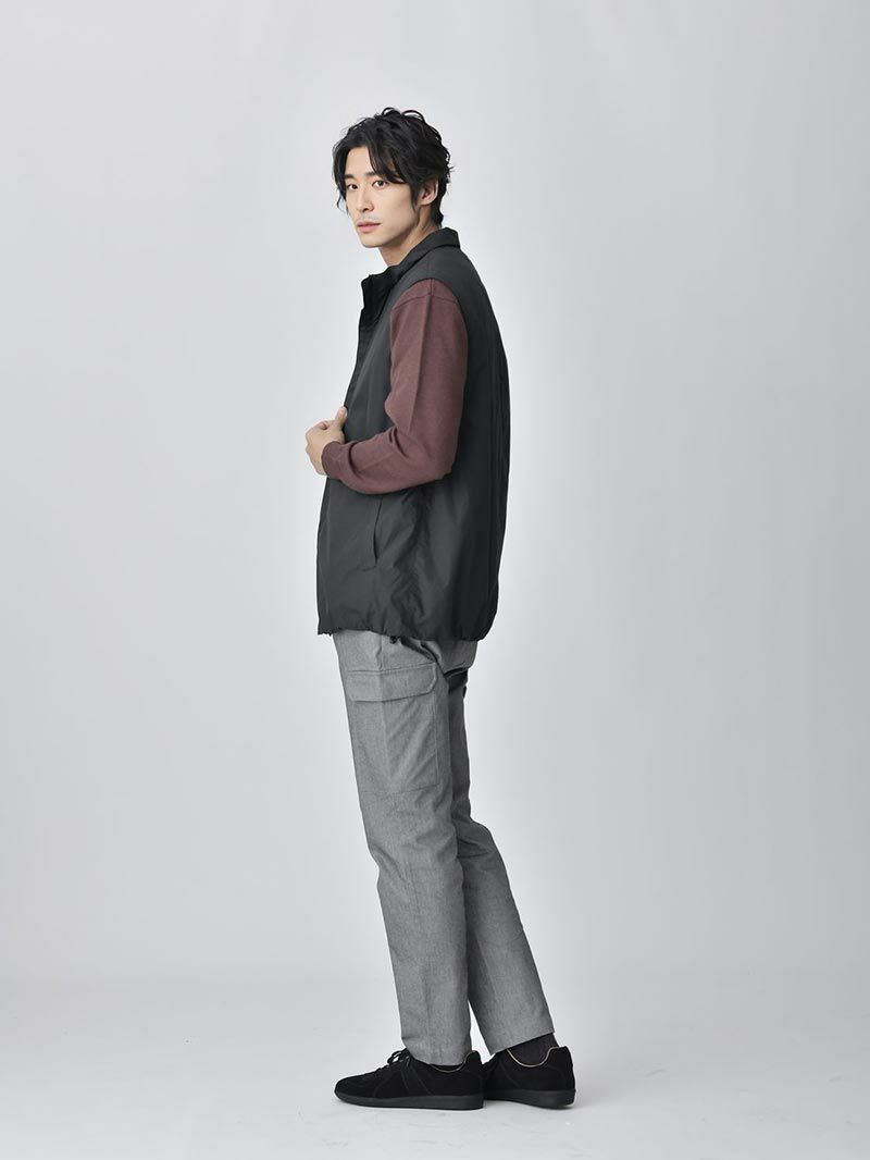 アイテム説明 大人っぽいカーゴパンツ 一般的なカーゴパンツと比較して、シンプルで大人っぽいデザインに。10年間試行錯誤を繰り返したテーパードシルエットは大人に合わせて、タイト過ぎず快適な穿き心地を実現しました。 もっと見る ウエストゴム仕様なので、お腹まわりが気になる方でも着脱ラクラク。 光沢感のあるデニム生地を使用し上品な仕上がりに 左:一般的なデニム生地/右:大人デニムテーパードパンツ(当アイテム) 一般的なカーゴパンツと比較して、シンプルで大人っぽいデザインに。10年間試行錯誤を繰り返したテーパードシルエットは大人に合わせて、タイト過ぎず快適な穿き心地を実現しました。 デニム本来のインディゴ染めを使用せず環境にも配慮しました ストレッチ 伸縮性のある生地を使用しているため、柔軟な動きにもしっかり対応できます。 同素材のジャケットと組み合わせれば、上級セットアップタイルの完成!セットアップコーデは簡単にオシャレな色合わせ・シルエットに仕上がるので、コーデ作りが面倒な方や苦手な方に特にオススメです。 インナーを決めるだけでOK セットアップはアウターとパンツが決まっているので、あとはインナーを決めるだけでOK!色合わせとシルエットのポイントを押さえたオシャレな好印象コーデが自動で完成します。 一緒におすすめ デニムテーラードジャケット CHECK デニムオーバーシャツジャケット CHECK スウェットプルパーカー CHECK ハイゲージシルクニット CHECK バンドカラーシャツ CHECK サイズ・素材 ウエスト 股上 股下 ヒップ もも幅 すそ幅 XS 75.5~78 26 68.5 94 29.5 17.5 S 78~80 26.5 71 97 30.5 18 M 80~83 27 72.5 102 31.5 18.5 L 82.5~84.5 27.5 74.5 104 32.5 19 ※表記サイズは実寸であり、個体差により誤差が生じる場合があります。 ※商品によっては洗濯タグにヌード寸法が記載されておりますが、実寸とは異なります。 伸縮性 あり ややあり なし 厚み 厚手 普通 薄手 透け感 あり ややあり なし 洗濯 洗濯OK ネット使用 手洗いのみ 表地 綿67% ポリエステル30% ポリウレタン3% 裏地 なし 生産国 中国 表示を隠す サイズにお悩みですか? LINEでサイズ相談する 返品・交換は無料で安心 ご自宅でじっくりご試着いただけます。合わなければ送料負担なく返品できます。あなたにぴったりの一着と出会えるよう、お手伝いいたします。 コーディネート Model : 179㎝/66㎏/ L / グレー着用 ハイゲージニット CHECK スウェードレザースニーカー CHECK Model : 179㎝/66㎏/ L / グレー着用 ハイゲージシルクニット CHECK シルバー925 デザインバングル CHECK Model : 179㎝/66㎏/ L / インディゴ着用 ハイゲージ長袖カットソー CHECK Model : 176㎝/62㎏/ L / インディゴ着用 ワイドルーズストライプシャツ CHECK Vネック半袖Tシャツ CHECK スウェードレザースニーカー CHECK スタッフコーディネート もっと見る