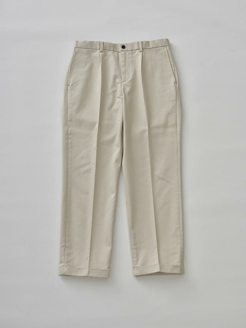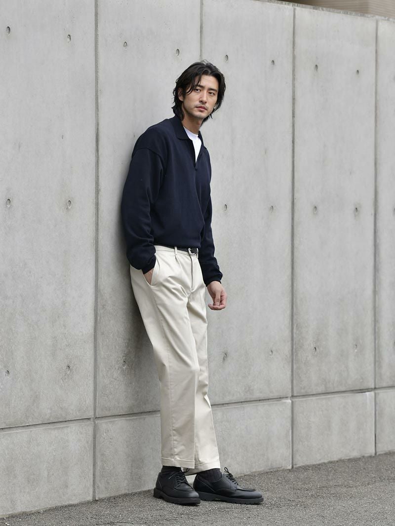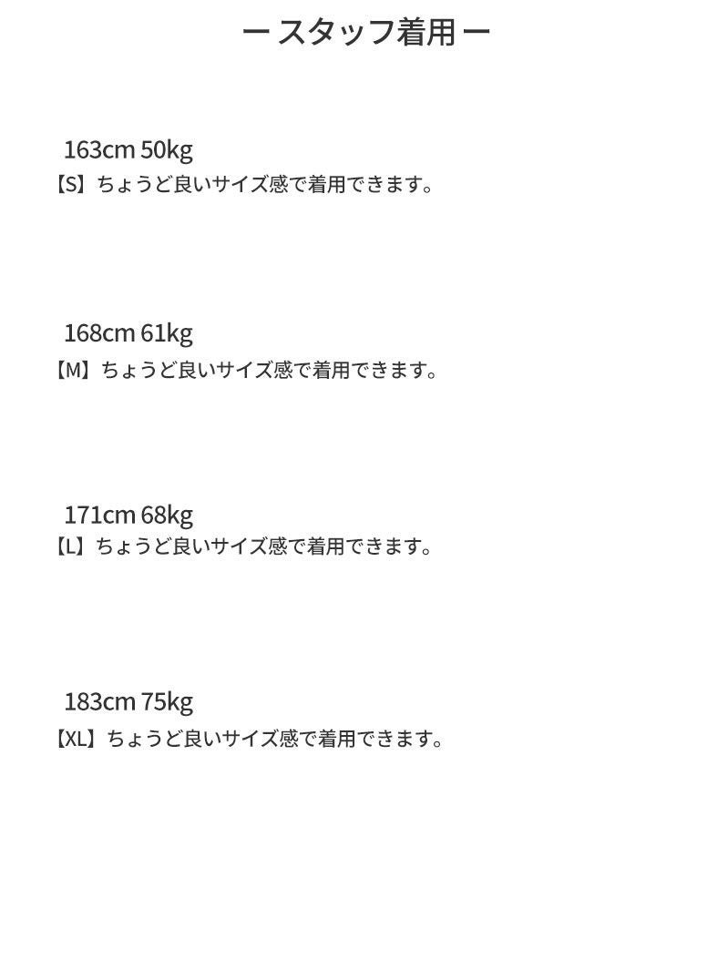 アイテム説明 ドレッシーなチノパン 「オシャレの土台はボトムである」というオシャレの教科書に沿って、「スリムフィット」「テーパード」「セミワイド」の3シルエットで作りました。 スリムフィットは3つの中で最もタイトなシルエットです。ビッグシルエットTシャツなどを合わせてYラインシルエットを構築するのに最適です。 もっと見る 得意技である美しいテーパードシルエット。太ももにはゆとりがあり、足首に向かって細くなるので体型カバー、脚長効果があります。 トレンドのワイドパンツに挑戦するのに最適なセミワイドシルエットです。厚みのある生地なのでワイドでキレイなシルエットに仕上がっています。 上品な光沢のある ダブルクロス仕上げ 「ダブルクロス」とは、2枚の布を交差させて織ったもので、その構造から生地はしっかりとした厚みが出て、高級感があります。 形状の安定性も高く、しわになりにくい特性があるため、スーツやジャケットなどのフォーマルな服装によく用いられる上品な生地をチノパンにしました。 デザイン性の高い仕上がり シャーリングを後ろから横に持ってくることで後ろから見た時のシルエットの美しさにもこだわりました。 ベルト幅を細くしてドレッシーな雰囲気に仕上げてあります。 裾をダブル仕様にすることで視線が集まる足首に軽さが出て、春夏にピッタリです。また細く見える効果もあるのでスタイルがよく見えます。 股とお尻部分の補強を行なっており、頑丈で長く使える仕様です。 サイズ・素材 セミワイド ウエスト 股上 股下 ヒップ もも幅 すそ幅 S 76~80 26 66.5 99 29.5 19 M 79~83 26 68 102 30 19.5 L 81~85 27 71 105 31.5 20 XL 85.5~90 27.5 73.5 108 33 20.5 テーパード ウエスト 股上 股下 ヒップ もも幅 すそ幅 S 76~81 25 67.5 98 30 18 M 79~84 25.5 69 100 31 19 L 81~86 26 71.5 104 32 19 XL 85~91 26 73.5 108 33 19.5 スリムフィット ウエスト 股上 股下 ヒップ もも幅 すそ幅 S 76~80 24 68 - 28.5 17 M 79~83 24.5 71 - 29.5 17.5 L 82~86 25 73 99 30.5 18 XL 85~89 25.5 75 104 31.5 18.5 ※表記サイズは実寸であり、個体差により誤差が生じる場合があります。 ※商品によっては洗濯タグにヌード寸法が記載されておりますが、実寸とは異なります。 伸縮性 あり ややあり なし 厚み 厚手 普通 薄手 透け感 あり ややあり なし 洗濯 洗濯OK ネット使用 手洗いのみ 表地 ポリエステル48% 綿25% レーヨン25% ポリウレタン2% 裏地 なし 生産国 中国 表示を隠す サイズにお悩みですか? LINEでサイズ相談する 返品・交換は無料で安心 ご自宅でじっくりご試着いただけます。あわなければ送料負担なく返品できます。あなたにぴったりの一着と出会えるよう、お手伝いいたします。 コーディネート Model : 179㎝/66㎏/ L / セミワイド チャコール着用 ALTRM ジャストルーズジャケット CHECK ハイゲージシルクニット CHECK Model : 179㎝/66㎏/ L / セミワイド ベージュ着用 CVCスムースリブ付き長袖Tシャツ CHECK Uチップシューズ CHECK Model : 179㎝/66㎏/ L / テーパード チャコール着用 テクスチャーサマーニット CHECK コットンツイル キャップ CHECK Uチップシューズ CHECK Model : 179㎝/66㎏/ L / テーパード ベージュ着用 長袖プレミアムコットンTシャツ CHECK コートレザースニーカー CHECK Model : 179㎝/66㎏/ L / スリムフィット チャコール着用 CVCスムースリブ付き長袖Tシャツ CHECK クラシックレザーUチップシューズ CHECK Model : 179㎝/66㎏/ L / スリムフィット ベージュ着用 ワッフルカーディガン 旧型 CHECK ハイゲージシルクニット CHECK チロリアンシューズ CHECK スタッフコーディネート もっと見る