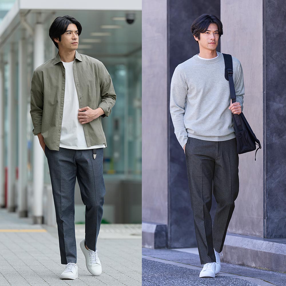 センタープレスなど、キレイめな要素を加えつつ、カジュアルダウン。