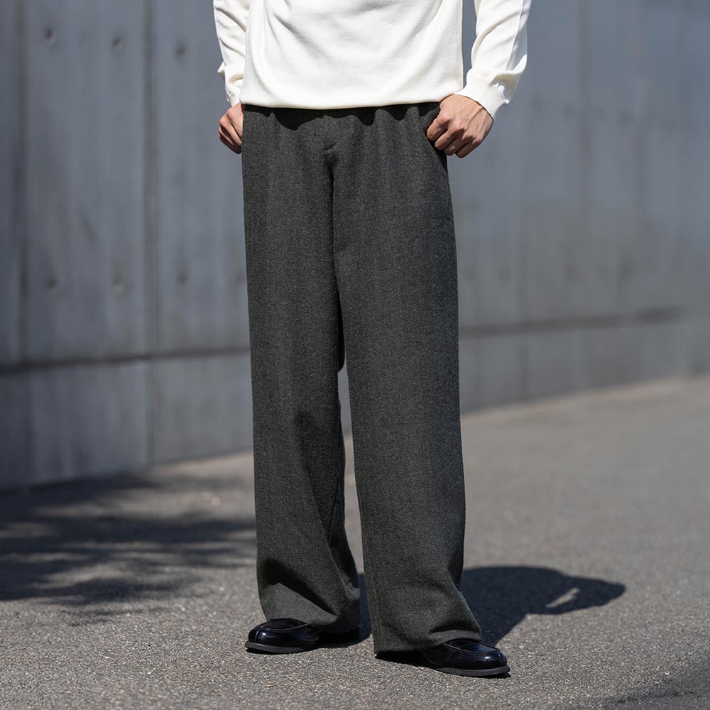 アイテム説明 シンプルな着こなしをさりげない柄でアップデート 無地パンツでは少し物足りない日に選びたくなる、ヘリンボーン柄のツイードワイドパンツです。 派手すぎない柄と、体型を整えるワイドストレートシルエット。 大人のスタイルに自然と馴染みながら、いつものコーディネートに変化を加えてくれます。 ツイードワイドパンツの おすすめポイント 01. 派手すぎない柄が冬コーデに変化を ツイード特有の凹凸が生む立体感により、無地にはない奥行きが自然に生まれます。 柄の主張は控えめなので、スタイル全体を邪魔しません。 近くで見たときに分かる上質さが、品の良さとして伝わる一本です。 02. 季節感を演出してくれる優しい肌触り ウールの見え方を意識しながらも、ポリエステルを主体にすることで軽さとやわらかさを確保しました。 直接肌に触れても刺激が出にくく、長時間穿いてもストレスなく着用できます。 03. ワイドストレートで体型も印象も整う 腰から裾にかけて直線的に落ちるストレートラインに、適度なワイド幅を加えたシルエットを採用。 脚のラインを拾いにくいので体型をカバーしつつ、可動域が広く、動きやすさも十分にあります。 快適さときちんと感の両方を求める大人にこそおすすめです。 サイズ・素材 ウエスト 股上 股下 ヒップ もも幅 すそ幅 S 72~79 32 68 101 33 25 M 78~83 32 69 104 34 25.5 L 82~87 33 70.5 108 35 27 XL 86~91 34 73 112 36 27.5 ※表記サイズは実寸であり、個体差により誤差が生じる場合があります。 ※商品によっては洗濯タグにヌード寸法が記載されておりますが、実寸とは異なります。 伸縮性 あり ややあり なし 厚み 厚手 普通 薄手 透け感 あり ややあり なし 洗濯 洗濯OK ネット使用 手洗いのみ 表地 ポリエステル70%綿12%アクリル8%レーヨン7%ナイロン2%毛1% 裏地 なし 生産国 中国 禁止事項 乾燥機使用×日向干し×漂白剤使用× 表示を隠す サイズにお悩みですか? AIに適正サイズを聞く 返品・交換は無料で安心 ご自宅でじっくりご試着いただけます。合わなければ送料負担なく返品できます。あなたにぴったりの一着と出会えるよう、お手伝いいたします。 コーディネート Model : 179㎝ / 66㎏ / L / チャコール着用 体型カバーもおしゃれも叶える休日コーデ ツイードワイドパンツは、控え目な柄で日常に取り入れやすく、マウンテンパーカーと合わせれば休日お出かけコーデが完成。 ワイドシルエットで、さりげなく体型をカバーしてくれるので気負わずオシャレを楽しめます。 テクニカル2WAYマウンテンパーカー CHECK コットンカシミヤ クルーネックニット CHECK スマートスニーカー CHECK リバーシブルレザーベルト CHECK Model : 179㎝ / 66㎏ / L / チャコール着用 ツイードが主役のモノトーンコーデ ツイードのカジュアルな印象を、バランスよくキレイめに仕上げるなら、こんなモノトーンのジャケットスタイルがおすすめです。 トラッドさも残しつつ、ゆったりとしたパンツのラインで大人っぽく着こなしましょう。 CODEテーラードジャケット ウールブレンド 通年用 CHECK ハイゲージシルクタートルニット CHECK Model : 179㎝ / 66㎏ / L / チャコール着用 品の良さが際立つ大人の秋コーデ バーガンディーニットとツイードパンツの組み合わせは、深みのある秋らしいクラシカルスタイル。 品のある色合いが知的な雰囲気を演出します。 ニットは袖をまくって肌見せすれば、グッとこなれた印象に仕上がります。 コットンカシミヤ クルーネックニット CHECK Salvatole Marra シンプル腕時計 CHECK ナローメッシュベルト CHECK スタッフコーディネート もっと見る
