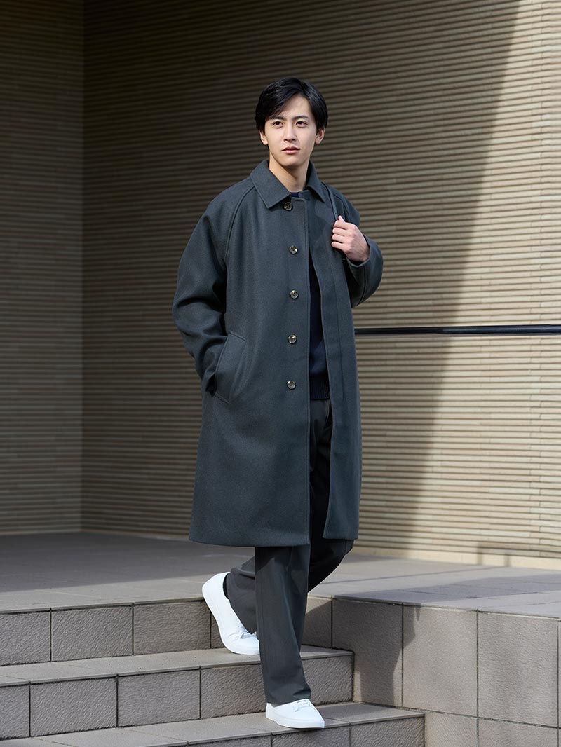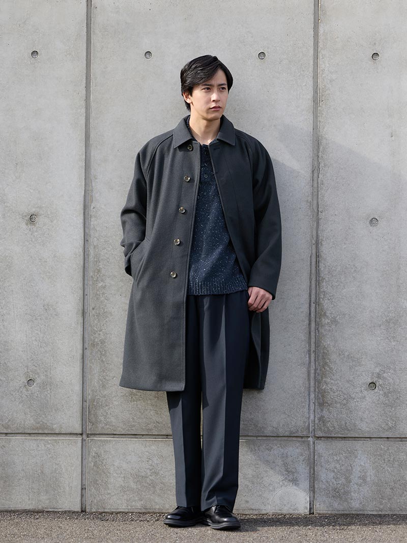 アイテム説明 冬の大人見えコートならステンカラーが最高にカッコいい 上質なメルトン素材が、冬の寒さからしっかり守りながらも、上品な風合いを演出します。 シンプルで洗練されたデザインなので、ビジネスにもカジュアルにも使える一着です。 メルトン素材で高級感も温かさもキープ 重厚感と温かさのあるメルトン素材を贅沢に使用。冬の寒さをシャットアウトしながらも、滑らかな肌触りで心地よい着心地を提供します。 体型カバーにもおすすめスッキリ見えるAラインシルエット 裾に向かってゆるやかに広がる「Aラインシルエット」が特徴。 肩周りはすっきり、裾は広がるため、大人っぽい洗練された雰囲気に。 ストンと落ちるような適度なゆとりがあり、厚手のニットを着ても窮屈感がなく、スッキリして見えるので体型カバーにも最適です。 肉厚で耐久性が高く、長く着用できるのもうれしいポイント 厚手で耐久性に優れたメルトンウール素材が、摩擦や擦れにも強く、使い込むほどに味わいを増します。 シーズンごとのスタイリングに頼れるタフな一着で、長く愛用できる安心感をお届けします。 比翼仕立てならではのシンプルかつ上品なデザイン フロントボタンが隠れる比翼仕立てを採用し、すっきりとしたフロントラインを実現。 無駄を省いたデザインが上品さを引き立て、洗練された印象を与えます。 防寒性も高く、見た目と実用性を兼ね備えたディテールです。 【比翼仕立て(ひよくじたて)とは?】 ジャケットやシャツなどの衣服に用いられる仕立て方法で、ボタンが見えないように前立て部分に布を重ねて覆うデザインです。 サイズ・素材 身幅 裄丈 着丈 S 56.5 83 98.5 M 58 84 101 L 61 85 104 XL 64 87 107 ※表記サイズは実寸であり、個体差により誤差が生じる場合があります。 ※商品によっては洗濯タグにヌード寸法が記載されておりますが、実寸とは異なります。 伸縮性 あり ややあり なし 厚み 厚手 普通 薄手 透け感 あり ややあり なし 洗濯 洗濯OK ネット使用 手洗いのみ 表地 ポリエステル100% 裏地 ポリエステル100% 生産国 中国 表示を隠す サイズにお悩みですか? AIに適正サイズを聞く 返品・交換は無料で安心 ご自宅でじっくりご試着いただけます。合わなければ送料負担なく返品できます。あなたにぴったりの一着と出会えるよう、お手伝いいたします。 コーディネート Model : 179㎝ / 66㎏ / L / チャコール着用 ニット一枚でも暖かいロングコートスタイル 厚手で丈夫なメルトン素材のコートは保温性が高く、インナーはニット1枚でも快適に過ごせます。 足元は白のスニーカーをチョイスすると、コーデのアクセントとなり全体が軽やかな印象に仕上がります。 コットンカシミヤ クルーネックニット CHECK CODEストレート ウィンター CHECK スマートスニーカー CHECK オールブラックキャンバスミニバック CHECK Model : 179㎝ / 66㎏ / L / チャコール着用 インナーで変わるスマートコートの着こなし コーデのマンネリを防ぐなら、少し個性的なネップのポロニットがおすすめ。 ネップのデザインがコーデにメリハリを加え、ゆったりとしたコートもこなれた印象にまとまります。 ネップポロニット CHECK CODEストレート CHECK プレーントゥ ライトレザーシューズ CHECK リバーシブルレザーベルト CHECK Model : 181㎝ / 65㎏ / XL / グレージュ着用 ミラノリブジャケニット CHECK Model : 181㎝ / 65㎏ / XL / グレージュ着用 Model : 181㎝ / 65㎏ / XL / ネイビー着用 Model : 181㎝ / 65㎏ / XL / ネイビー着用 スタッフコーディネート もっと見る