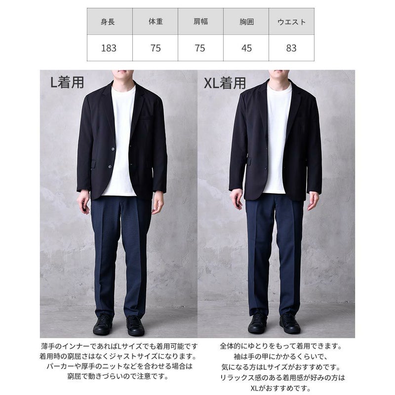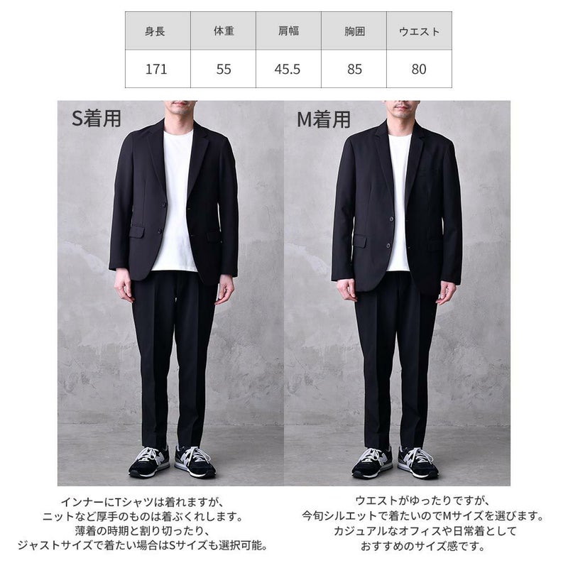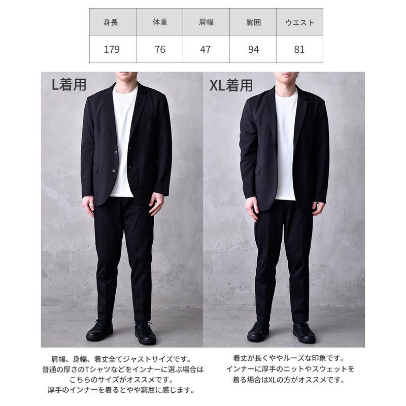 アイテム説明 もっと見る キレイめで好印象なスタイルを実現してくれます。 キレイめで好印象なのでオフィスでも使いやすいです。 普段着にはもちろん、ディナーデートといったセミフォーマルなシーンでも活躍。 当ジャケットには肩パットが入っていないので、フォーマルジャケットのようなかしこまった印象がなく、普段着にマッチする柔らかな着こなしを作れる仕様にしてあります。 カッチリとしたシルエットとは対照になだらかなラインに仕上がっています。 キレイめだけど動きやすいジャケットに仕上げるために、ストレッチ性にはとことんこだわりました。 伸縮性のある生地を使用しているため、動きやすく快適。そしてシワになりにくいイージーケア仕様。 裏地は、全面ではなく部分で縫い付けることで動きやすい作りとなっております。 自宅の洗濯機で洗いたい時にすぐに洗えるのでクリーニングに出す手間もかかりません。また、イージーケアで洗濯後もシワになりにくく、乾いたあとのアイロンも不要です。 サイズ・素材 肩幅 身幅 袖丈 着丈 XS 41 47 56.5 67 S 44 49.5 58.5 69 M 46 51.5 61 70.5 L 47 54 62 73.5 ※表記サイズは実寸であり、個体差により誤差が生じる場合があります。 ※商品によっては洗濯タグにヌード寸法が記載されておりますが、実寸とは異なります。 伸縮性 あり ややあり なし 厚み 厚手 普通 薄手 透け感 あり ややあり なし 洗濯 洗濯OK ネット使用 手洗いのみ 表地 ポリエステル100% 裏地 ポリエステル100% 生産国 ミャンマー、中国 ※生産国のご指定はご対応いたしかねます 禁止事項 表示を隠す サイズにお悩みですか? AIに適正サイズを聞く 返品・交換は無料で安心 ご自宅でじっくりご試着いただけます。合わなければ送料負担なく返品できます。あなたにぴったりの一着と出会えるよう、お手伝いいたします。 コーディネート ブラック着用 バーズアイサマーニット CHECK CODE2テーパードスラックス CHECK オールブラックレザーベルト CHECK ブラック着用 ヘビーウェイト半袖Tシャツ SLIM CHECK 重ね着専用タンクトップ CHECK Salvatole Marra クロノグラフ腕時計 CHECK ネイビー着用 クルーネック半袖Tシャツ CHECK MBスニーカー CHECK ネイビー着用 クルーネック半袖Tシャツ CHECK ドレスチノパンツ CHECK オールブラックレザーベルト CHECK ブラウン着用 ハイゲージサマーニット CHECK Salvatole Marra クロノグラフ腕時計 CHECK PUレザースニーカー CHECK ブラウン着用 Salvatole Marra クロノグラフ腕時計 CHECK PUレザースニーカー CHECK ダークブルー着用 クルーネック半袖Tシャツ CHECK オールブラックレザーベルト CHECK Healthknit 3足セット CHECK ダークブルー着用 ドライタッチ半袖シャツ CHECK 重ね着専用タンクトップ CHECK カイハラデニムパンツ CHECK スクエアキャンバススリッポン CHECK スタッフコーディネート もっと見る