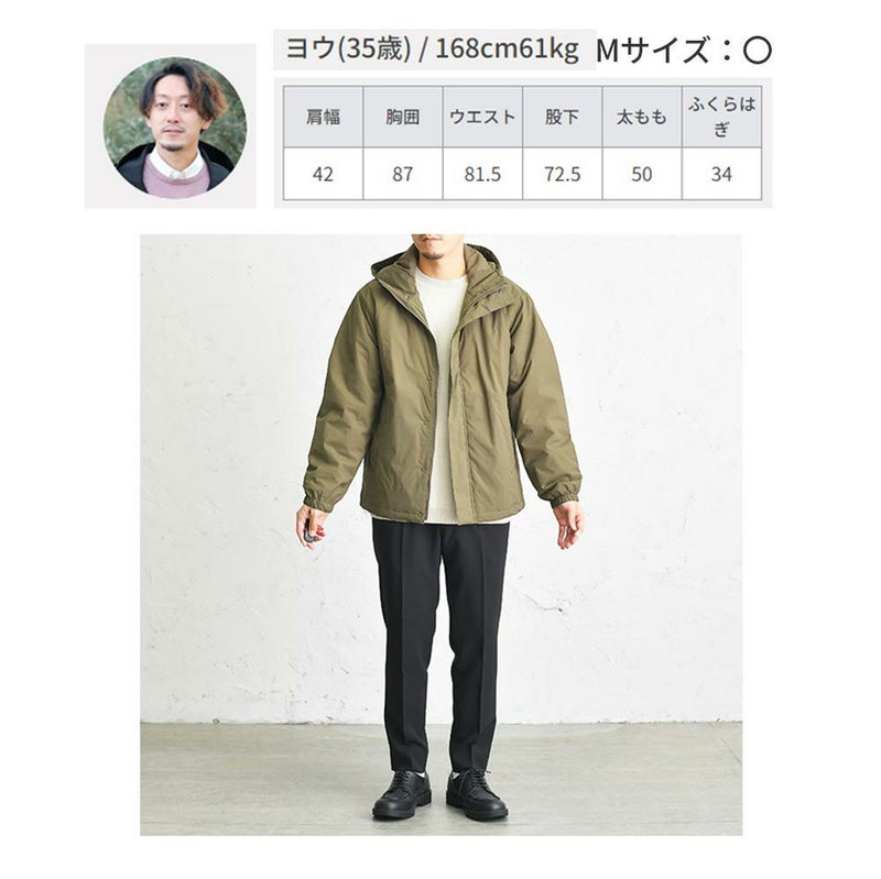 アイテム説明 オンオフ兼用、薄中綿ジャケット オンオフ使えるシンプルなデザイン 幅広いシーンに使えるアウターは1着あるととても便利。 さらに軽量なので、外出時は長時間羽織っていても疲れにくいですよ。 もっと見る 豊富な機能性 撥水加工が施されているため、急な雨も安心です。 またストレッチ性のある生地を使用しているため、窮屈感なく快適のお過ごしいただけますよ。 サイズ・素材 肩幅 身幅 袖丈 着丈 M 51.5 57.5 59.5 69 ※表記サイズは実寸であり、個体差により誤差が生じる場合があります。 ※商品によっては洗濯タグにヌード寸法が記載されておりますが、実寸とは異なります。 伸縮性 あり ややあり なし 厚み 厚手 普通 薄手 透け感 あり ややあり なし 洗濯 洗濯不可 ネット使用 手洗いのみ 表地 表地:ナイロン85% ポリウレタン15% 裏地 ポリエステル100% 中綿:ポリエステル100% 生産国 中国 表示を隠す サイズにお悩みですか? AIに適正サイズを聞く 返品・交換は無料で安心 ご自宅でじっくりご試着いただけます。合わなければ送料負担なく返品できます。あなたにぴったりの一着と出会えるよう、お手伝いいたします。 コーディネート 173cm59kg/M/アッシュカーキ着用 LIQUID ニット カルゼ編み CHECK CODE2テーパードスラックス CHECK モカシンデッキシューズ CHECK オリジナルシンプルトートバッグ CHECK 173cm59kg/M/アッシュカーキ着用 ストライプシャツ CHECK CODE デニムスラックス旧版 CHECK コートスプリットレザーUチップシューズ CHECK オールブラックレザーベルト CHECK スタッフコーディネート もっと見る