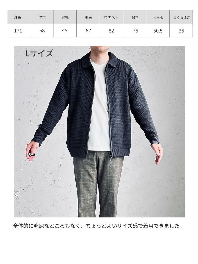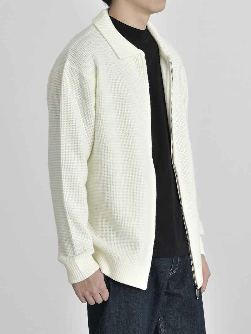 アイテム説明 洗練されたカジュアルを実現する、トレンド感溢れるワッフル編みカーディガン ワッフル編がシンプルな中に個性をプラス ワッフル編み特有の立体感が、カジュアルなデザインに深みを加え、さりげないおしゃれを演出。幅広いシーンで活躍する一着です。 もっと見る トレンド感を引き立て、ワイドパンツとも好相性 ワッフル編みの立体感がトレンド感を強調し、フロントジップが現代的なカジュアルスタイルを演出。ワイドパンツと組み合わせれば、よりバランスの取れたコーディネートが可能です。 絶妙なシルエットとフィット感 体に程よくフィットし、リラックス感のあるシルエット。ワイドパンツやボリューム感のあるボトムスと合わせて、バランス良いスタイリングが完成します。 ジップで簡単着脱 フロントジップで、さっと羽織って簡単に着脱可能。ドライブや外出中の温度調整も楽々です。 お手入れ簡単なウォッシャブル ウォッシャブル機能で、洗濯機でのお手入れが可能。忙しい毎日でも清潔に保てるため、日々のコーディネートに気兼ねなく取り入れられます。(洗濯ネット推奨) 同素材のアイテム ワッフルドライバーズニット CHECK ワッフルハーフジップニット CHECK サイズ・素材 肩幅 身幅 袖丈 着丈 S 47 57 55 64 M 47.5 58.5 58 67 L 50 60.5 58.5 69.5 XL 52 63.5 60 70.5 ※表記サイズは実寸であり、個体差により誤差が生じる場合があります。 ※商品によっては洗濯タグにヌード寸法が記載されておりますが、実寸とは異なります。 伸縮性 あり ややあり なし 厚み 厚手 普通 薄手 透け感 あり ややあり なし 洗濯 洗濯OK ネット使用 手洗いのみ 表地 アクリル53% ポリエステル30% ナイロン17% 裏地 なし 生産国 中国 表示を隠す サイズにお悩みですか? LINEでサイズ相談する 返品・交換は無料で安心 ご自宅でじっくりご試着いただけます。合わなければ送料負担なく返品できます。あなたにぴったりの一着と出会えるよう、お手伝いいたします。 コーディネート Model : 179cm / 66kg / L / アイボリー着用 ストレートデニム CHECK ナローリアルレザーベルト CHECK Model : 179cm / 66kg / L / アイボリー着用 CODEテーパード CHECK Uチップシューズ CHECK 2wayマルチトートバッグ CHECK Model : 179cm / 66kg / L / ミッドナイトブルー着用 ハイゲージシルクニット CHECK Uチップシューズ CHECK Healthknit 3足セット CHECK Model : 179cm / 66kg / L / ミッドナイトブルー着用 CODEテーパード デニム CHECK ナローリアルレザーベルト CHECK HARUSAKU 奈良産 プレーンリブソックス CHECK スタッフコーディネート もっと見る