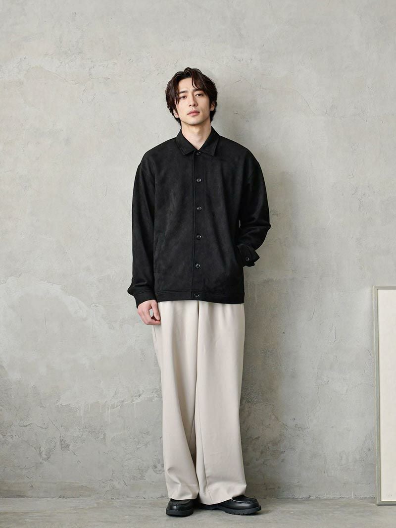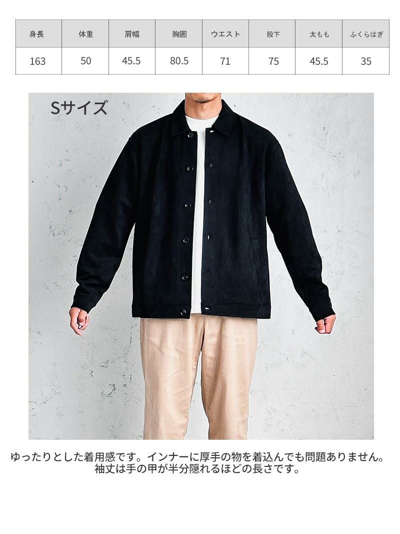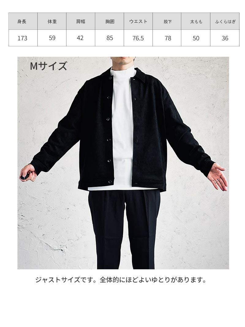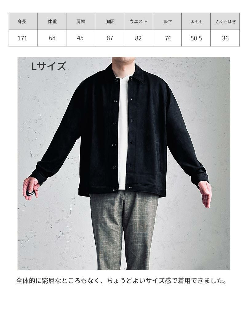 アイテム説明 上品な雰囲気にまとまるシャツジャケット 滑らかなフェイクスエード素材は高級感たっぷりで羽織るだけで大人っぽい印象に。カジュアルからキレイめまで幅広いスタイルに合わせられる上に、手軽に上級者スタイルを演出してくれます。 もっと見る 高級感と実用性 フェイクスウェードは本物のスウェードのような高級感を持ちながら、お手入れが簡単で耐久性に優れています。日常使いにピッタリのライトアウターです。 ストレッチ素材で動きやすさ◎ 伸縮性のある素材のため、細身のシルエットでも柔軟な動きにしっかり対応できます。 フロントの開閉で着こなしの幅が広がる シーンやコーデに合わせてフロントを開け閉めすれば、幅広い着こなしを楽しむことが出来ます。 サイズ・素材 肩幅 身幅 袖丈 着丈 S 48.5 54.5 59 67 M 51 57 60 68.5 L 54 58.5 60.5 71 XL 56 62 62 73 ※表記サイズは実寸であり、個体差により誤差が生じる場合があります。 ※商品によっては洗濯タグにヌード寸法が記載されておりますが、実寸とは異なります。 ※生地の特性上、色移りする場合があります。 ※摩擦により淡い色味のベルトやバック、ソファー等に色移りしますのでご注意ください。 伸縮性 あり ややあり なし 厚み 厚手 普通 薄手 透け感 あり ややあり なし 洗濯 洗濯OK ネット使用 手洗いのみ 表地 ポリエステル95% ポリウレタン5% 裏地 なし 生産国 中国 表示を隠す サイズにお悩みですか? AIに適正サイズを聞く 返品・交換は無料で安心 ご自宅でじっくりご試着いただけます。合わなければ送料負担なく返品できます。あなたにぴったりの一着と出会えるよう、お手伝いいたします。 コーディネート Model : 179㎝/66㎏/ L / ブラック着用 CODE4 ワイドパンツ(セットアップ対応) CHECK チロリアンシューズ CHECK Model : 179㎝/66㎏/ L / ブラック着用 ハイゲージ長袖カットソー CHECK タックワイドデニムパンツ CHECK 2wayマルチトートバッグ CHECK スタッフコーディネート もっと見る