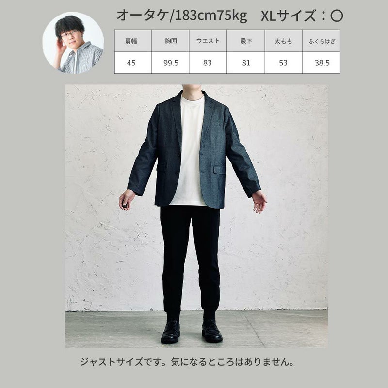 アイテム説明 日常着として馴染みのある「デニム」をテーラードジャケットに落とし込むことで、大人っぽく仕上げました ストレッチ素材で快適な着心地を実現し、オフィスシーンでもオフでも活躍してくれます。 もっと見る 普段着としても馴染むシルエット 左:一般的なフォーマルジャケット/右:当商品 一般のジャケットに比べてゆとりのあるサイズ感に仕上げています。カッチリとしたシルエットとは対照になだらかなラインが特徴で、普段着としてしっかり馴染みます。 光沢感のあるデニム生地を使用し上品な仕上がりに デニム本来のインディゴ染めを使用せず環境にも配慮しました デニム生地に伸縮性を持たせているため、柔軟な動きにもしっかり対応できます 伸縮性のある素材を使ったジャケットなので、動きやすさバツグン。ジャケット特有の堅苦しい印象を払拭します。 使い勝手のいい内ポケット 両側に内ポケットが備え付けられています。 インナーを決めるだけでOK インナーを決めるだけでOK!色合わせとシルエットのポイントを押さえたオシャレな好印象コーデが自動で完成します。 一緒におすすめ テクスチャーサマーニット CHECK ストライプシャツ CHECK クールタッチスムースTシャツ CHECK サイズ・素材 肩幅 身幅 袖丈 着丈 S 44 52 60 69.5 M 45 53.5 61 71 L 46 55.5 61.5 73 XL 47 58.5 62.5 76.5 ※表記サイズは実寸であり、個体差により誤差が生じる場合があります。 ※商品によっては洗濯タグにヌード寸法が記載されておりますが、実寸とは異なります。 伸縮性 あり ややあり なし 厚み 厚手 普通 薄手 透け感 あり ややあり なし 洗濯 洗濯OK ネット使用 手洗いのみ 表地 表地:綿67% ポリエステル30% ポリウレタン3% 裏地 ポリエステル100% 生産国 中国 表示を隠す サイズにお悩みですか? AIに適正サイズを聞く 返品・交換は無料で安心 ご自宅でじっくりご試着いただけます。合わなければ送料負担なく返品できます。あなたにぴったりの一着と出会えるよう、お手伝いいたします。 コーディネート 179㎝66㎏/L/インディゴ着用 ルーズシルエットニット 24年モデル CHECK CODEデニムスラックス 旧型 CHECK Salvatole Marra シンプル腕時計 CHECK オールブラックレザーベルト CHECK 179㎝66㎏/L/インディゴ着用 CODEデニムスラックス 旧型 CHECK Salvatole Marra シンプル腕時計 CHECK オールブラックレザーベルト CHECK 179㎝66㎏/L/ワンウォッシュ着用 Vネック半袖Tシャツ CHECK Salvatole Marra シンプル腕時計 CHECK 179㎝66㎏/L/ワンウォッシュ着用 ストライプシャツ CHECK Salvatole Marra シンプル腕時計 CHECK オールブラックレザーベルト CHECK スタッフコーディネート もっと見る