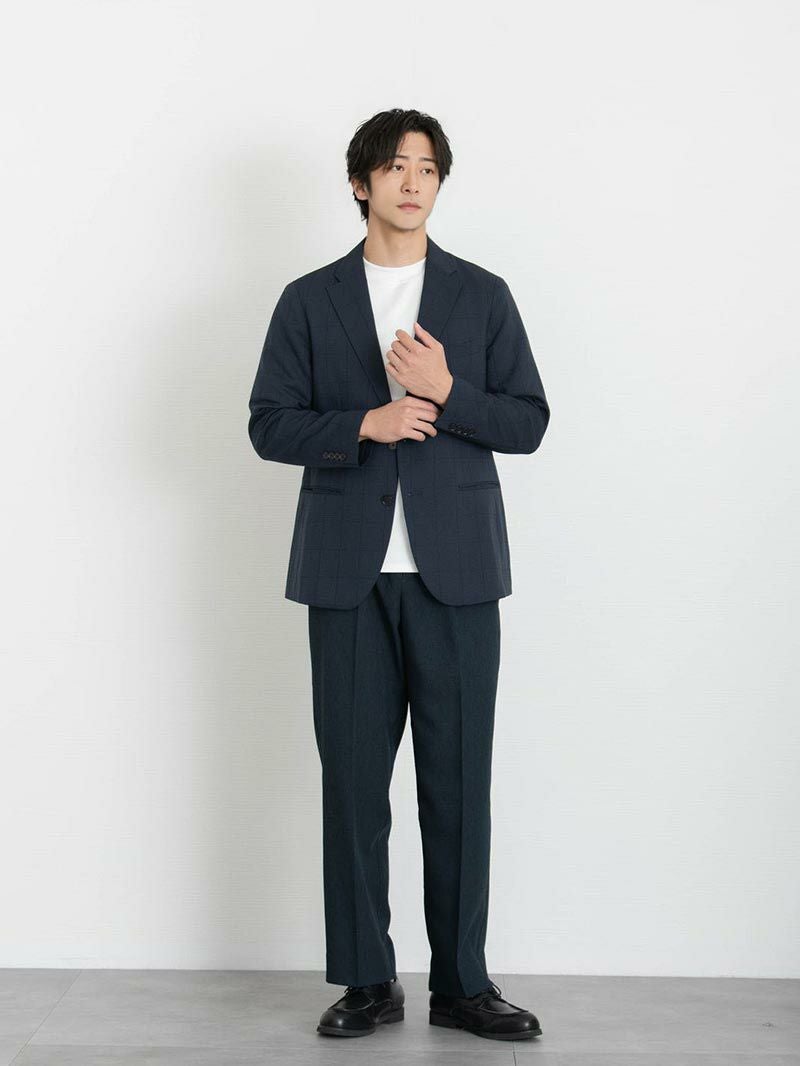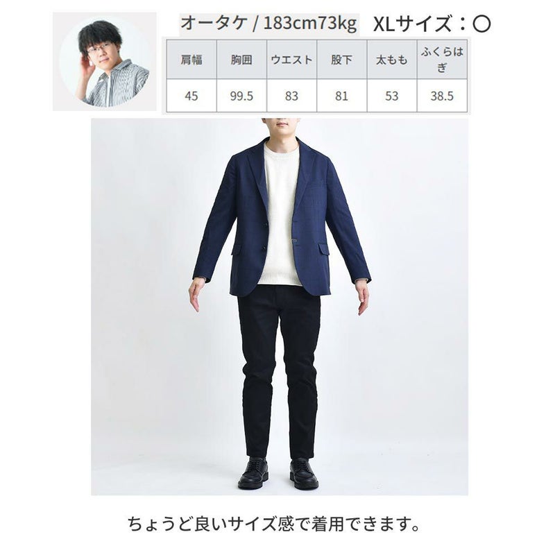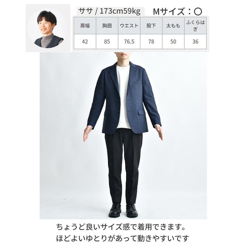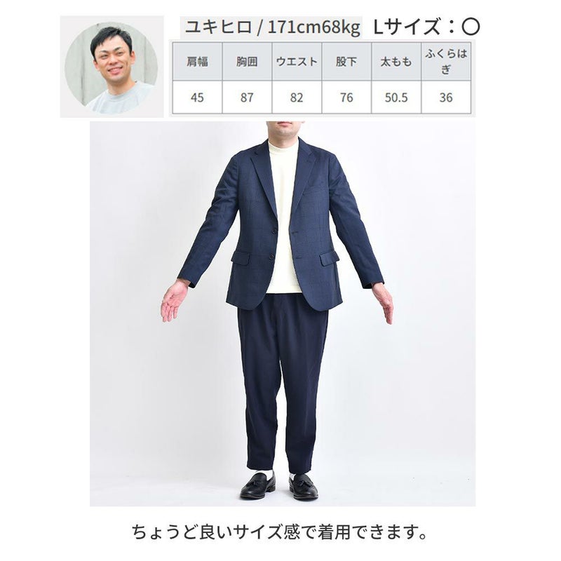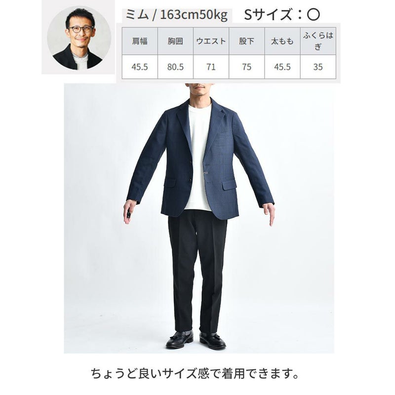 アイテム説明 スーツ専門の老舗メーカーによるパターンと仕立てによる美しいシルエット。CODEシリーズのジャケットよりシェイプさせたウエストはスタイル良く見せてくれます。 もっと見る 細身のパンツスタイルに羽織るだけで紳士的で好印象なジャケパンスタイルが完成します。さりげなく映える同色ウィンドペン柄はオンオフどちらのシーンにみ馴染みます。 背抜きで裏地メッシュなので真冬以外は着用していただけます。 ※仮留めをはずしてご着用ください。 サイズ・素材 肩幅 身幅 袖丈 着丈 S 42 48.5 58.5 68 M 43 51 60 70 L 44 52 61.5 72 XL 45 54 63 74 ※表記サイズは実寸であり、個体差により誤差が生じる場合があります。 ※商品によっては洗濯タグにヌード寸法が記載されておりますが、実寸とは異なります。 伸縮性 あり ややあり なし 厚み 厚手 普通 薄手 透け感 あり ややあり なし 洗濯 洗濯OK ネット使用 手洗いのみ 表地 ポリエステル100% 裏地 ポリエステル100% 生産国 ミャンマー 表示を隠す サイズにお悩みですか? AIに適正サイズを聞く 返品・交換は無料で安心 ご自宅でじっくりご試着いただけます。合わなければ送料負担なく返品できます。あなたにぴったりの一着と出会えるよう、お手伝いいたします。 コーディネート Model : 179㎝/66㎏/ L / ネイビー着用 ジャケット専用ドレスTシャツ CHECK CODEテーパード テック CHECK ナローリアルレザーベルト CHECK Uチップシューズ CHECK Model : 179㎝/66㎏/ L / ネイビー着用 ジャケット専用ドレスTシャツ CHECK CODEストレート サマー CHECK ナローリアルレザーベルト CHECK Uチップシューズ CHECK Model : 179㎝/66㎏/ L / ダークグレー着用 ジャケット専用ドレスTシャツ CHECK CODEテーパード デニム CHECK Uチップシューズ CHECK Salvatole Marra クロノグラフ腕時計 CHECK Model : 179㎝/66㎏/ L / ダークグレー着用 エアドライ バンドカラーシャツ CHECK CODEストレート サマー CHECK ナローリアルレザーベルト CHECK Uチップシューズ CHECK スタッフコーディネート もっと見る