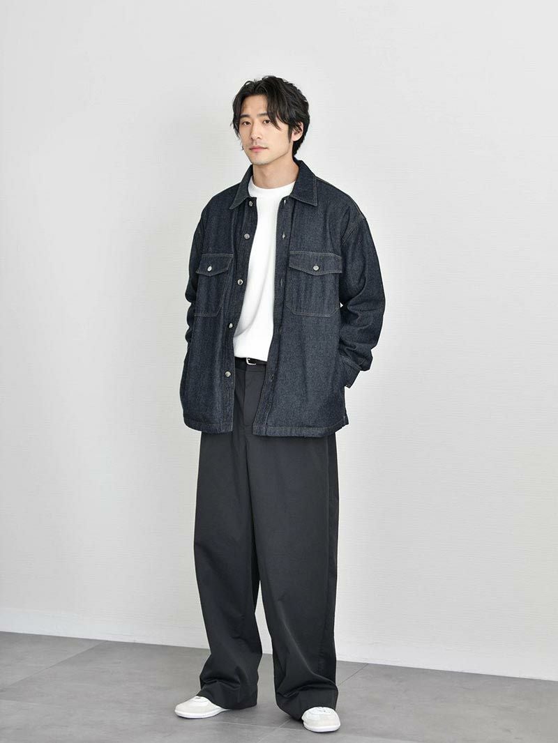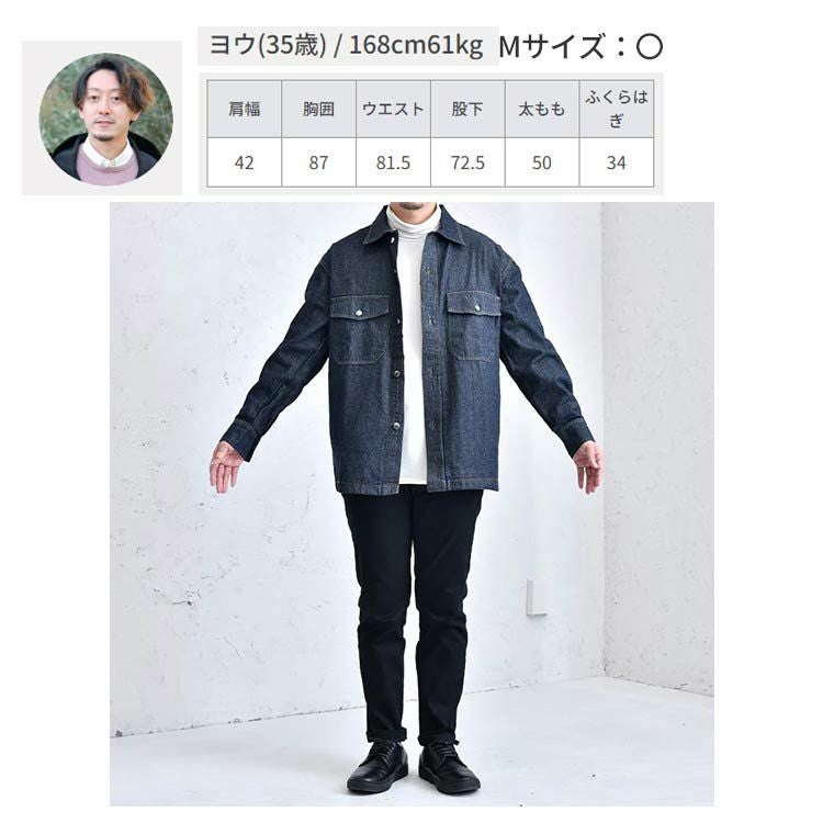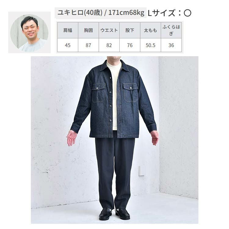 アイテム説明 男性なら1枚は持っておきたいメンズ定番デニムシャツ。着回しに優れているので、コーデに迷ったらこれ着ておけば間違いない1着です。 もっと見る 1枚でも主役級!汎用性高いシャツアウター インナーにもアウターにも使えて着回し力が高い魅力的なアイテムです。 綿100%本格デニム生地 綿100%のしっかりとした生地感のデニム生地を採用しています。 拘り抜いた前立ての美しさ 着用時に形が崩れないようとことん拘りました。ここがヨレヨレだとだらしない印象を与え、大人らしさが半減してしまいます。 優秀な着回し力のデニムアウター ※デニム素材はカラー染めの特性上、着用時に色落ちする場合がございます。 汗や雨で湿った際にも摩擦により色落ちし、他の衣料やバッグなどに色が移ることがありますのでご注意ください。 洗濯時には他の衣類とは分別していただくか、手洗いをおすすめいたします。 一緒におすすめ スウェットライクニット【2025年モデル】 CHECK 比翼仕立てタイプライターシャツ CHECK ポリコットンドレスプルパーカー CHECK サイズ・素材 肩幅 身幅 袖丈 着丈 M 54 59.5 56 71 L 57 62 56.5 73 XL 59.5 65.5 58 74.5 ※表記サイズは実寸であり、個体差により誤差が生じる場合があります。 ※商品によっては洗濯タグにヌード寸法が記載されておりますが、実寸とは異なります。 伸縮性 あり ややあり なし 厚み 厚手 普通 薄手 透け感 あり ややあり なし 洗濯 洗濯OK ネット使用 手洗いのみ 表地 綿85% レーヨン15% 裏地 なし 生産国 中国 表示を隠す サイズにお悩みですか? AIに適正サイズを聞く 返品・交換は無料で安心 ご自宅でじっくりご試着いただけます。合わなければ送料負担なく返品できます。あなたにぴったりの一着と出会えるよう、お手伝いいたします。 コーディネート Model : 179㎝/66㎏/ L / ワンウォッシュ着用 ハイゲージ長袖カットソー CHECK タックワイドパンツ CHECK Model : 179㎝/66㎏/ L / ワンウォッシュ着用 スウェットライクニット【2025年モデル】 CHECK ワイドバルーンパンツ[セットアップ対応] CHECK ナローリアルレザーベルト CHECK コートレザースニーカー CHECK スタッフコーディネート もっと見る