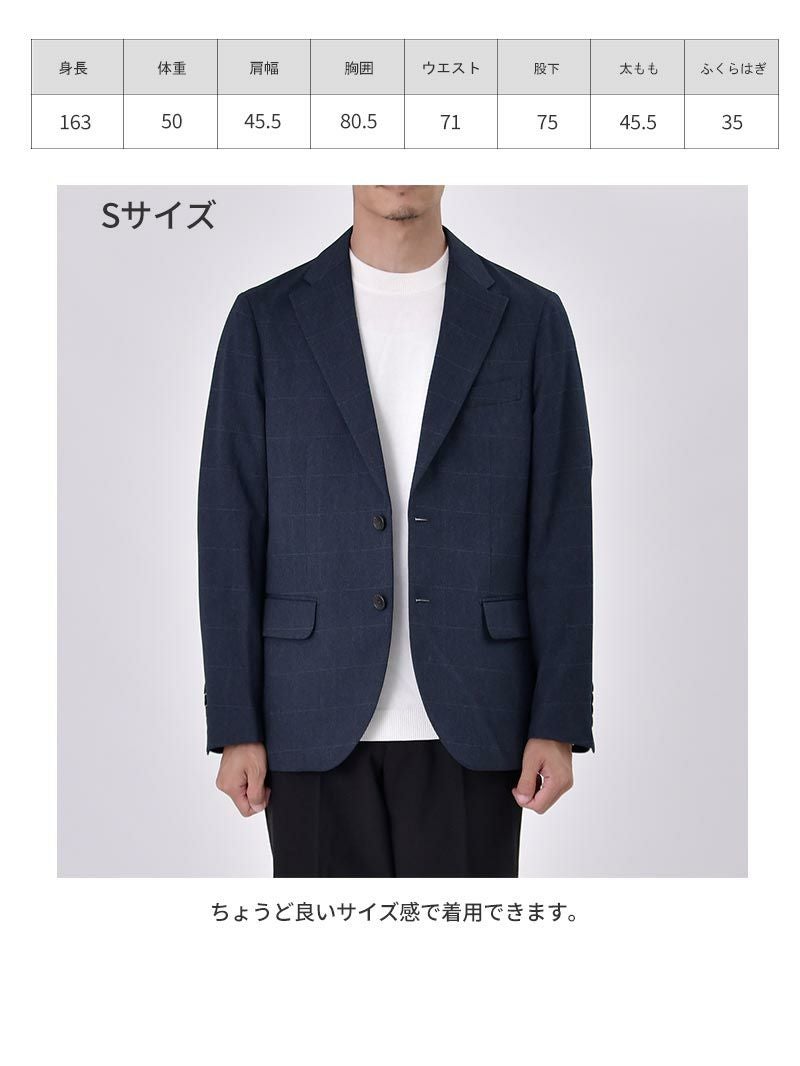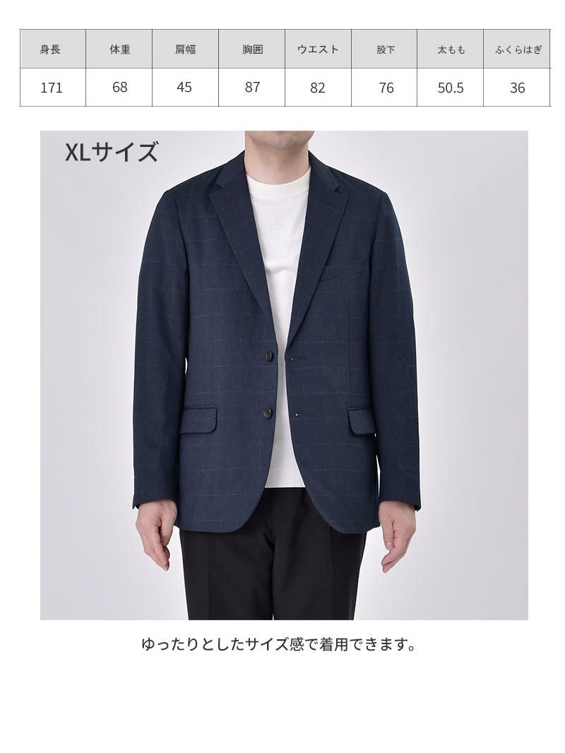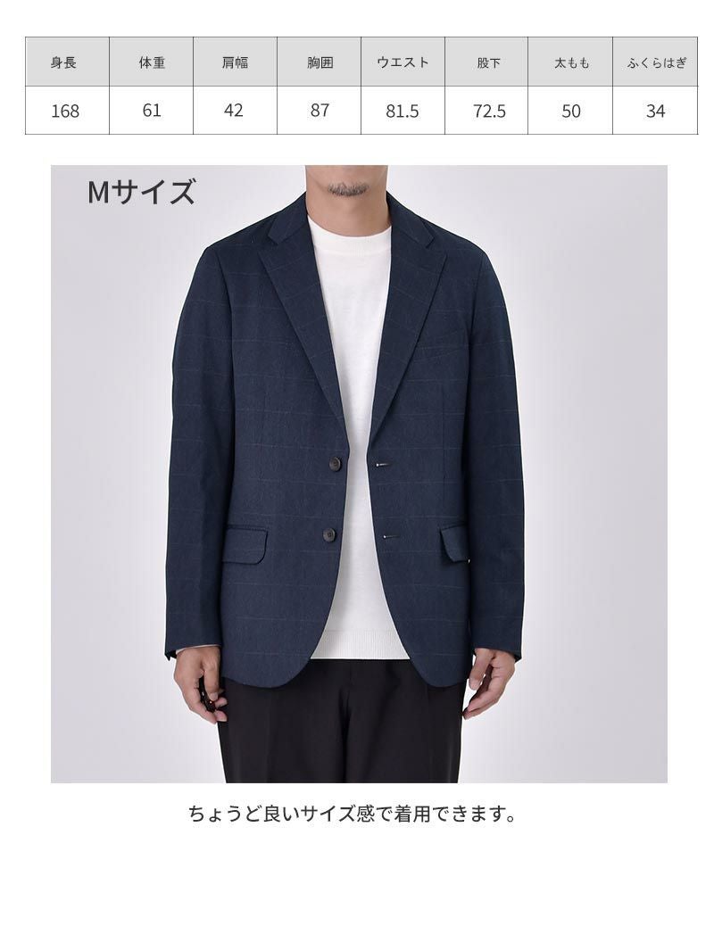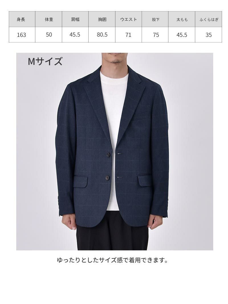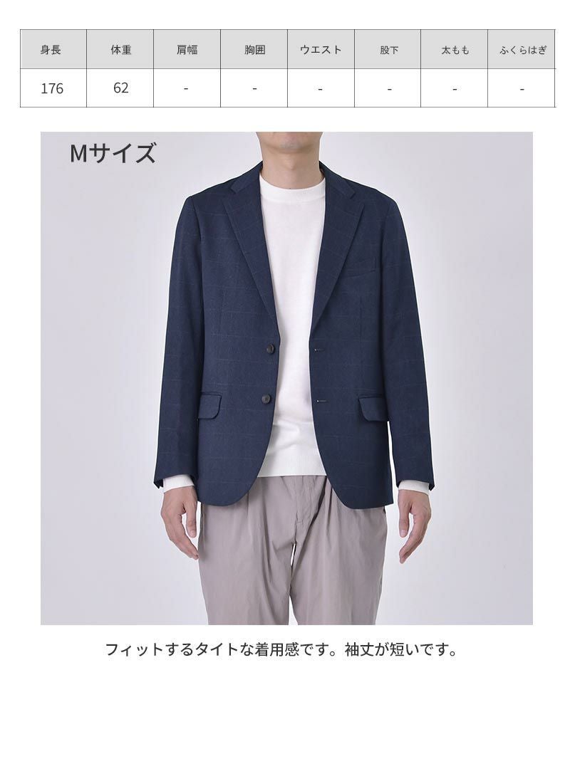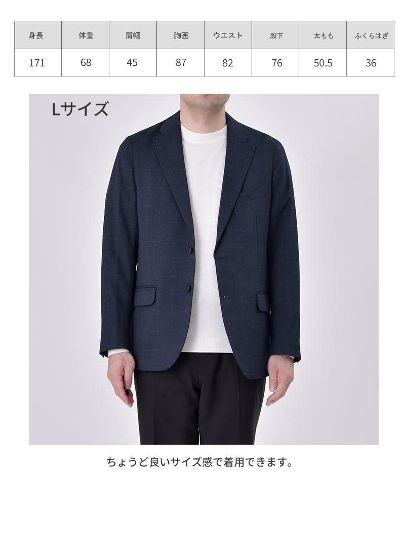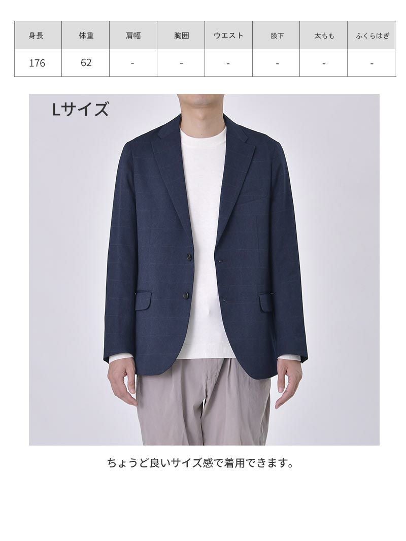 アイテム説明 高精度な縫製と洗練されたデザインが融合。機能性と美しいシルエットを両立させた、ビジネスにもカジュアルにも活躍するテーラードジャケット。 クラシックと現代的なデザイン 左:正面/右:背面 クラシックなテーラードスタイルに現代的ディテールを融合。ビジネスシーンでもカジュアルにも対応できる、洗練された一着。どんなシーンでも自信を持って着こなせます。 もっと見る 美しいフィットと高精度のステッチ 立体裁断技術により、体に美しくフィットするシルエットを実現。高精度のステッチと丁寧な仕上げが、型崩れしにくく長期間美しいシルエットを保ちます。細部にわたる職人技が光る一着です。 ストレッチ素材&防シワ加工 ストレッチ素材と防シワ加工で、忙しい日常や移動時も快適。長時間の着用でもシワになりにくく、美しいシルエットをキープします。 自宅で手軽に洗える 自宅で洗えるマシンウォッシャブル機能を備え、クリーニングに出す手間が省けます。毎日のお手入れも簡単で、忙しい生活に最適な一着です。(ネット使用推奨) トラッドなウィンドペン柄 トレンドを取り入れたウィンドペン柄は、さりげないクラシカルなアクセント。シンプルなコーディネートにも映え、スタイリッシュに着こなせます。 総裏地仕様で上質感を演出 総裏地仕様で快適な着心地と上質感を実現。裏地のステッチにもアクセントを効かせ、見えない部分にもこだわりが詰まった仕上がりです。 サイズ・素材 肩幅 身幅 袖丈 着丈 S 42 45.5 58 68.5 M 43 48 60 70 L 44 49 61.5 73 XL 45 51.5 62.5 75 ※表記サイズは実寸であり、個体差により誤差が生じる場合があります。 ※商品によっては洗濯タグにヌード寸法が記載されておりますが、実寸とは異なります。 伸縮性 あり ややあり なし 厚み 厚手 普通 薄手 透け感 あり ややあり なし 洗濯 洗濯OK ネット使用 手洗いのみ 表地 ポリエステル100% 裏地 ポリエステル100% 生産国 ミャンマー 表示を隠す サイズにお悩みですか? AIに適正サイズを聞く 返品・交換は無料で安心 ご自宅でじっくりご試着いただけます。合わなければ送料負担なく返品できます。あなたにぴったりの一着と出会えるよう、お手伝いいたします。 コーディネート Model : 179cm / 66kg / L / ネイビー着用 ヘビーウェイトクルーネックTシャツ CHECK Uチップシューズ CHECK Model : 179cm / 66kg / L / ネイビー着用 Model : 179cm / 66kg / L / ネイビー着用 ハイゲージシルクニット CHECK オールブラックレザーベルト CHECK Model : 179cm / 66kg / L / ネイビー着用 ハイゲージシルクニット CHECK CODE3 テーパードスラックス CHECK スタッフコーディネート もっと見る