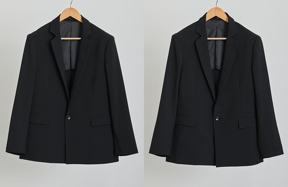 ボックスシルエットと深めの打ち合いが生み出すルーズな印象で、リラックス感と洗練された雰囲気を両立。