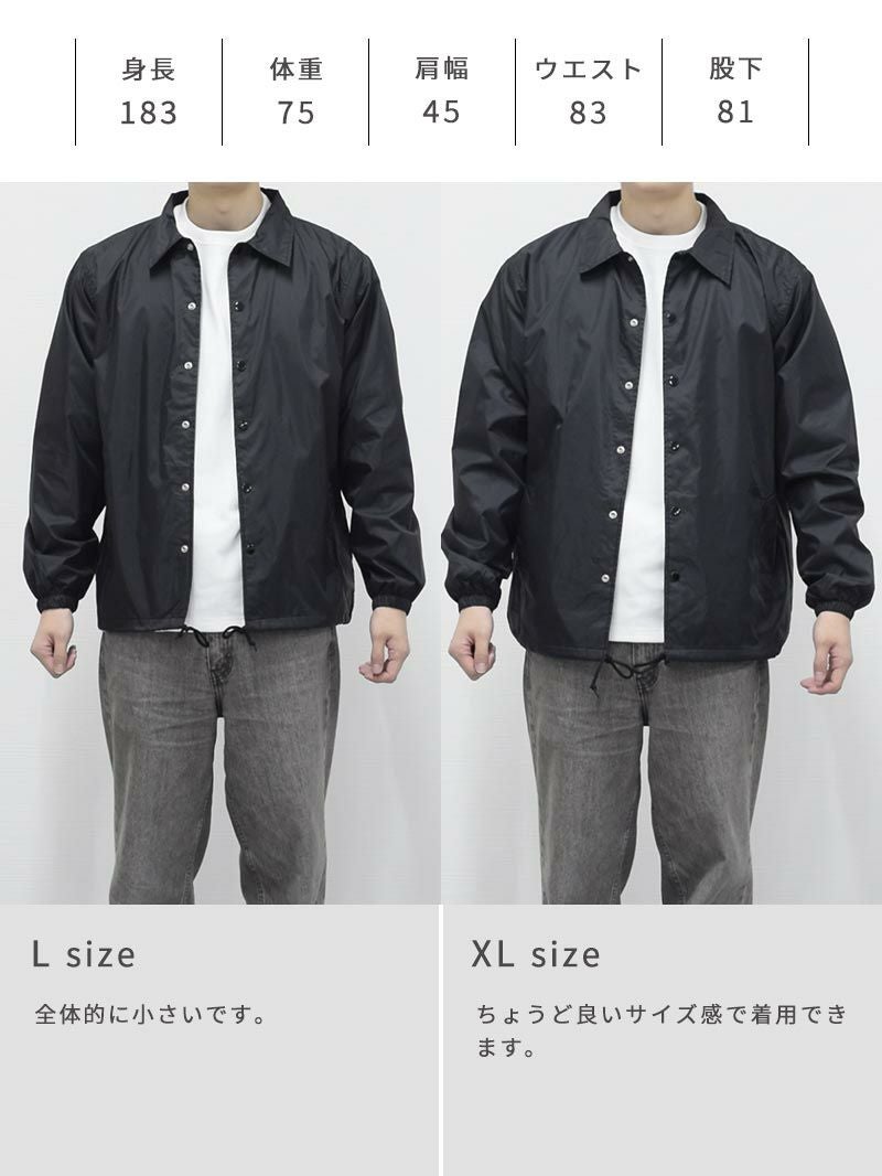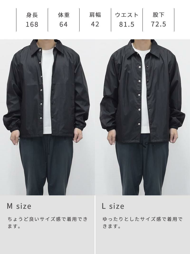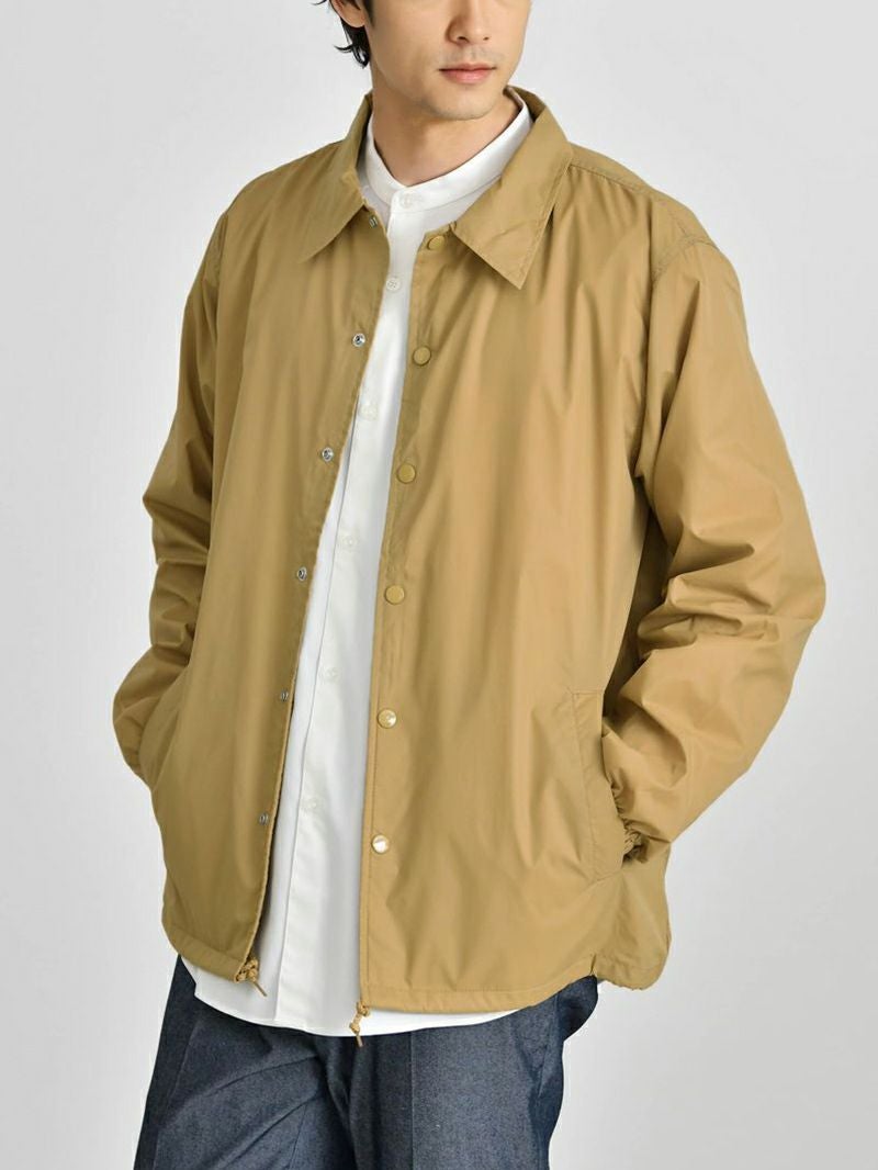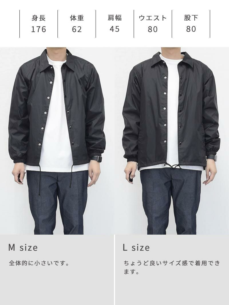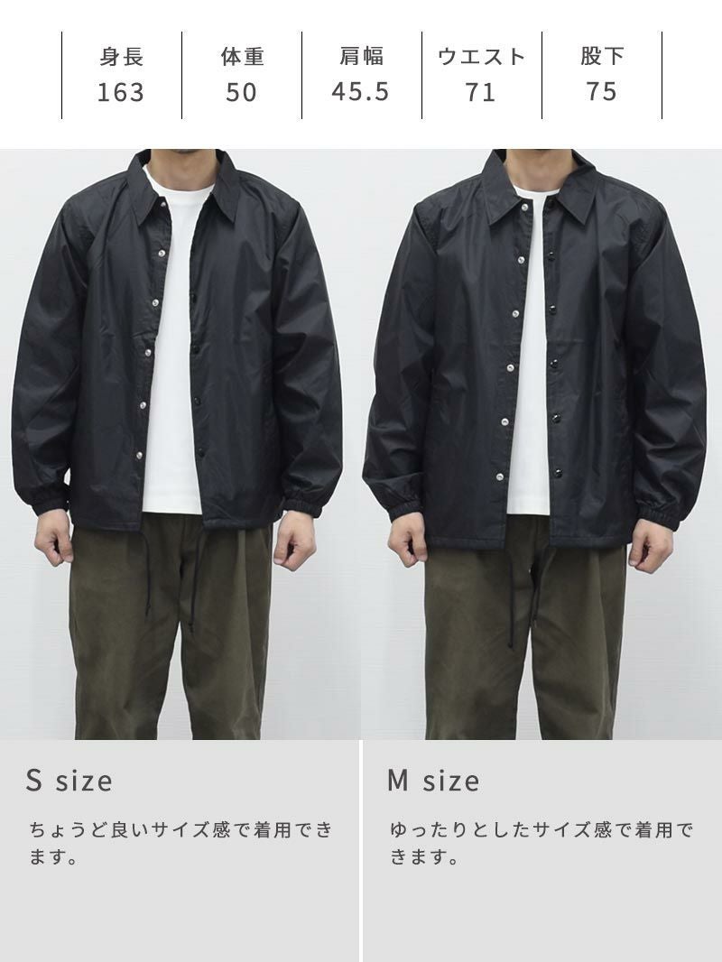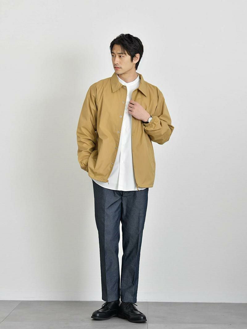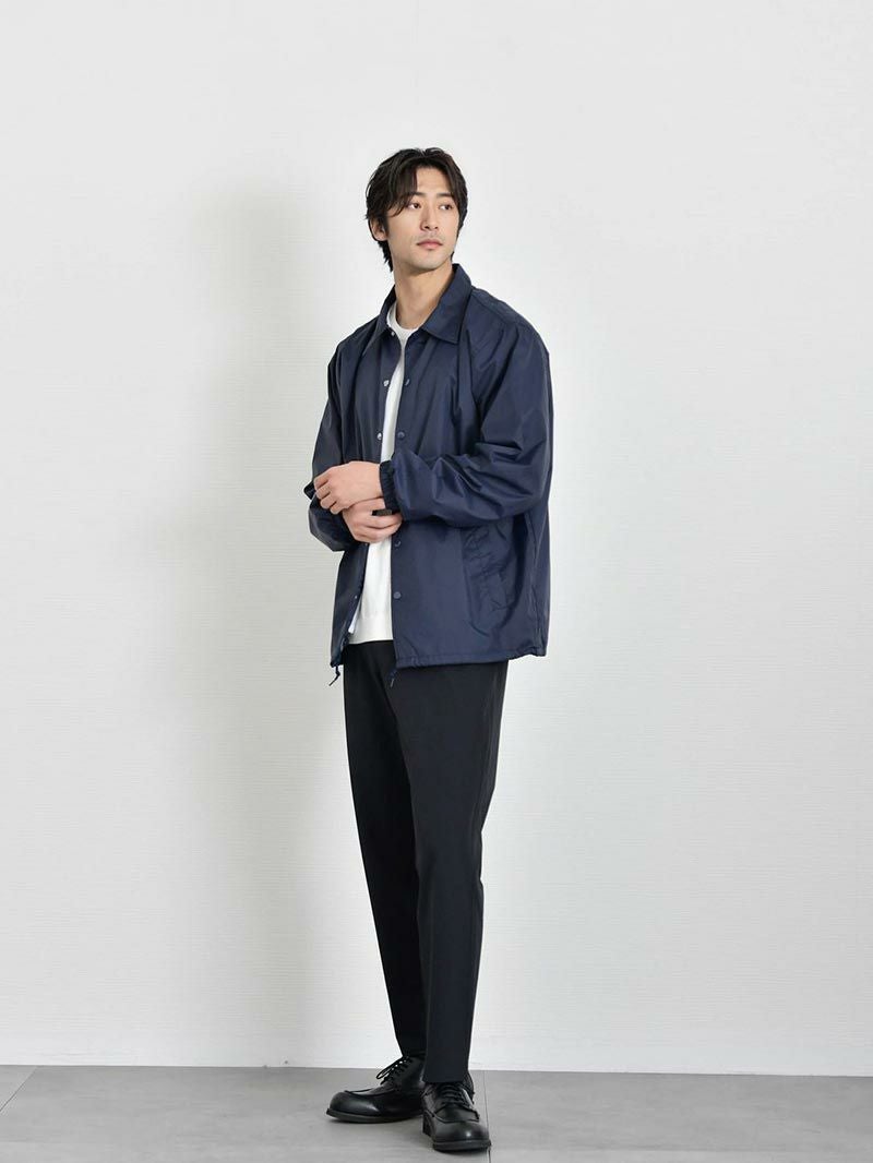 アイテム説明 90年代のストリートシーンを彷彿させるベーシックなコーチジャケット。 細かなギミックが映える定番コーチジャケット ライトアウターの定番として愛されるコーチジャケットに細やかなギミックを加えアップデート。コーディネートにもサッと外出するにも使い勝手のいいところが魅力的で1着は持っておきたいアウターです。 もっと見る 機能的なナイロン素材 フッ素系撥水加工が施されており急な雨風にも対応できるだけでなく、耐寒性にも優れているのでアウターには嬉しい機能が備わっています。 きちんと感のある襟 立体的できれいなラインを実現するためにアウターでは珍しい台襟仕様。襟の立上りから違和感なくきれいに見えるので顔回りがスッキリして見られます。 細かなこだわりデザイン 風の侵入や裾のバタつきを防ぐことのできるドローコード仕様。着こなしの幅もひろがります。 ドットボタンは金属製のアメリカンタイプを採用。丸い円形の金属バネ機構により、ワンタッチで脱着がしやすく、簡単に取れたり割れたりしません。 裏地にはトリコット起毛のライナー付き。肌触りがよく保温性、通気性に長けた上質な裏地です。 サイズ・素材 肩幅 身幅 袖丈 着丈 S 44.5 51.5 59 65.5 M 47 55 61.5 68 L 50 59.5 63.5 71.5 XL 53 62 65 74.5 ※表記サイズは実寸であり、個体差により誤差が生じる場合があります。 ※商品によっては洗濯タグにヌード寸法が記載されておりますが、実寸とは異なります。 伸縮性 あり ややあり なし 厚み 厚手 普通 薄手 透け感 あり ややあり なし 洗濯 洗濯OK ネット使用 手洗いのみ 表地 ナイロン100% 裏地 ポリエステル100%(飾り部分は除く) 生産国 中国 表示を隠す スタッフ試着レビュー サイズにお悩みですか? LINEでサイズ相談する 返品・交換は無料で安心 ご自宅でじっくりご試着いただけます。合わなければ送料負担なく返品できます。あなたにぴったりの一着と出会えるよう、お手伝いいたします。 コーディネート Model : 179㎝/66㎏/ L / ブラック(002)着用 長袖リラックスシルエットTシャツ CHECK テックワイドパンツ[セットアップ対応] CHECK Model : 179㎝/66㎏/ L / ブラック(002)着用 長袖レギュラーシルエットTシャツ CHECK CODEワイド CHECK Model : 179㎝/66㎏/ L / コヨーテ(483)着用 長袖レギュラーシルエットTシャツ CHECK タックワイドデニムパンツ CHECK チロリアンシューズ CHECK Model : 179㎝/66㎏/ L / コヨーテ(483)着用 リラックスシルエットバンドカラーシャツ CHECK CODEテーパード デニム CHECK Uチップシューズ CHECK Salvatole Marra シンプル腕時計 CHECK Model : 179㎝/66㎏/ L / ネイビー(086)着用 ストレッチレイヤードタンクトップ CHECK リブ付き長袖スムースTシャツ CHECK CODEテーパード CHECK Uチップシューズ CHECK Model : 179㎝/66㎏/ L / ネイビー(086)着用 ルーズシルエットニット CHECK CODEテーパード テック CHECK Uチップシューズ CHECK スタッフコーディネート もっと見る