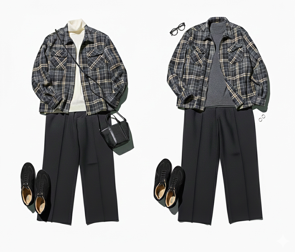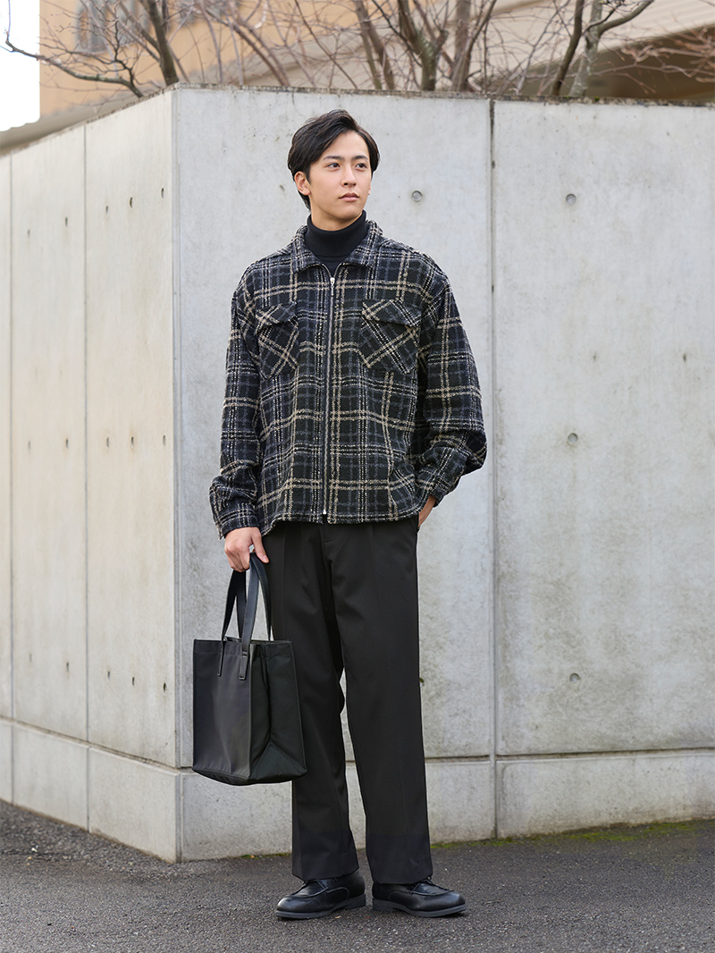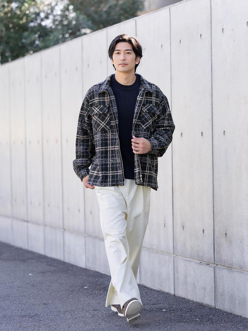 アイテム説明 大人でも挑戦できる柄アウターツイードチェックジャケット ツイードチェックジャケットの おすすめポイント 01. "大人の配色"がポイント合わせやすいチェック柄 大人っぽい配色バランスで仕上げたチェック柄。 派手すぎず落ち着いた印象で、さまざまなアイテムと相性よく合わせられます。 「気づけば無地ばかり…」を脱却したい人におすすめ。 02.季節感たっぷり軽さも魅力的なツイード生地 冬らしいツイード生地ながら、重さやゴワつきは控えめ。編み目に程よい抜け感があり、軽やかに羽織れます。 外出時はもちろん、室内でも気軽に着られる快適な軽さです。 おすすめの着こなしテクニック 合わせるなら無地インナーが正解 大きめチェック柄がコーデに存在感をプラス。 無地のニットやロンTとパンツを合わせるだけで、ほどよくラフで、こなれ感のあるオシャレな着こなしが簡単に完成します。 インナーにおすすめの無地アイテム ハイゲージシルクニット CHECK ハイゲージシルクタートルニット CHECK ハイゲージ長袖カットソー CHECK サイズ・素材 肩幅 身幅 袖丈 着丈 M 49.5 62 61.5 68 L 51.5 63.5 62 70 XL 53 65.5 63 72 ※表記サイズは実寸であり、個体差により誤差が生じる場合があります。 ※商品によっては洗濯タグにヌード寸法が記載されておりますが、実寸とは異なります。 伸縮性 あり ややあり なし 厚み 厚手 普通 薄手 透け感 あり ややあり なし 洗濯 洗濯OK ネット使用 手洗いのみ 表地 ポリエステル91%アクリル3%毛3%ナイロン1%レーヨン1%綿1% 裏地 なし 生産国 中国 禁止事項 乾燥機使用×日向干し×漂白剤使用×アイロン使用× 表示を隠す サイズにお悩みですか? AIに適正サイズを聞く 返品・交換は無料で安心 ご自宅でじっくりご試着いただけます。合わなければ送料負担なく返品できます。あなたにぴったりの一着と出会えるよう、お手伝いいたします。 コーディネート Model : 179㎝ / 66㎏ / XL / ブラック着用 頼れる主役級チェックジャケット 大柄チェックは存在感があり、一枚でお洒落が決まります。 ボトムスは程よくゆとりのある黒のストレートパンツを合わせれば、簡単に大人っぽく、今っぽさも取り入れられる着こなしに仕上がります。 ハイゲージシルクタートルニット CHECK CODEストレート ウィンター CHECK Uチップシューズ CHECK オールブラックキャンバスミニバック CHECK Model : 179㎝ / 66㎏ / XL / ブラック着用 ざっくり羽織るチェックジャケット ラフなチェック柄が程よい存在感を出すツイードジャケットは、羽織るだけでこなれた印象に。 白インナーと細身パンツで引き締めると、カジュアルすぎずバランスよく着こなせます。 ハイゲージシルクタートルニット CHECK CODEテーパード ウィンター CHECK リバーシブルレザーベルト CHECK スマートスニーカー CHECK Model : 179㎝ / 66㎏ / XL / ブラック着用 力を抜いた雰囲気で楽しむ休日コーデ リラックス感のあるパンツを合わせることで、気負わずに楽しめるスタイルに。 控えめなチェック柄が柔らかな雰囲気になじみ、自然体で過ごせる大人の休日コーデです。 ハイゲージシルクニット CHECK ワイドチノパンツ CHECK スタッフコーディネート もっと見る
