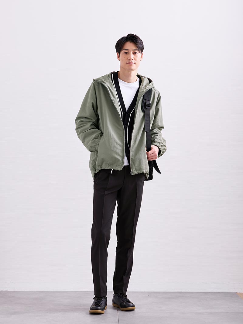 アイテム説明 さっと羽織って軽快にこの春イチオシのマウンテンパーカー タウンユースマウンテンパーカーの おすすめポイント 01. スポーティなのにキレイ見えするデザイン マウンテンパーカー特有のスポーティ感にキレイめ要素をプラス。無駄のない洗練されたデザインに。 ジップを締めるとスタンドカラー仕様に切り替わり、大人っぽくカッコいい印象に仕上がります。 02. 気候の変化に対応できる機能性の高さもうれしいポイント 撥水・防風・軽量を叶える機能性の高い生地を採用。 また、無地でトレンド感のあるワッシャー仕様なので、自然なシワ感によって座りジワや畳みシワが目立ちにくいことも特長です。 03. 装飾は最低限にシンプルさがカッコいい シンプルなデザインでありながら、マウンテンパーカーの利便性は忘れない。 ドローコードでシルエットの変化を楽しめる仕様に。また、ジップ付きポケットなので、物が落ちる心配もありません。 サイズ・素材 身幅 裄丈 着丈 S 54 82 72 M 56 85 74 L 59 87 77 XL 62 89 80 ※表記サイズは実寸であり、個体差により誤差が生じる場合があります。 ※商品によっては洗濯タグにヌード寸法が記載されておりますが、実寸とは異なります。 伸縮性 あり ややあり なし 厚み 厚手 普通 薄手 透け感 あり ややあり なし 洗濯 洗濯OK ネット使用 手洗いのみ 表地 ナイロン100% 裏地 ポリエステル100% 生産国 中国 禁止事項 乾燥機使用×日向干し×漂白剤使用× 表示を隠す サイズにお悩みですか? AIに適正サイズを聞く 返品・交換は無料で安心 ご自宅でじっくりご試着いただけます。合わなければ送料負担なく返品できます。あなたにぴったりの一着と出会えるよう、お手伝いいたします。 コーディネート Model : 182㎝ / 70㎏ / XL / ブラック着用 洗練された大人デートに効くシックカラー 大人っぽく見せたい落ち着いたデートやお出かけには、無駄を削ぎ落としたブラック×ホワイトコーデが効果的。 柔らかなシャツと軽やかなアウターで、素材感に差をつけると都会的な雰囲気にまとまります。 バンドカラーシャツ CHECK CODEロングスリーブTシャツ CHECK ブラックスリムパンツ CHECK スマートスニーカー CHECK Model : 183㎝ / 64㎏ / XL / ブラック着用 優秀アウターでこなれて見せて差をつける 休日のリラックススタイルには、着心地の良いアウターが欠かせません。 安心感のあるシックな色味のコーデに軽やかな素材感をプラスすると、春先の街にも馴染みます。 スポーツ観戦デートなどにもおすすめです。 リラクシーデニムシャツ CHECK CODEイージーパンツ CHECK ナローメッシュベルト CHECK Model : 182㎝ / 70㎏ / XL / ネイビー着用 スポーティなネイビートーンで好印象に スポーツ観戦など、屋外での気温変化のある日のお出かけにおすすめしたい着こなし。 着脱しやすく、世代も選ばない強い味方が一枚あれば、デニム×Tシャツの王道スタイルでも季節を問わず着こなすことが可能です。 スウェットライクニット CHECK ストレートジーンズ CHECK リップストップショルダーバッグ CHECK スマートスニーカー CHECK Model : 183㎝ / 64㎏ / XL / ネイビー着用 肌寒い日にさらりと合わせるのも◎ 冬から春へ季節の変わり目に活躍するのがこちらのアウター。 トーンを合わせた着こなしに、靴やバッグまで軽快さを意識したまとまりのあるコーデで、カジュアル通勤の洗練を狙いましょう。 CODEジャケット CHECK CODEロングスリーブTシャツ CHECK CODEイージーパンツ CHECK オールブラックキャンバスリュックサック CHECK Model : 183㎝ / 64㎏ / XL / スモークオリーブ着用 モノトーン好きさんにおすすめの抜け感 ”オールブラックのコーデになりがち”というお悩みは、スモーキーなオリーブカラーが解決してくれます。 休日の男友達とのお出かけや、ウインドウショッピングなど、一歩洗練させたい時に効くコーデです。 スウェットライクニット CHECK CODEテーパード ウールブレンド 通年用 CHECK Healthknit 3足セット CHECK スマートスニーカー CHECK Model : 183㎝ / 64㎏ / XL / スモークオリーブ着用 万能色を効かせたカジュアル通勤 一日オフィスで過ごすカジュアル通勤の日には、垢抜けて見せてくれるオリーブ色がオススメ。 インナーを定番のブラックのワントーンでまとめておけば、一見難しそうなオリーブも難なく着こなせます。 ダブルジャガードハイゲージカーディガン CHECK CODEロングスリーブTシャツ CHECK CODEイージーパンツ CHECK メッセンジャーバッグ CHECK スタッフコーディネート もっと見る