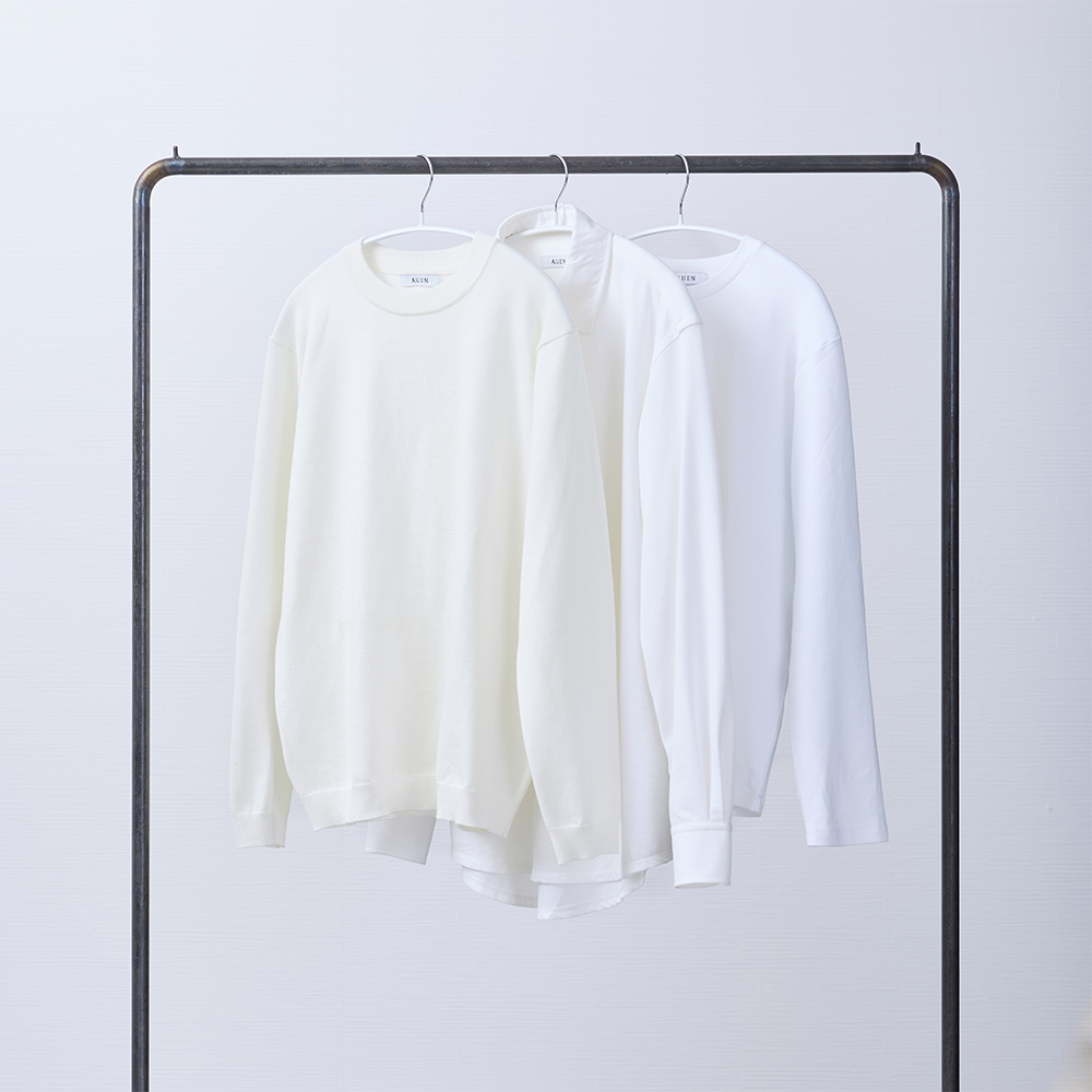 ニット・シャツ・ロンTと、印象が被らない3種類を揃えました。