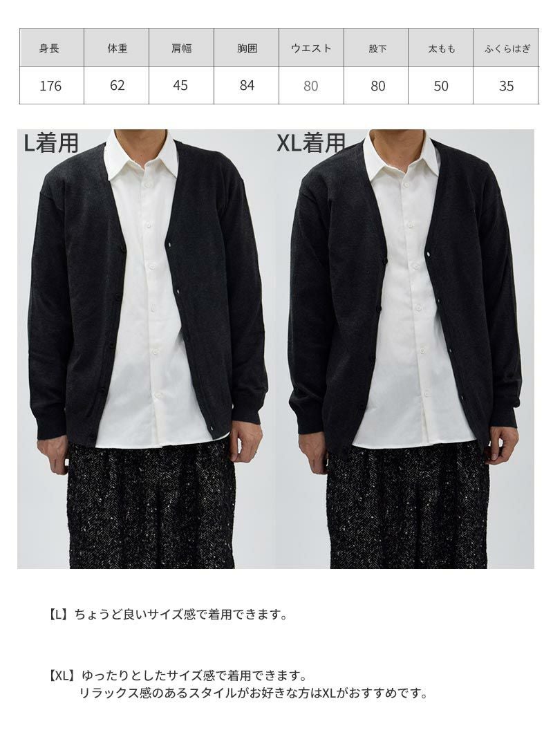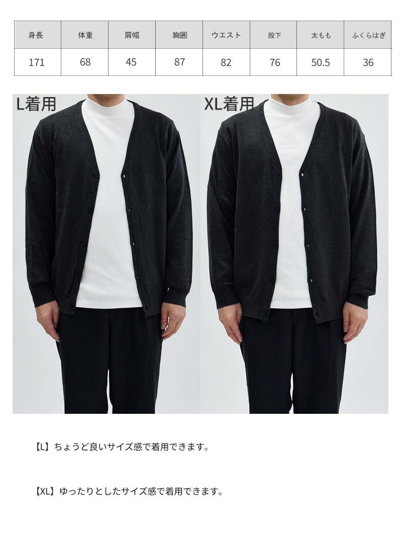 アイテム説明 上品な仕上がりのハイゲージニット 編み目が細かいハイゲージ編みはスッキリとした印象を与え、キレイめコーデにワンランク上の清潔感を加えることができます。 もっと見る ジャケットのインナーとして好相性 ジャケットの下に着込めるよう、細身のシルエットに仕上げています。 インナーにはキレイめなカットソーとシャツがオススメ カットソーを合わせるとカーディガンを主役にシャツを合わせると清潔感をプラスする事ができます。 クリーニングの手間をかけず、自宅の洗濯機で洗濯可能。気軽に日常使いできます。 サイズ・素材 肩幅 身幅 袖丈 着丈 S 42 50 55 64 M 44.5 51 57 66 L 47.5 54 58 68 XL 49.5 55.5 60 70 ※表記サイズは実寸であり、個体差により誤差が生じる場合があります。 ※商品によっては洗濯タグにヌード寸法が記載されておりますが、実寸とは異なります。 伸縮性 あり ややあり なし 厚み 厚手 普通 薄手 透け感 あり ややあり なし 洗濯 洗濯OK ネット使用 手洗いのみ 表地 ポリエステル65% / アクリル16% / ナイロン15% / 毛4% 裏地 なし 生産国 中国 表示を隠す サイズにお悩みですか? AIに適正サイズを聞く 返品・交換は無料で安心 ご自宅でじっくりご試着いただけます。合わなければ送料負担なく返品できます。あなたにぴったりの一着と出会えるよう、お手伝いいたします。 コーディネート Model : 179㎝/66㎏/ XL / グレー着用 スウェットライクニット【2025年モデル】 CHECK CODEテーパード CHECK Uチップシューズ CHECK Model : 179㎝/66㎏/ XL / グレー着用 リラックスシルエットストライプシャツ CHECK ストレートデニム CHECK ナローメッシュベルト CHECK Uチップシューズ CHECK Model : 179㎝/66㎏/ L / グレー着用 レギュラーカラーシャツ CHECK CODEテーパード CHECK ナローリアルレザーベルト CHECK 2wayマルチトートバッグ CHECK スタッフコーディネート もっと見る