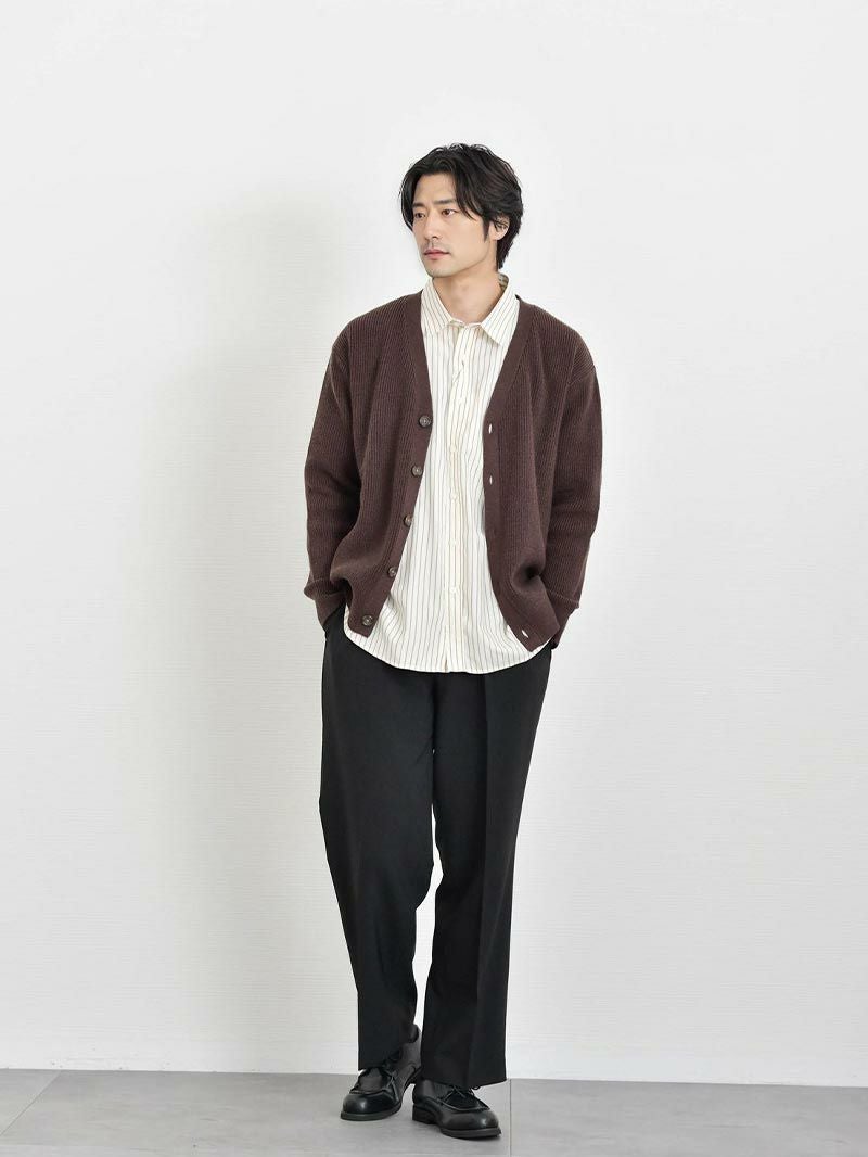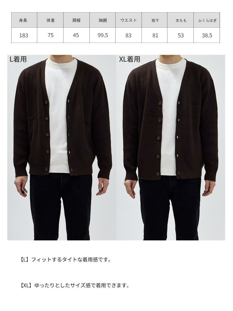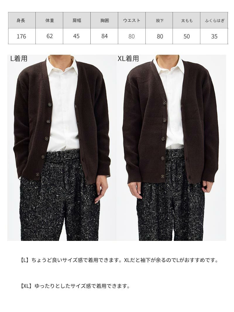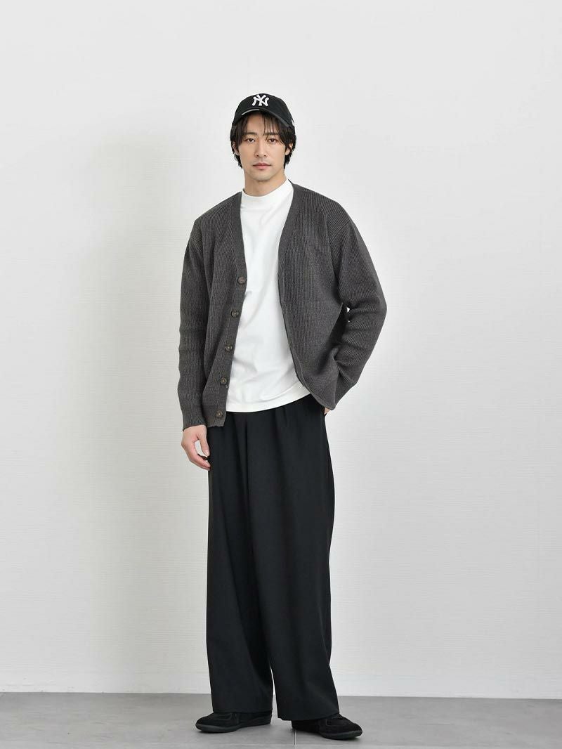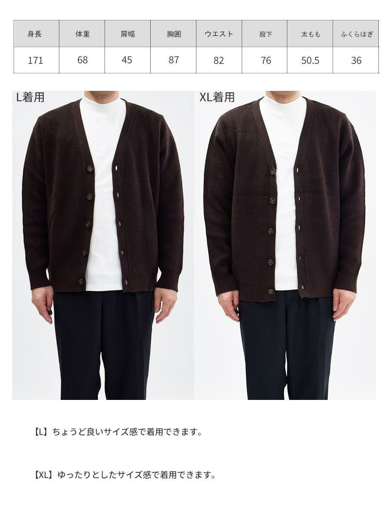 アイテム説明 厚みのある畦編みが体型をカバーしながら、シャープなシルエットを実現。オフィスカジュアルにも、普段使いにも万能な一着。 厚手の畦編みならではのしっかりとした素材感が、体型をスマートにカバー。シャツやTシャツとのレイヤードで、どんなシーンでも自信を持って着こなせます。 もっと見る 表面感のある畔編み タテに畝のある畔編みは表面感も魅力の一つ。単調にならず、奥行きのあるコーデに仕上がります。 スリムに見せるデザイン 厚みがありながらも、計算されたシルエット設計でスリムな印象を演出。体型に自信がない方でも、安心して着こなせるデザインです。 秋から春まで活躍 程よい厚みの生地感で、秋から春にかけてのロングシーズンで大活躍。ジャケットやアウターの下にレイヤードしても快適な着心地をキープします。 サイズ・素材 肩幅 身幅 袖丈 着丈 S 44.5 55 55 62 M 46.5 56.5 56.5 64 L 48 59.5 57.5 67 XL 50.5 62.5 58 69 ※表記サイズは実寸であり、個体差により誤差が生じる場合があります。 ※商品によっては洗濯タグにヌード寸法が記載されておりますが、実寸とは異なります。 伸縮性 あり ややあり なし 厚み 厚手 普通 薄手 透け感 あり ややあり なし 洗濯 洗濯OK ネット使用 手洗いのみ 表地 アクリル52% ポリエステル31% ナイロン17% 裏地 なし 生産国 中国 表示を隠す サイズにお悩みですか? AIに適正サイズを聞く 返品・交換は無料で安心 ご自宅でじっくりご試着いただけます。合わなければ送料負担なく返品できます。あなたにぴったりの一着と出会えるよう、お手伝いいたします。 コーディネート Model : 179㎝/66㎏/L / コーヒー着用 ハイゲージ長袖カットソー CHECK CODEテーパード CHECK スウェードレザースニーカー CHECK HARUSAKU 奈良産 プレーンリブソックス CHECK Model : 179㎝/66㎏/L / コーヒー着用 リラックスシルエットストライプシャツ CHECK CODEセミワイドパンツ ルーズ CHECK Uチップシューズ CHECK ナローリアルレザーベルト CHECK Model : 179㎝/66㎏/L / セージグリーン着用 ハイゲージシルクニット CHECK CODEテーパード CHECK HARUSAKU 奈良産 プレーンリブソックス CHECK Model : 179㎝/66㎏/L / セージグリーン着用 洗いざらしビンテージテイストシャツ CHECK タックワイドパンツ CHECK ナローリアルレザーベルト CHECK Model : 179㎝/66㎏/L / ダークグレー着用 ハイゲージ長袖カットソー CHECK CODEワイド CHECK NEW ERA 920 キャップ CHECK Model : 179㎝/66㎏/L / ダークグレー着用 ハイゲージシルクニット CHECK タックワイドパンツ CHECK HARUSAKU 奈良産 プレーンリブソックス CHECK スタッフコーディネート もっと見る