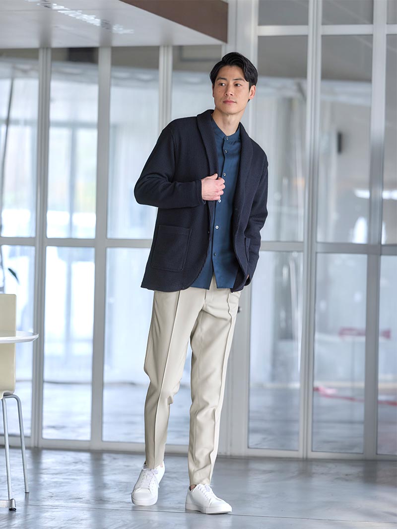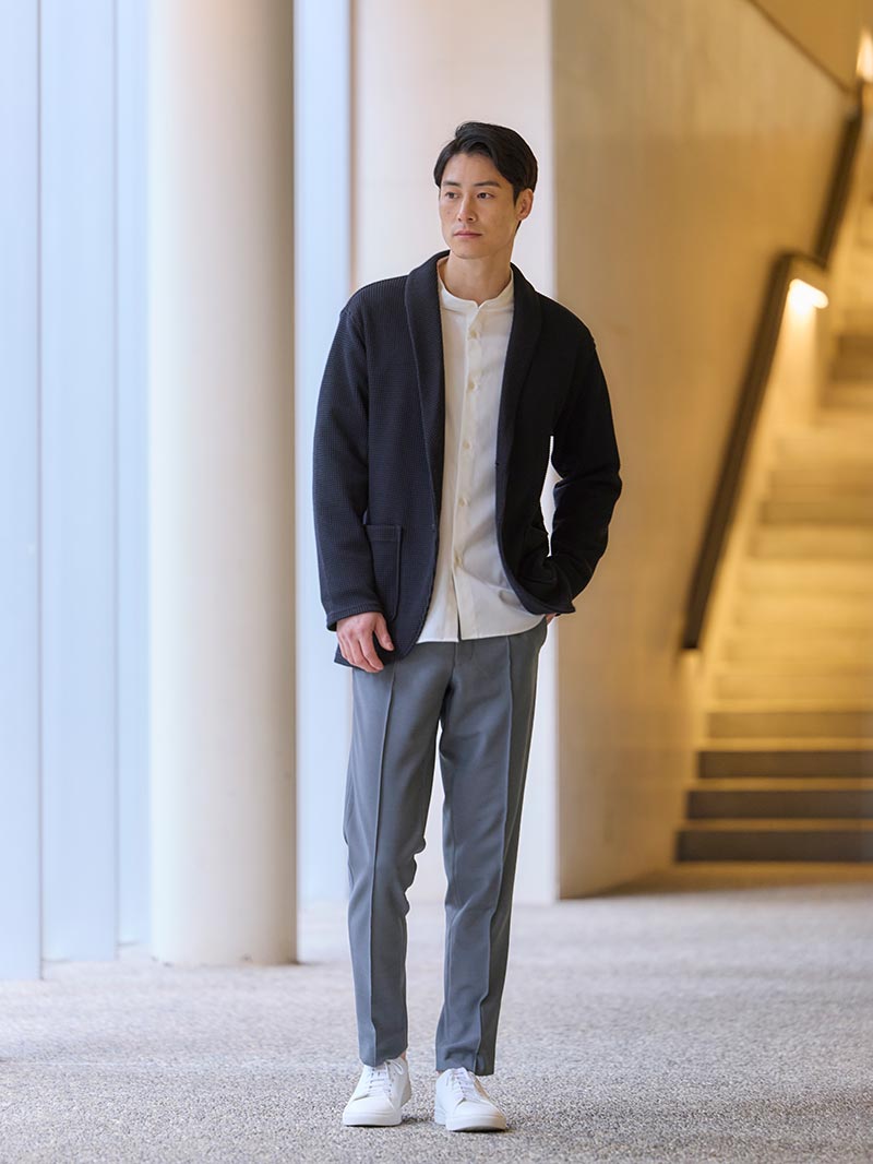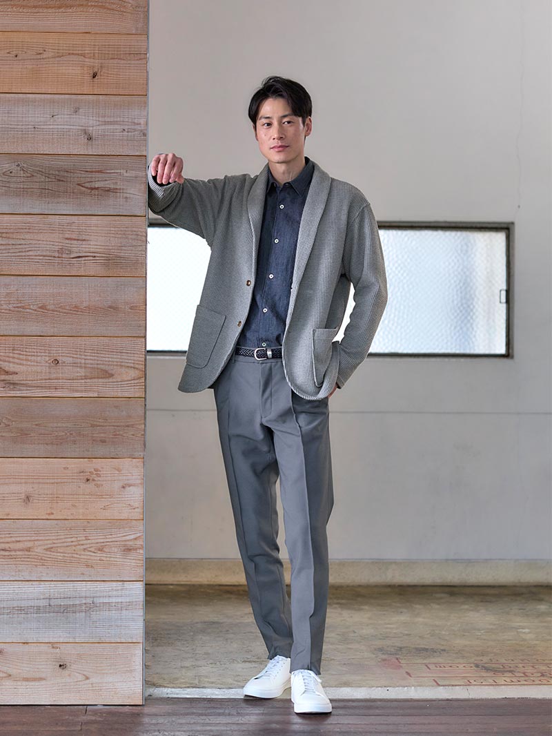 アイテム説明 ジャケット見えする”きちんと感”でオンオフ使いやすいカーディガン ワッフルショールカーディガンの おすすめポイント 01. オンオフで着られるスマートさ カジュアルなジャケット感覚で着られる”きちんと感”が魅力。 窮屈感なくスマートに着こなせて、トップスにさっと羽織るだけでオフィススタイルが完成。 もちろん休日にも活躍する使いやすさです。 02. ロングシーズン快適な着心地 ニットならではの伸縮性と、通気性に優れたワッフル編みで快適な着心地を実現。 程よい温度調節ができるため、春のはじまりから晩秋まで長いシーズン活躍する、季節の変わり目に頼れる一枚です。 ※ブランド名変更のため、一部商品タグには旧ブランド名が記載されております。品質やデザインに変更はございませんので、ご安心ください。 03. シワになりにくい柔らか素材 柔らかな生地はシワになりにくく、手に持ったりリュックに入れても型崩れの心配なし。 急な温度調整が必要な場面にも重宝します。 04. 便利なポケット付きでちょっとした外出に使いやすい お客様の声にお応えして、ポケット付きデザインにリニューアル。 アウターとしての機能性がさらにアップし、ちょっとしたお出かけやオフィスでより活躍します。 よりカジュアルに使うなら同素材のこちらがおすすめ 休日スタイルやリラックスシーンには、同じワッフル素材のこちらが最適。オフィス用のショールカラーと使い分ければ、シーンに合わせた着こなしが楽しめます。 ワッフルカーディガン CHECK サイズ・素材 肩幅 身幅 袖丈 着丈 S 45 52 54.5 69 M 47 53.5 55.5 71 L 48 55.5 56.5 73 XL 52 58 58 75.5 ※表記サイズは実寸であり、個体差により誤差が生じる場合があります。 ※商品によっては洗濯タグにヌード寸法が記載されておりますが、実寸とは異なります。 伸縮性 あり ややあり なし 厚み 厚手 普通 薄手 透け感 あり ややあり なし 洗濯 洗濯OK ネット使用 手洗いのみ 表地 ポリエステル59%綿41% 裏地 なし 生産国 中国 禁止事項 乾燥機使用×漂白剤使用× 表示を隠す サイズにお悩みですか? AIに適正サイズを聞く 返品・交換は無料で安心 ご自宅でじっくりご試着いただけます。合わなければ送料負担なく返品できます。あなたにぴったりの一着と出会えるよう、お手伝いいたします。 コーディネート Model : 183㎝ / 64㎏ / XL / Dネイビー着用 大人の日常にちょうどいい、好印象コーデ ショールカラーは、大人だけが似合う上品アイテム。 バンドカラーのシャツと合わせれば、落ち着きのあるコーデが完成します。 インナーをTシャツにすればスポーティにイメージチェンジも簡単にできますよ。 バンドカラーシャツ CHECK CODEイージーパンツ CHECK Healthknit 3足セット CHECK スマートスニーカー CHECK Model : 183㎝ / 64㎏ / XL / Dネイビー着用 きちんと感と抜けを意識した大人コーデ 存在感のあるショールカラーに合わせたいのが、バンドカラーシャツ。 襟元に装飾がない分、重ねたときも首元がすっきりとおさまります。 きちんと感のあるパンツとも好相性で、程よく力の抜けたスタイルが完成します。 バンドカラーシャツ CHECK CODEイージーパンツ CHECK Healthknit 3足セット CHECK スマートスニーカー CHECK Model : 183㎝ / 64㎏ / XL / 杢グレー着用 肩の力を抜く、こなれた大人コーデの最適解 インナーにカットソーを選べば、脱力感のある程よくカジュアルな着こなしが簡単に完成します。 ニットの持つ優しげな印象を活かした、好印象度高めな着こなしには、白の分量を多めにすることも効果絶大です。 ハイゲージ長袖カットソー CHECK CODEイージーパンツ CHECK Healthknit 3足セット CHECK スマートスニーカー CHECK Model : 183㎝ / 64㎏ / XL / 杢グレー着用 優しげな印象はグレーグラデで演出 グレーでまとめたコーデは、ソフトな印象を演出するのに最適な着こなし。 カーディガンなら、より優しいイメージで着こなすのに最適です。 あえて足元をホワイトにすれば若々しさもプラスできます。 リラクシーデニムシャツ CHECK CODEイージーパンツ CHECK ナローリアルレザーベルト CHECK スマートスニーカー CHECK スタッフコーディネート もっと見る