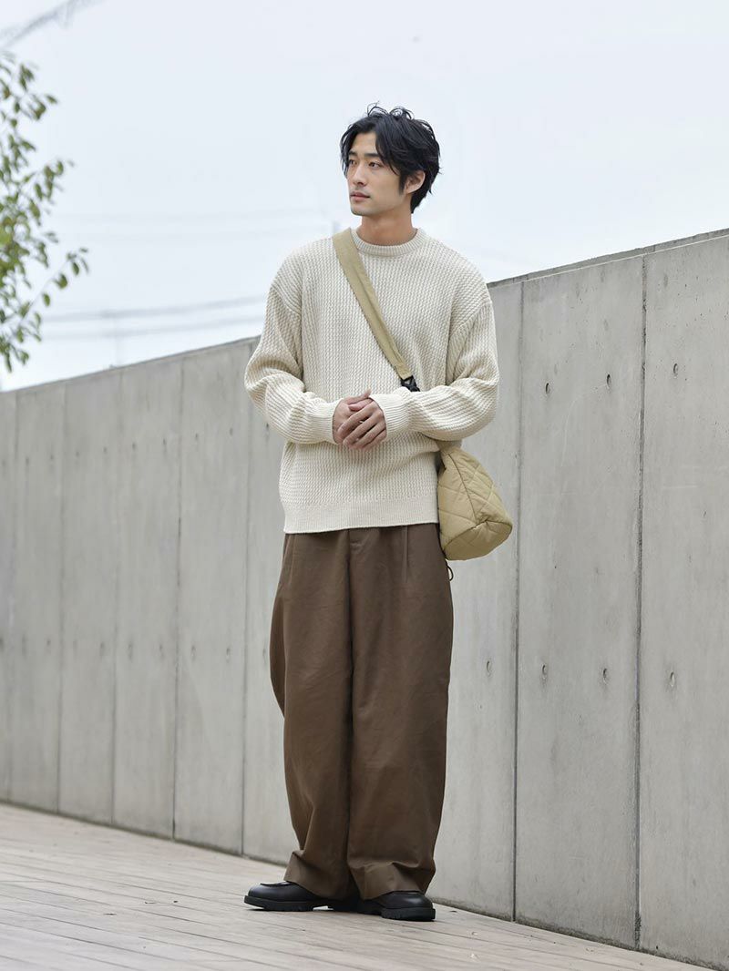 アイテム説明 上品で大人っぽい仕上がりが魅力のミニケーブル編みニット ミニマルで上品なこだわりのケーブル編み クラシカルなケーブル編みデザインが、シンプルながらも存在感を演出。カジュアルからフォーマルまで、幅広いコーディネートに取り入れやすい万能セーターです。 もっと見る スタイリッシュでありながらシンプルなデザイン 見た目はシンプルですが、ディテールにこだわり抜いたデザインが特徴。無駄を削ぎ落としたミニマルなスタイルが、どんな場面でも映える一枚です。カジュアルからフォーマルまで、幅広いスタイルに合わせることができます。 身体のラインを美しく見せながらも、リラックス感のあるフィット感を実現。動きやすさを損なわず、日常のどんなシーンでも快適に過ごせます。単体で着ても、レイヤードスタイルで楽しんでも、そのシルエットは常に洗練された印象を与えます。 一緒におすすめ LIGHT TECHインナーTシャツ CHECK サイズ・素材 肩幅 身幅 袖丈 着丈 S 45.5 52 55 65.5 M 48 54 55.5 67.5 L 51 57 56.5 70 XL 53.5 60 58.5 72.5 ※表記サイズは実寸であり、個体差により誤差が生じる場合があります。 ※商品によっては洗濯タグにヌード寸法が記載されておりますが、実寸とは異なります。 伸縮性 あり ややあり なし 厚み 厚手 普通 薄手 透け感 あり ややあり なし 洗濯 洗濯OK ネット使用 手洗いのみ 表地 アクリル100% 裏地 なし 生産国 中国 表示を隠す サイズにお悩みですか? LINEでサイズ相談する 返品・交換は無料で安心 ご自宅でじっくりご試着いただけます。合わなければ送料負担なく返品できます。あなたにぴったりの一着と出会えるよう、お手伝いいたします。 コーディネート Model : 179㎝/66㎏/ L /オフホワイト着用 Uチップシューズ CHECK Model : 179㎝/66㎏/ L /オフホワイト着用 コートスプリットレザーUチップシューズ CHECK スタッフコーディネート もっと見る