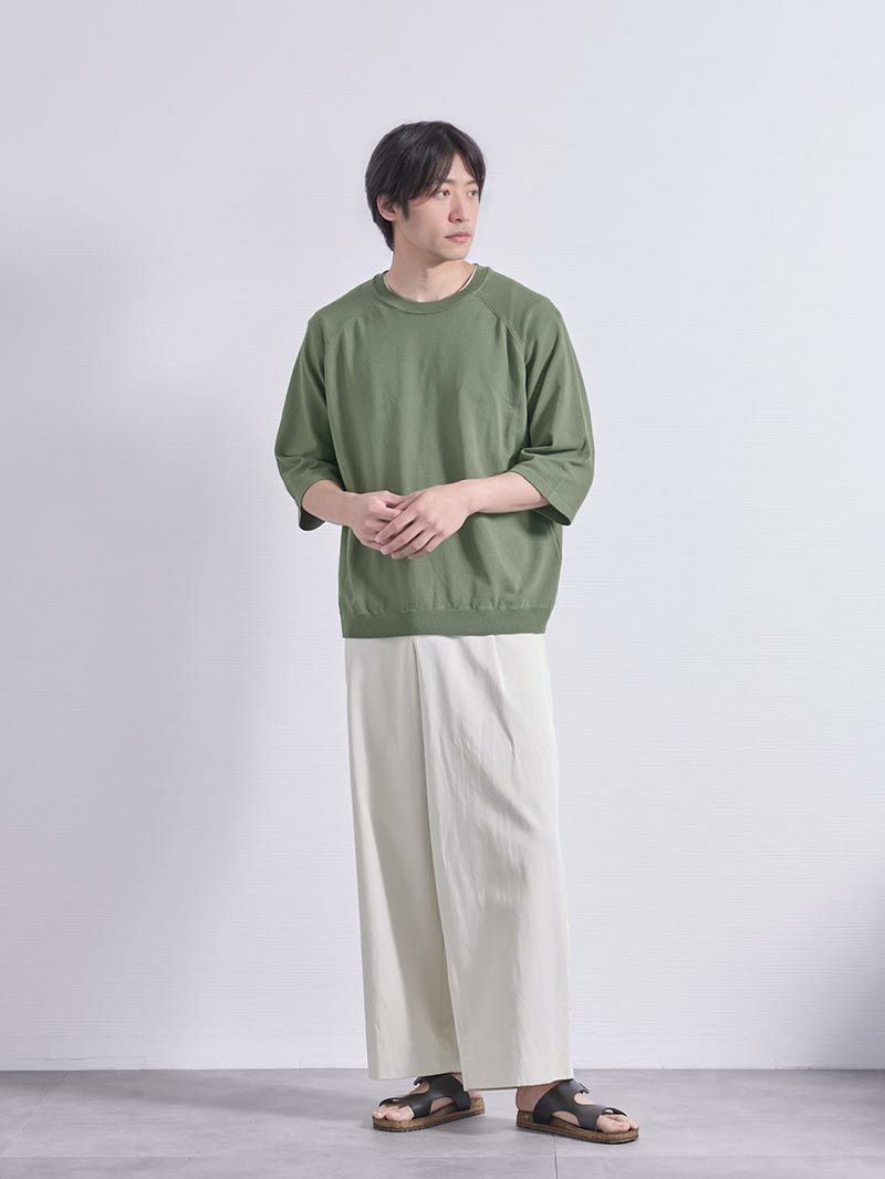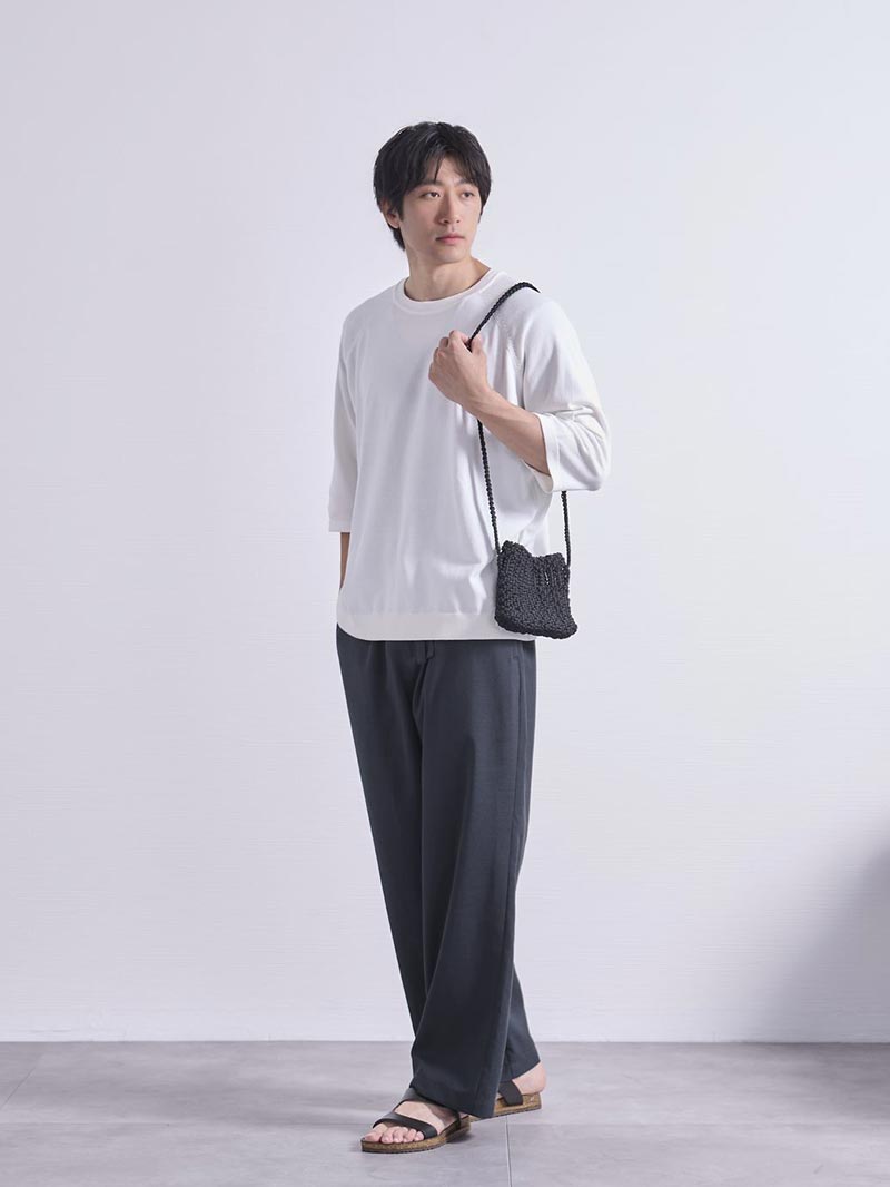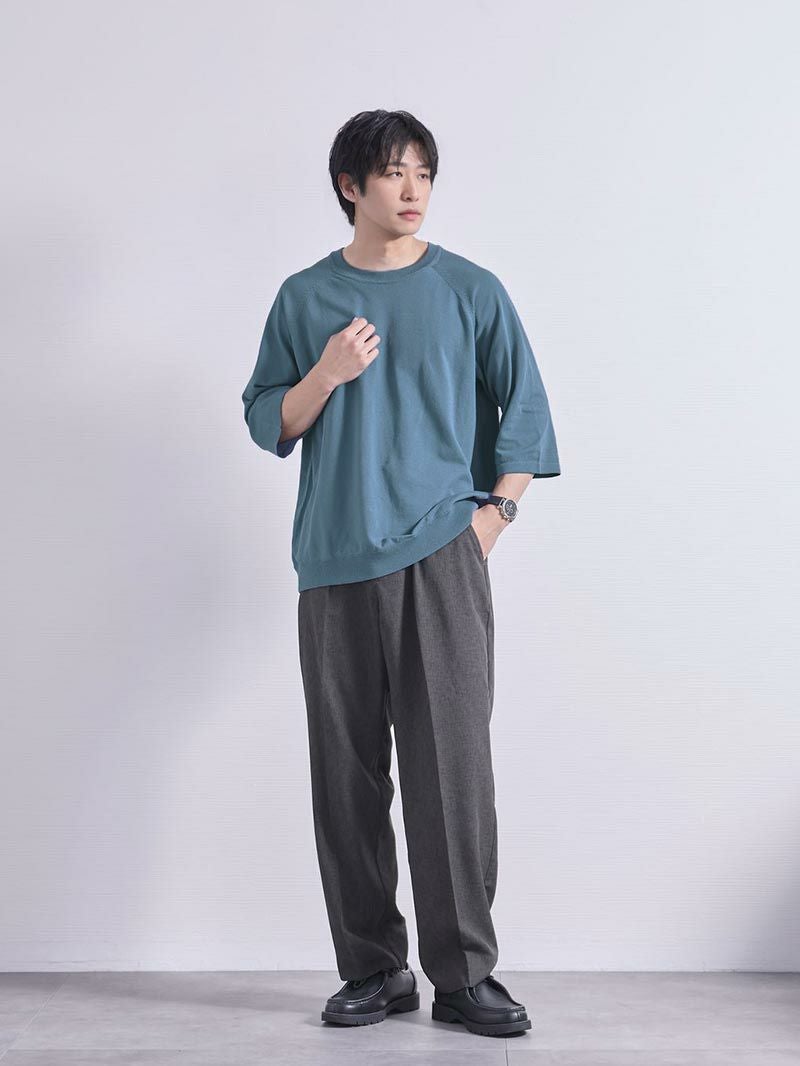 ゆるっとしたゆとりの出せる感じの服をあまり持っていなかったので、夏場に重宝していました。肌着が首元から見えやすい服装なので、肌着も気をつけた方が良いです。ユニクロの黒エアリズムがおすすめです。ベルトをつけると太って見える可能性があるので、ベルトなしでウエストサイズギリギリのパンツを合わせていました。ゆるさを出したくて最初9分丈くらいのパンツでしたが、これは身長のせいで姿見で見た時に違和感を感じたので普通の丈にしました。私くらいの身長で上も下も緩いとカッコ悪く見えるのでワイドパンツを合わせるのも個人的にはお勧めできないです。