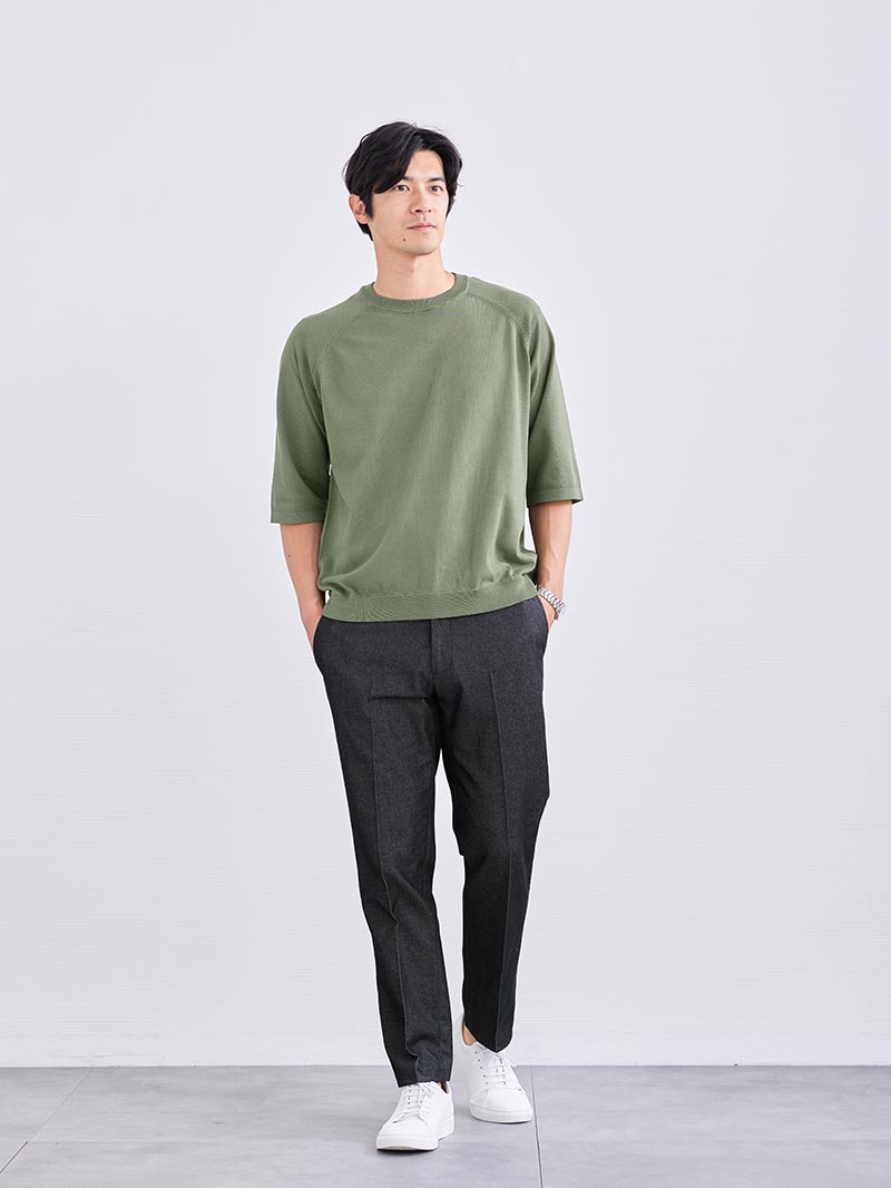 ベーシックでシンプルなデザインと、だらしなく見えない程よいルーズなシルエットが魅力。