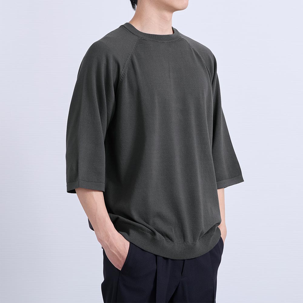 ハイゲージでドレープ感があり上品な見た目に加え、耐久性のある生地が心地よい肌触りを実現。