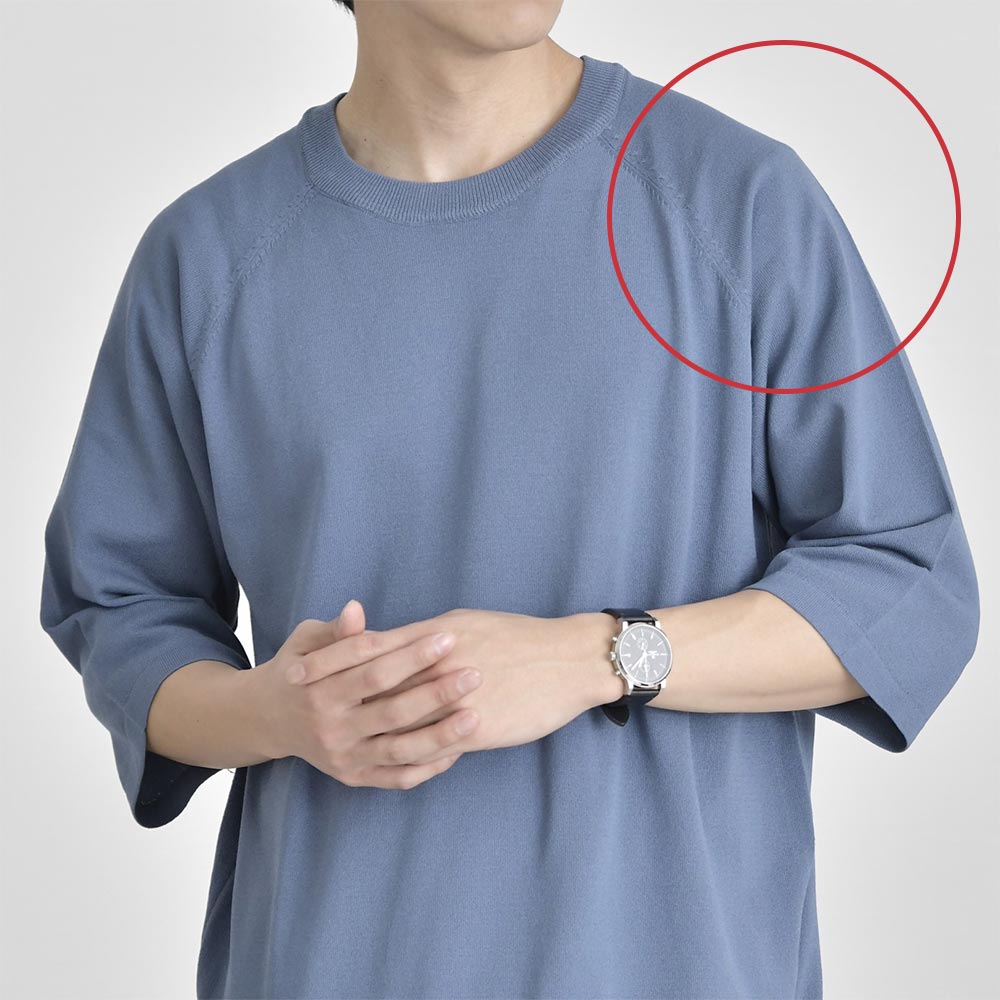 肩のラインを自然に見せるラグランスリーブ仕様。