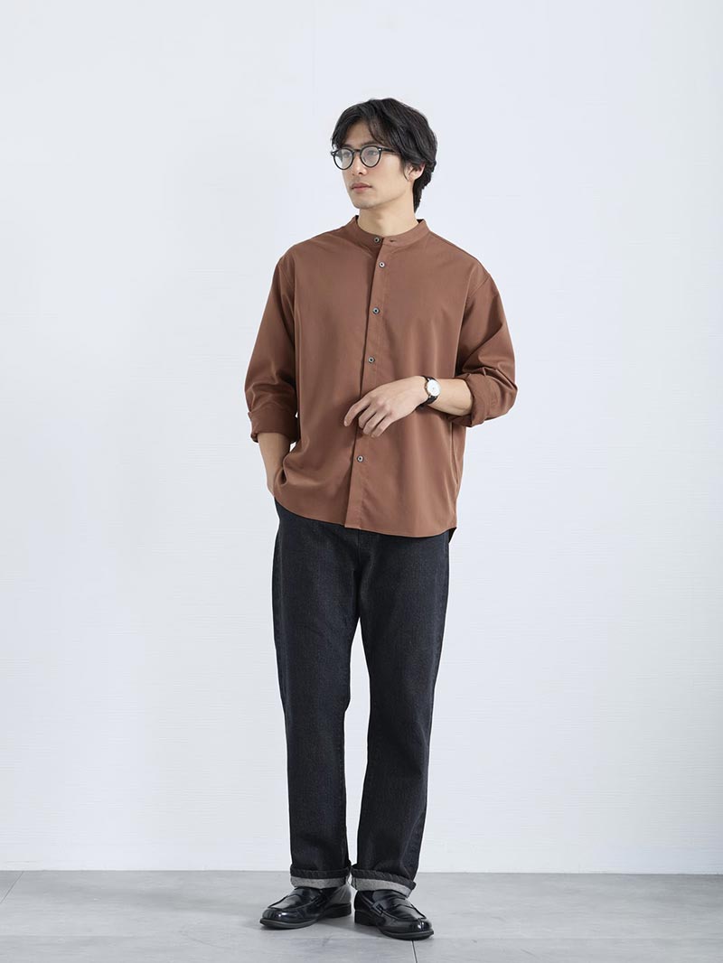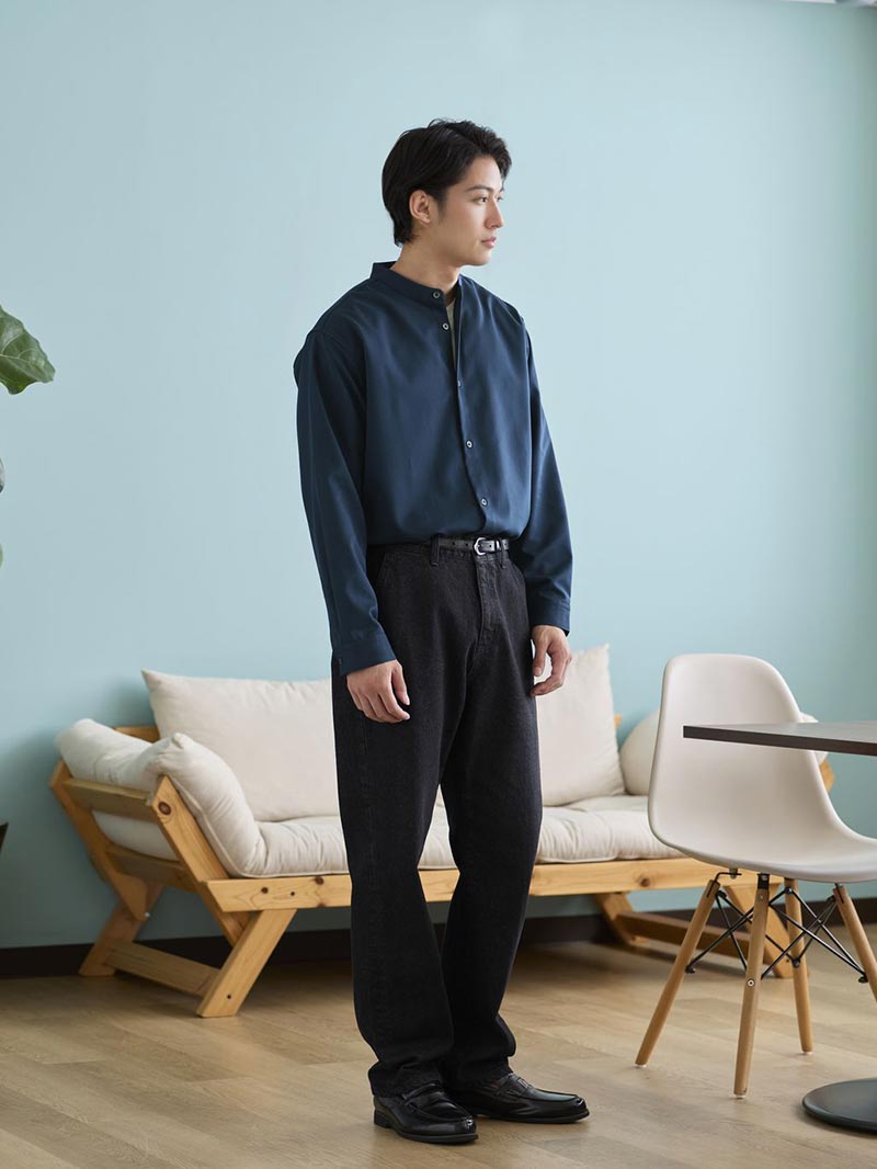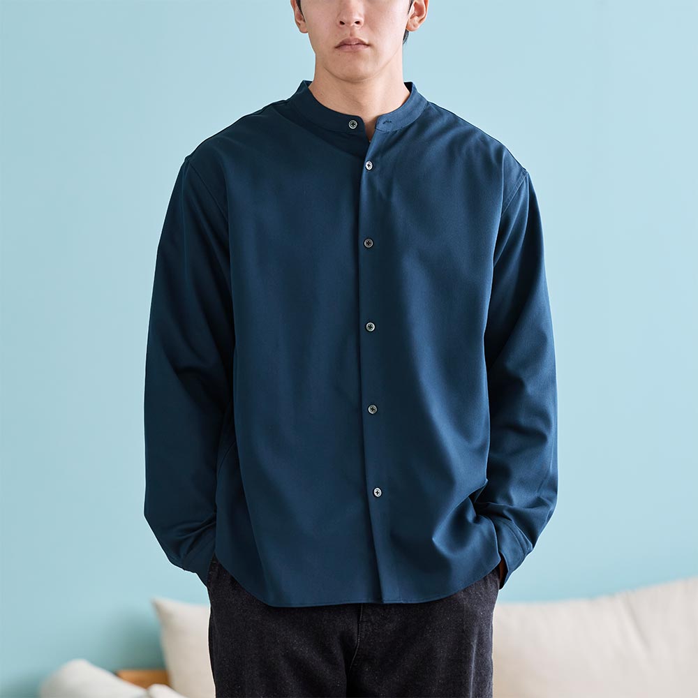 半袖のバンドカラーシャツを持っていて気に入ったので長袖も購入。半袖にもネイビー欲しい……笑