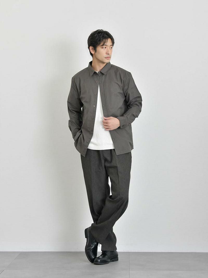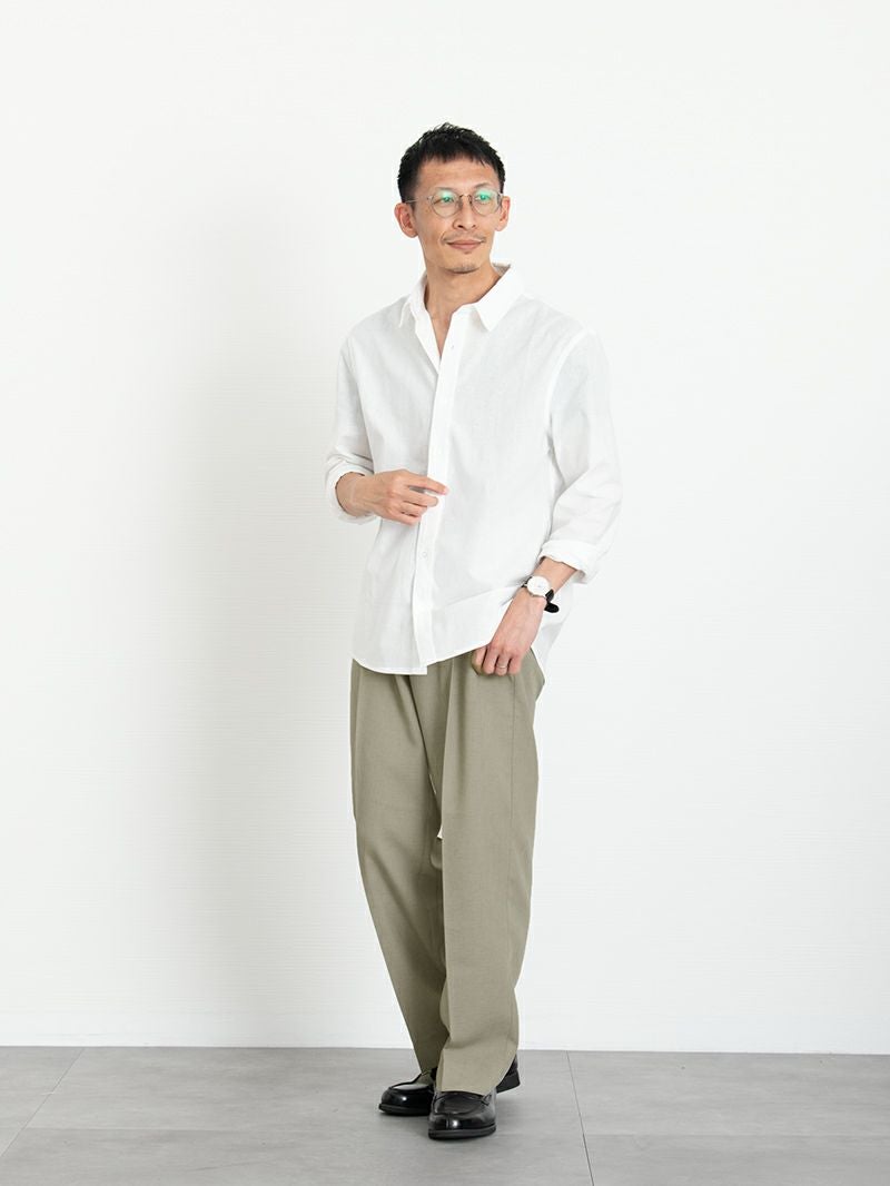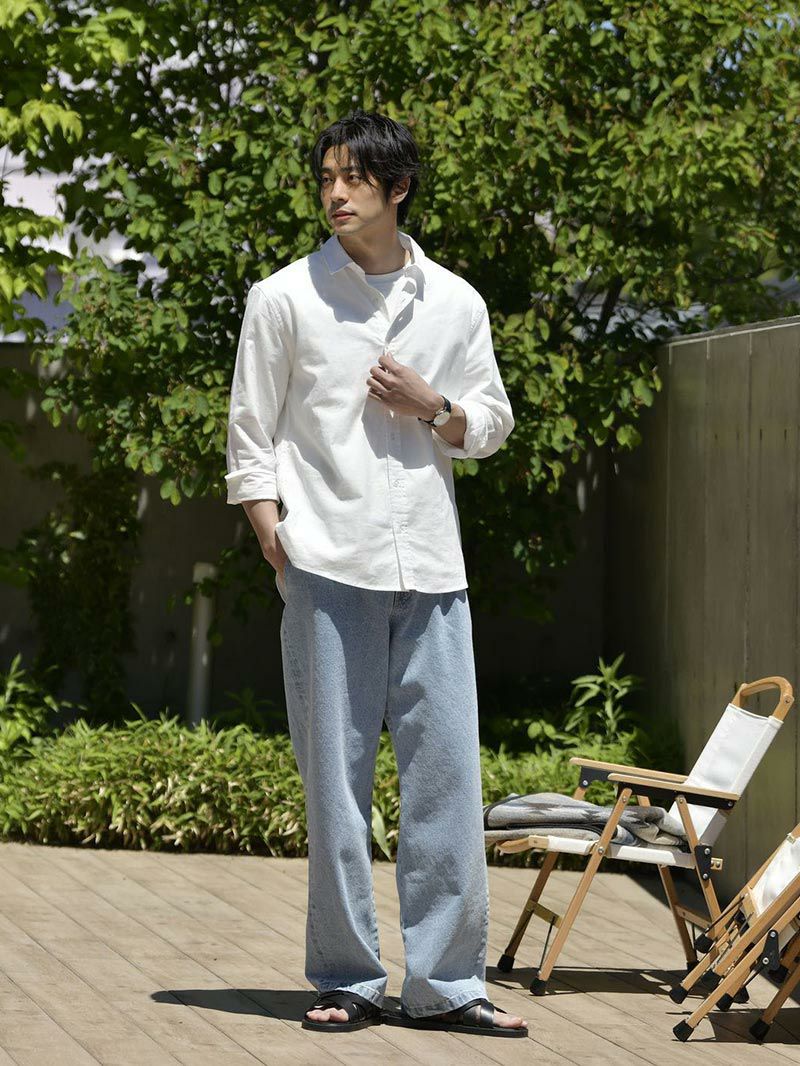 アイテム説明 通気性の良いサマーリネンシャツ 汗ばむ季節でも肌に張りつかず、風を感じる爽やかな着心地が特徴。綿85%・麻15%の配合で、涼しさと柔らかさを両立しました。 もっと見る 夏でもキレイめにまとまる 左:半袖/右:当商品 オフィスカジュアルやキレイめなシーンでは長袖シャツの方が大人っぽい印象に。着丈も長めなのでタックインもオススメです。 幅広い着こなしが楽しめる 腕まくりやTシャツの羽織など、幅広いバリエーションの着こなしを楽しめます。 羽織るだけで体型カバー効果も Tシャツ1枚では少し物足りない夏の装いも、シャツを羽織るだけで清潔感のある印象に。お腹周りもカバーできるため体型が気になる方にもオススメのアイテムです。 サマーパンツと好相性 左:サマーストレートパンツ/右:サマーワイドパンツ ゆったりとしたシルエットが特徴のサマーパンツと好相性。「サマーストレートパンツ」「サマーワイドパンツ」の2種類をご用意しました。体型や好みに合ったパンツをお試しください。 一緒におすすめ サマーストレートパンツ CHECK サマーワイドパンツ CHECK サイズ・素材 肩幅 身幅 袖丈 着丈 S 46.5 54 61.5 72 M 49 56 63 75.5 L 50.5 58.5 64 78 XL 52 60 65 81 ※表記サイズは実寸であり、個体差により誤差が生じる場合があります。 ※商品によっては洗濯タグにヌード寸法が記載されておりますが、実寸とは異なります。 伸縮性 あり ややあり なし 厚み 厚手 普通 薄手 透け感 あり ややあり なし 洗濯 洗濯OK ネット使用 手洗いのみ 表地 綿85% / 麻15% 裏地 なし 生産国 中国 表示を隠す スタッフ試着レビュー サイズにお悩みですか? AIに適正サイズを聞く 返品・交換は無料で安心 ご自宅でじっくりご試着いただけます。合わなければ送料負担なく返品できます。あなたにぴったりの一着と出会えるよう、お手伝いいたします。 コーディネート Model : 179cm / 66kg / L / ホワイト着用 デミフレームの柔らかさがシャツスタイルと好相性。 ゆるっとしたパンツを合わせつつ、白×ネイビーの清潔感ある色合わせが、親しみやすく品のある印象に仕上がります。 リラックスイージーワイドパンツ[セットアップ対応] CHECK Healthknit 3足セット CHECK チャンキーソールローファー CHECK ウェリントンサングラス 調光レンズ CHECK Model : 179cm / 66kg / L / ホワイト着用 白シャツの爽やかさと、ゆとりあるデニムのリラックス感が夏の陽射しに映える装い。 屋外でのリゾート気分や散歩シーンにぴったりのおすすめコーデです。 クールタッチスムースTシャツ CHECK タックワイドデニムパンツ CHECK Salvatole Marra シンプル腕時計 CHECK Model : 179cm / 66kg / L / ホワイト着用 リネンシャツの素材感と、首元のボタンを外すことで抜け感を与えた、夏にぴったりの涼し気なスタイル。 ストレートのパンツでIラインを作ると大人な雰囲気に仕上がります。 CODEストレート サマー CHECK Salvatole Marra シンプル腕時計 CHECK ナローメッシュベルト CHECK Model : 179cm / 66kg / L / ネイビー着用 有彩色同士でも寒色系でまとめることで、派手になりすぎずオシャレに。 ゆったりとしたワイドパンツを合わせた、カジュアル好きにおすすめなスタイルです。 タックワイドパンツ CHECK ナローリアルレザーベルト CHECK チャンキーソールローファー CHECK Model : 179cm / 66kg / L / ネイビー着用 知的で誠実な印象を与えることができるネイビーは、ビジネスシーンにはかかせない存在。 黒よりも軽く、寒色系ならではの涼しげで爽やかな印象もプラスできます。 クールタッチスムースTシャツ CHECK CODEストレート サマー CHECK 2wayマルチトートバッグ CHECK Model : 179cm / 66kg / L / チャコール着用 一見ベーシックなスタイルながら、シャツのボタンを外して着崩すことで遊び心をプラス。 夏の暑さを和らげながら今どきらしいこなれた着こなしに仕上げました。 クールタッチスムースTシャツ CHECK ブラックスリムパンツ 旧型 CHECK whoop'-de-doo' ドライビングローファー CHECK Salvatole Marra クロノグラフ腕時計 CHECK Model : 179cm / 66kg / L / チャコール着用 白にはパキッとしすぎないチャコールを合わせることで、メリハリを付けつつ柔らかく仕上がるのでおすすめ。 夏らしい素材感のリネンシャツを合わせて爽やかさを取り入れると、好印象なパパコーデが作れます。 ストレッチレイヤードタンクトップ CHECK ツイルショートパンツ CHECK スマートスニーカー CHECK Salvatole Marra クロノグラフ腕時計 CHECK Model : 179cm / 66kg / L / チャコール着用 モノトーンでまとめた落ち着きのある休日コーデ。シャツを羽織ったり、ワイドパンツを合わせることで、リラックス感のあるスタイルに仕上げました。 室内やカフェでのくつろぎ時間にぴったりなコーデです。 テクスチャーサマーニット CHECK ワイドバルーンパンツ[セットアップ対応] CHECK コートレザースニーカー CHECK Model : 179cm / 66kg / L / チャコール着用 シャツの色味に合わせて、パンツもチャコールを選ぶことで統一感のあるコーデに。 インナーに白を合わせること