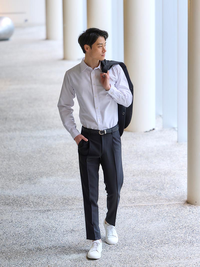 アイテム説明 清潔感のあるオフィススタイルをつくるスタイリッシュなキレイめシャツ CODEオックスシャツの おすすめポイント 01. ”きちんと見え”するシルエット ハリのあるオックスフォード生地と腰元にクビレを持たせたパターン設計で、スタイリッシュなシルエットを実現。 襟裏の取り外し可能な芯が襟の立ち上がりを美しく保ち、きちんと感を演出します。 「CODEシャツシリーズ」2種類を比較 左のCODEオックスシャツは、ハリのある素材で体にほどよくフィットし、すっきりとしたキレイめな印象。商談や来客時におすすめです。 右のCODEジャージーシャツは、オチ感があり程よくゆとりのあるシルエットで、リラックスした着用感が得られます。 ラクに着られるドレスライクシャツはこちら CODEジャージーシャツ CHECK 02. ロングシーズン快適な着心地 オックスフォード生地特有の織り目の適度な隙間が優れた通気性を生み出し、夏は涼しく冬は蒸れにくい快適さ。 肌に張り付かずサラッとした着心地が続くため、ロングシーズン活躍する一枚です。 03. 吸水速乾機能つきで清潔感キープ 吸水速乾機能で汗を素早く吸収・拡散し、シャツの張り付きを防止。 外出時の汗をかくシーンでも清潔感をしっかりキープできます。 自宅の洗濯機で簡単に洗えるイージーケア仕様。 洗濯後の乾きも早いため、お手入れ簡単でデイリー使いしやすいです。 04. オフィスシーンでの使いやすさ キレイめなジャケットやカジュアルアウターどちらを合わせてもきちんと決まる汎用性。 人気の「CODEセットアップ」のインナーとしても相性抜群で、着回しの幅が広がります。 一緒に合わせたい「CODE セットアップ」はこちら CODEイージーセットアップ2点セット CHECK サイズ・素材 肩幅 身幅 袖丈 着丈 S 42 52 61.5 76 M 44 53 62 78.5 L 46 54 63.5 80.5 XL 48 55.5 64.5 82.5 ※表記サイズは実寸であり、個体差により誤差が生じる場合があります。 ※商品によっては洗濯タグにヌード寸法が記載されておりますが、実寸とは異なります。 伸縮性 あり ややあり なし 厚み 厚手 普通 薄手 透け感 あり ややあり なし 洗濯 洗濯OK ネット使用 手洗いのみ 表地 綿71%ポリエステル29% 裏地 なし 生産国 中国 禁止事項 乾燥機使用×日向干し×漂白剤使用× 表示を隠す サイズにお悩みですか? AIに適正サイズを聞く 返品・交換は無料で安心 ご自宅でじっくりご試着いただけます。合わなければ送料負担なく返品できます。あなたにぴったりの一着と出会えるよう、お手伝いいたします。 コーディネート Model : 182㎝ / 70㎏ / L / ホワイト着用 端正な着こなしのキモはインナー選び 今やビジネスマンの定番となったセットアップ。 スーツライクにきちんと度を上げる、オックスフォードシャツを合わせました。 小物を黒で合わせ端正に着こなせば、プレゼンなどにも対応可能な優秀コーデの完成です。 CODEジャケット CHECK CODEイージーパンツ CHECK リバーシブルレザーベルト CHECK プレーントゥ ライトレザーシューズ CHECK Model : 183㎝ / 64㎏ / L / ホワイト着用 すっきり好印象の万能シャツスタイル ビジネスシーンからオフまで、幅広く着こなせるオックスフォードシャツは、ゴワつきのない柔らかな素材感です。 着心地も軽く快適性も◎。CODEパンツに合わせてすっきりと正統派な着こなしに仕上げました。 CODEイージーパンツ CHECK ナローメッシュベルト CHECK Healthknit 3足セット CHECK スマートスニーカー CHECK Model : 183㎝ / 64㎏ / L / サックスブルー着用 ブルーコーデで清潔感を高める 春にぴったりの明るめグレーのセットアップを、爽やかに着こなすブルーのオックスシャツ。 好印象必至の明るめのブルーは、オン・オフ問わずに活躍してくれる一枚です。 黒の小物を効かせて凛々しく仕上げました。 CODEジャケット CHECK CODEイージーパンツ CHECK ナローメッシュベルト CHECK プレーントゥ ライトレザーシューズ CHECK Model : 182㎝ / 70㎏ / L / サックスブルー着用 ブラウンを効かせて小慣れて見せる 馴染みのあるネイビー&ブルーの着こなし。 オシャレ度を高めるブラウンのベルトを投入することで、グンと洗練された印象に仕上がります。 足元はスポーティな白スニーカーで今っぽさのある着こなしを完成させました。 CODEイージーパンツ CHECK リアルレザーベルト CHECK HARUSAKU 奈良産 プレーンリブソックス CHECK スマートスニーカー CHECK スタッフコーディネート もっと見る